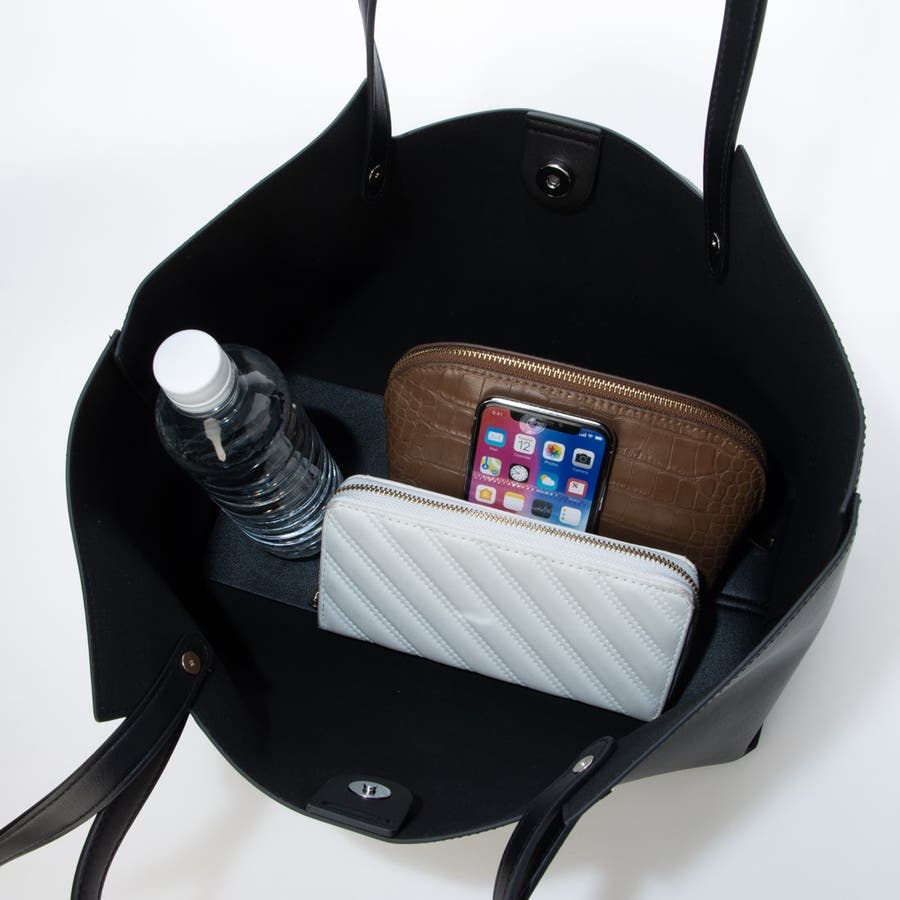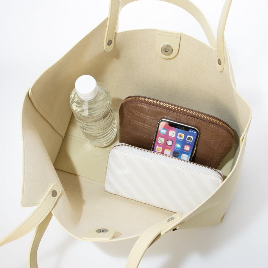 合成皮革を使用した横型トートバッグ。