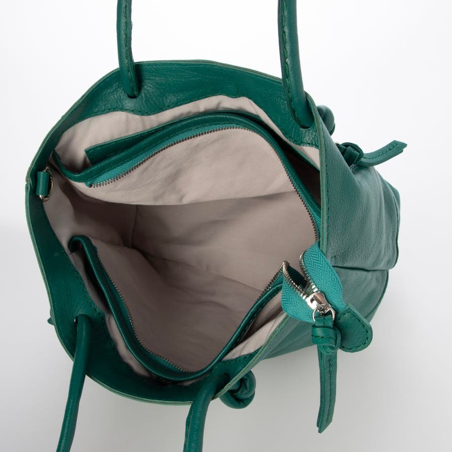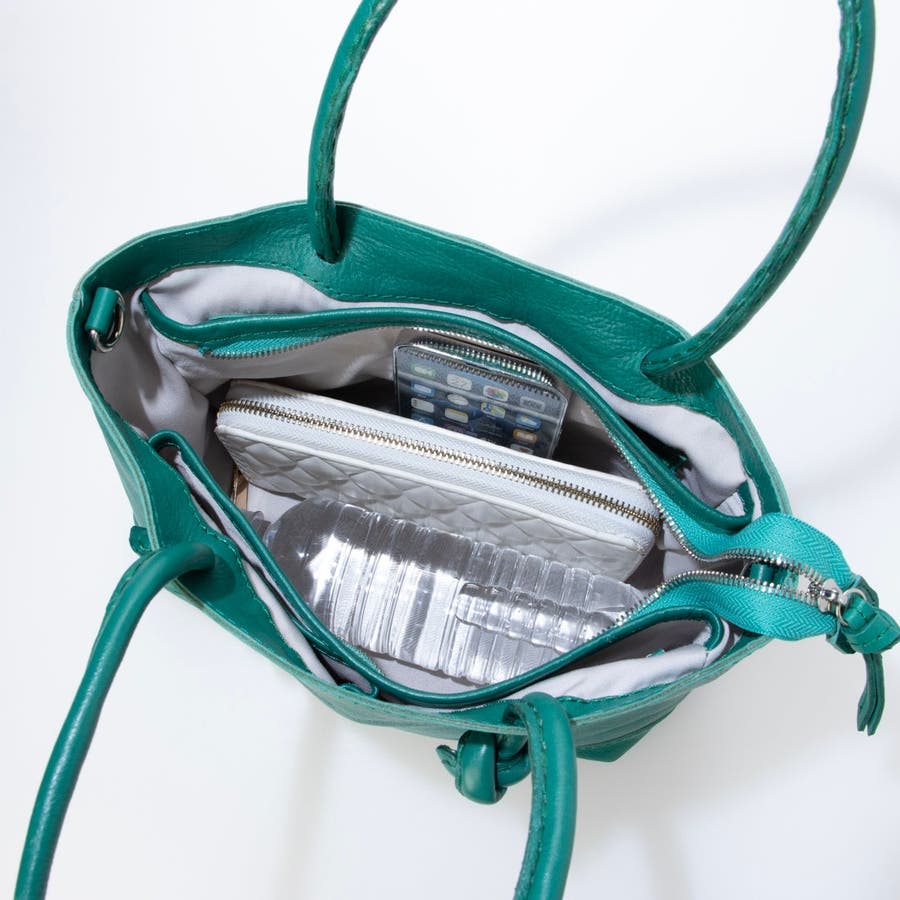 シンプルなボディに、ハンドステッチを施した結びハンドルがアクセントになっています。
