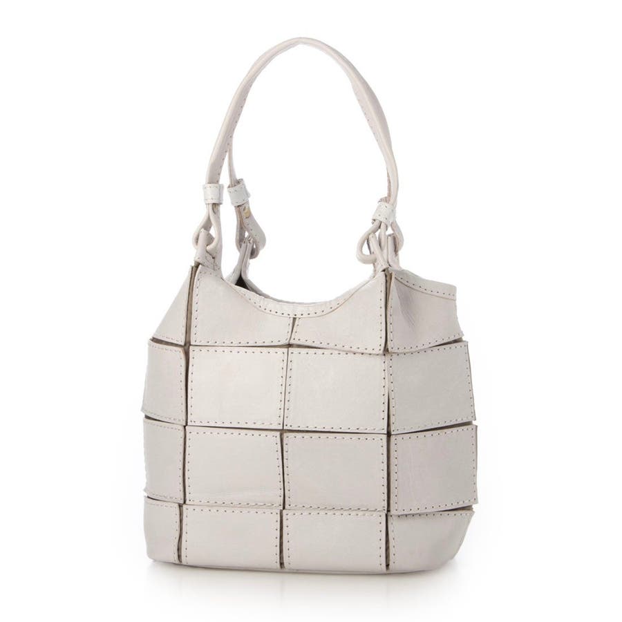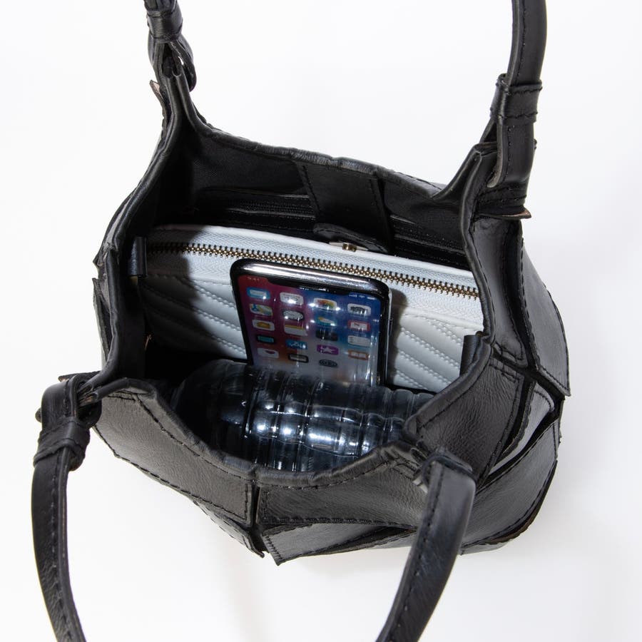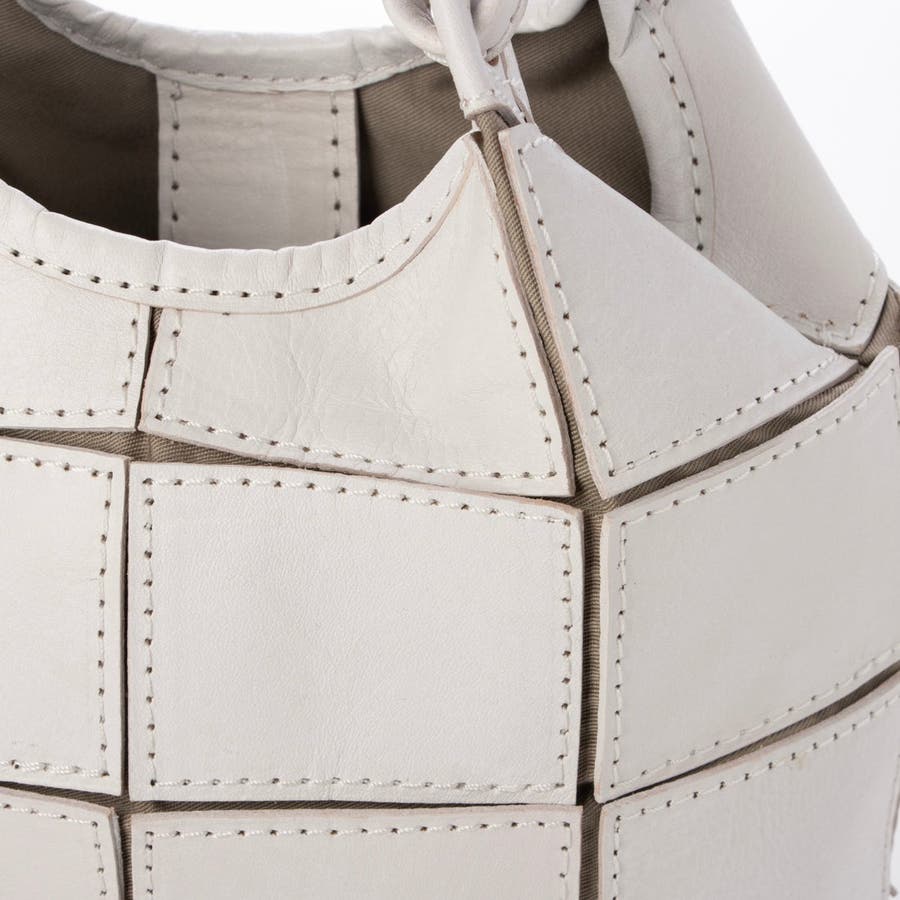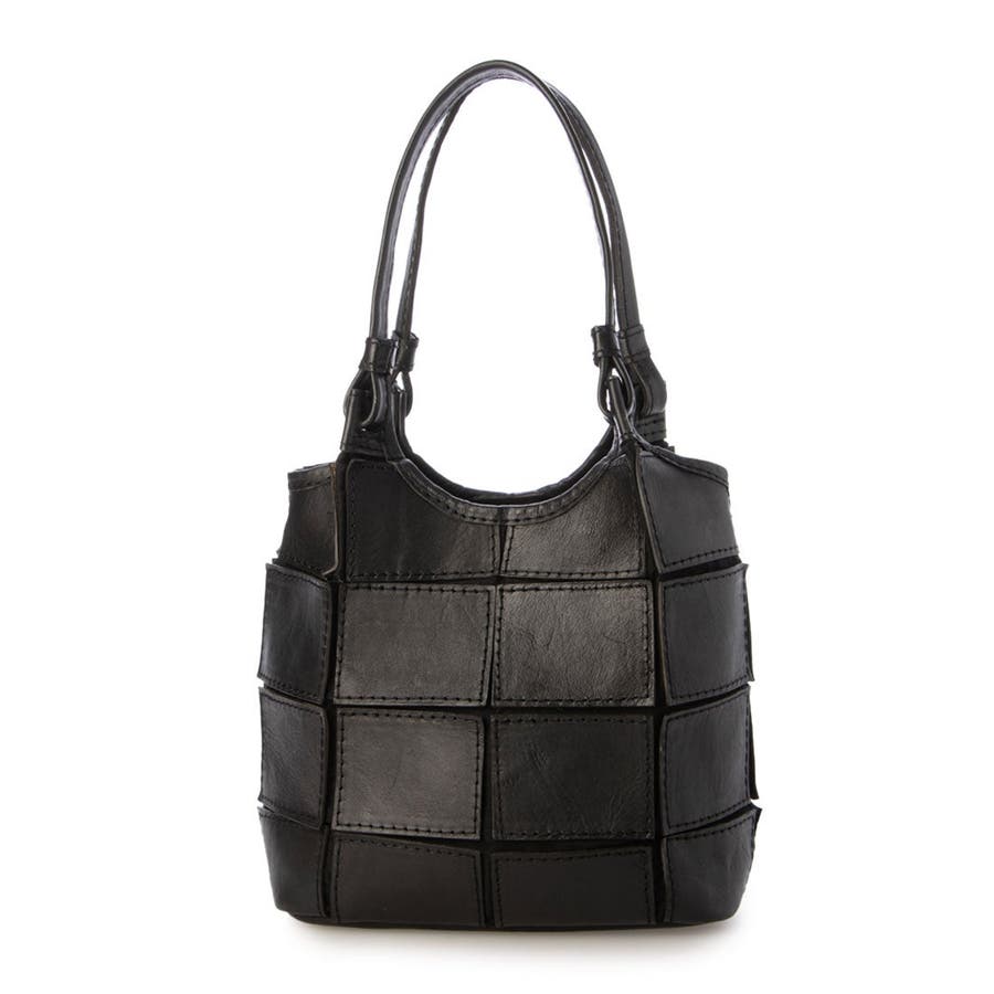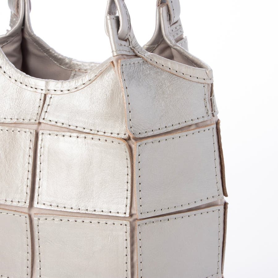 四角くカットされたレザーパーツを丁寧にパッチワーク状に縫製をした、素朴でありながらも洗練された表情のバッグです。