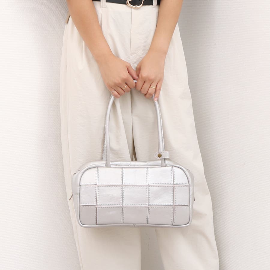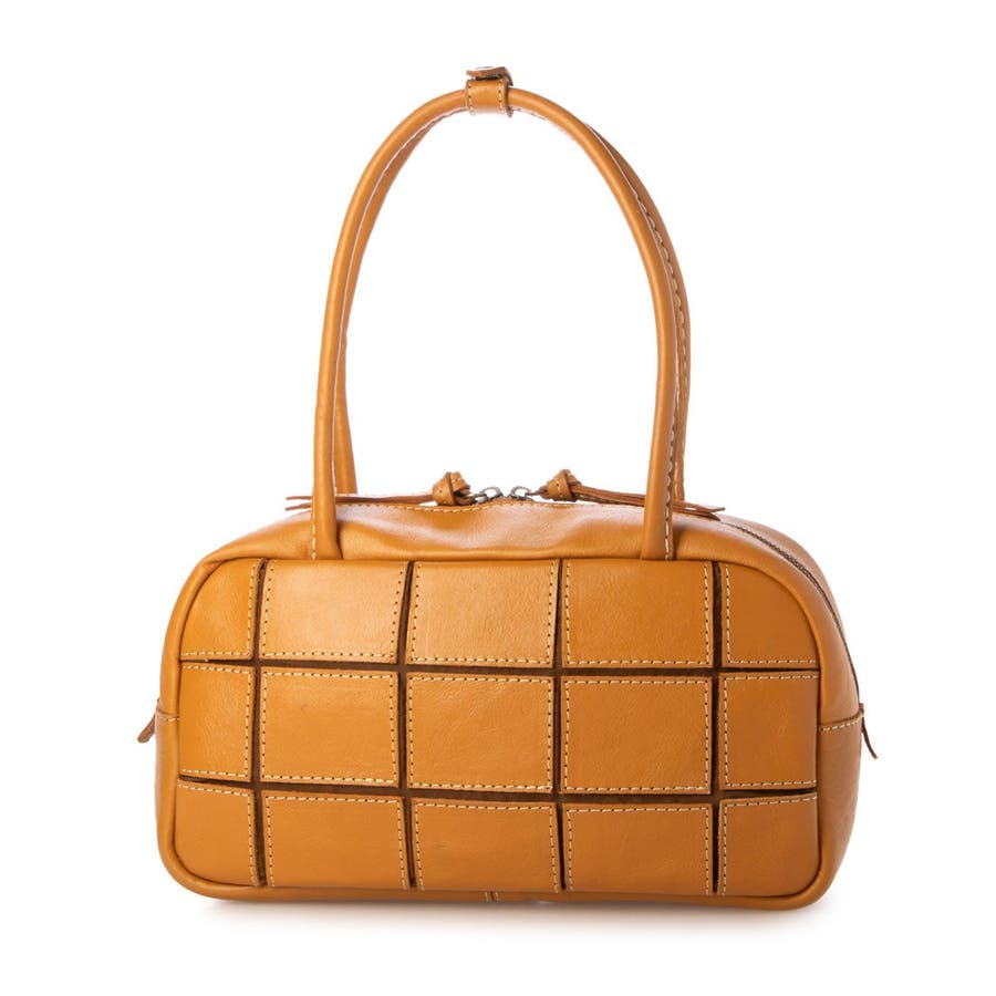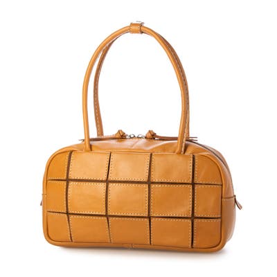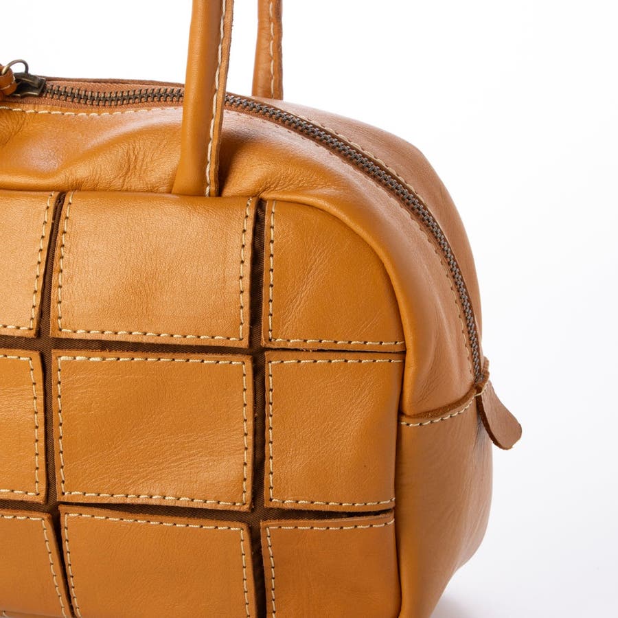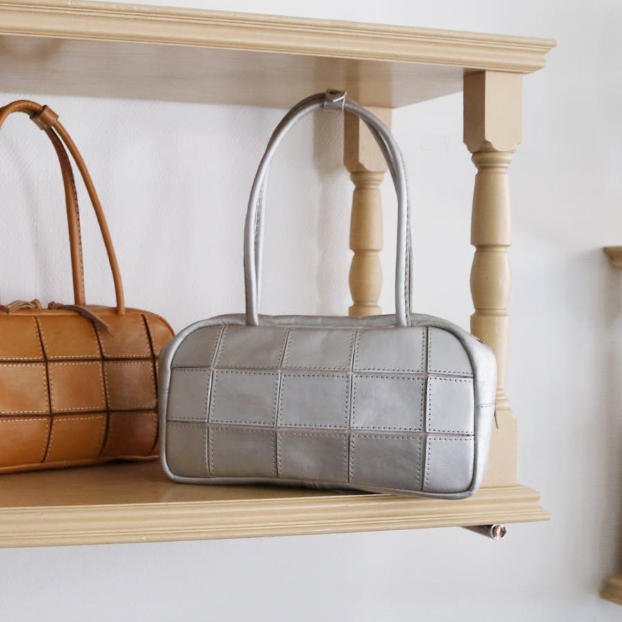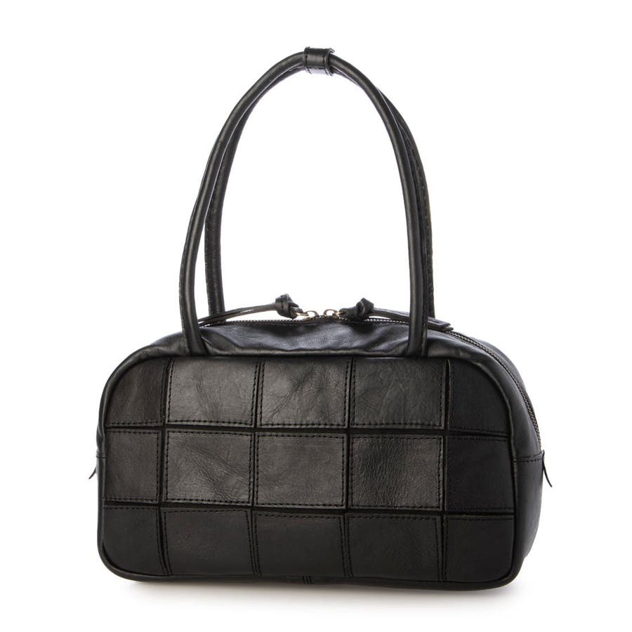 四角くカットされたレザーパーツを丁寧にパッチワーク状に縫製をした、素朴でありながらも洗練された表情のバッグです。