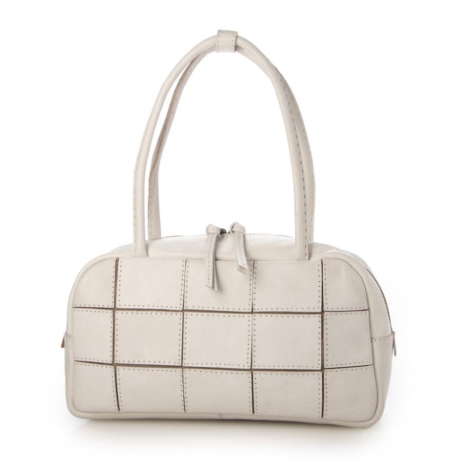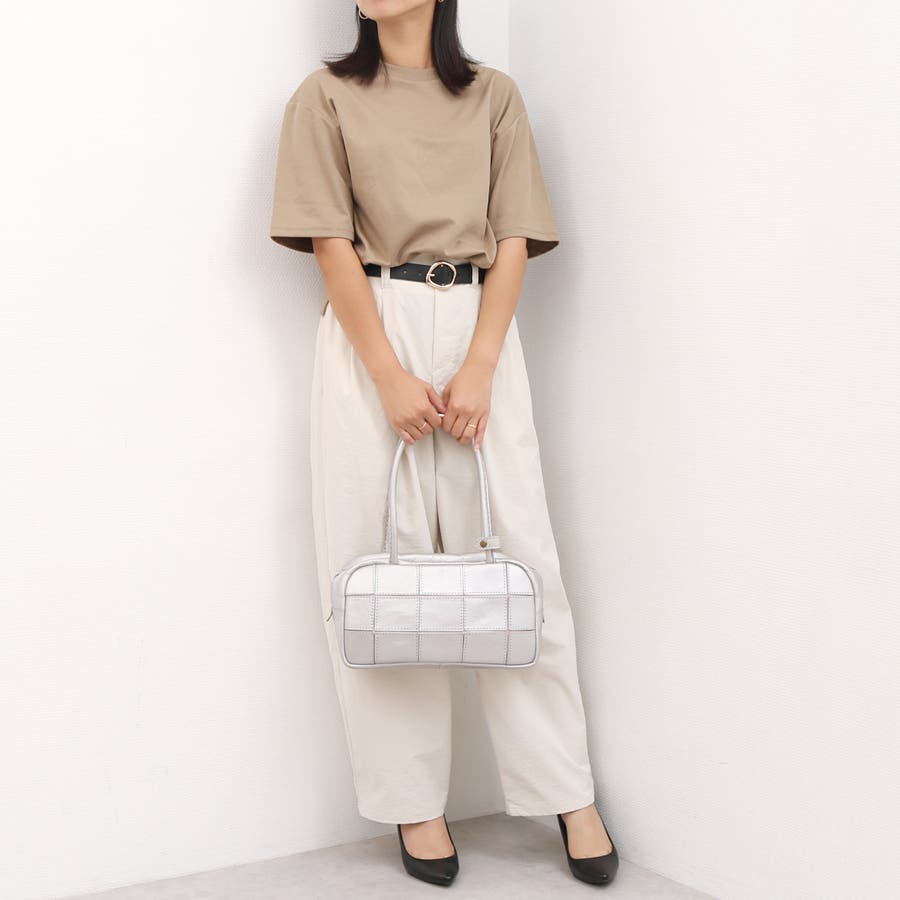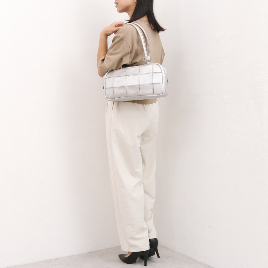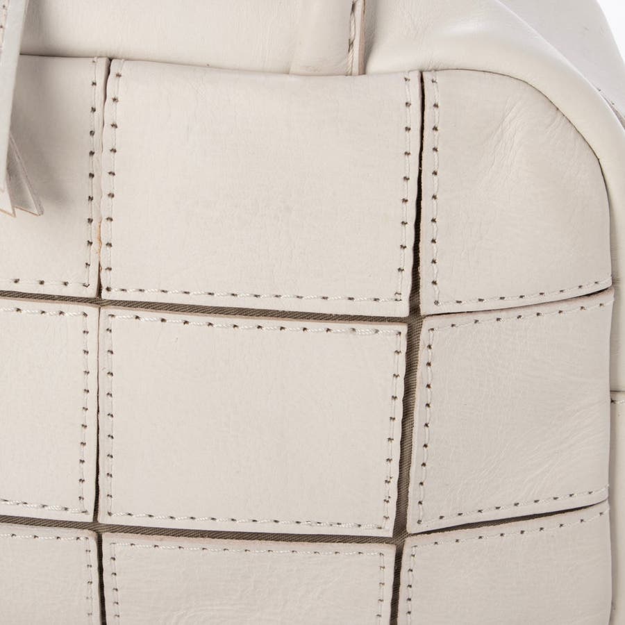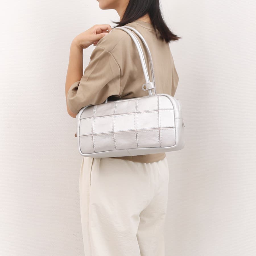四角くカットされたレザーパーツを丁寧にパッチワーク状に縫製をした、素朴でありながらも洗練された表情のバッグです。