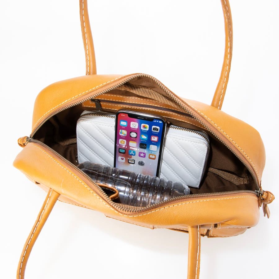 バリ島の職人が一つひとつ丁寧に仕上げた牛革の横長ボストン。