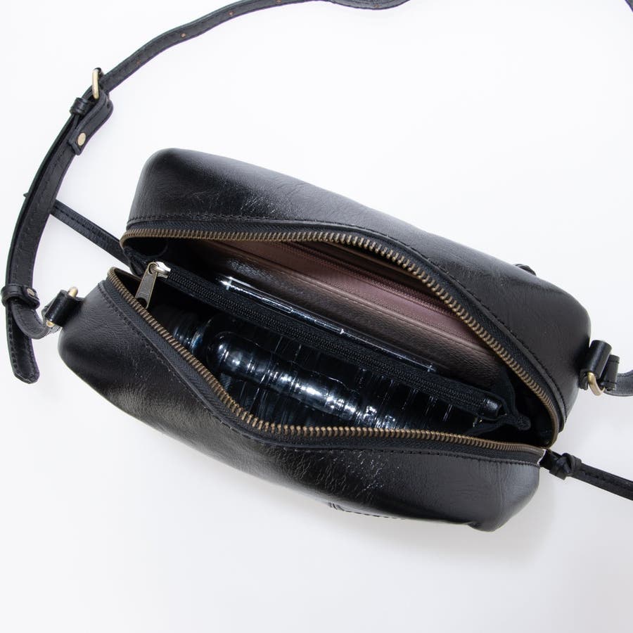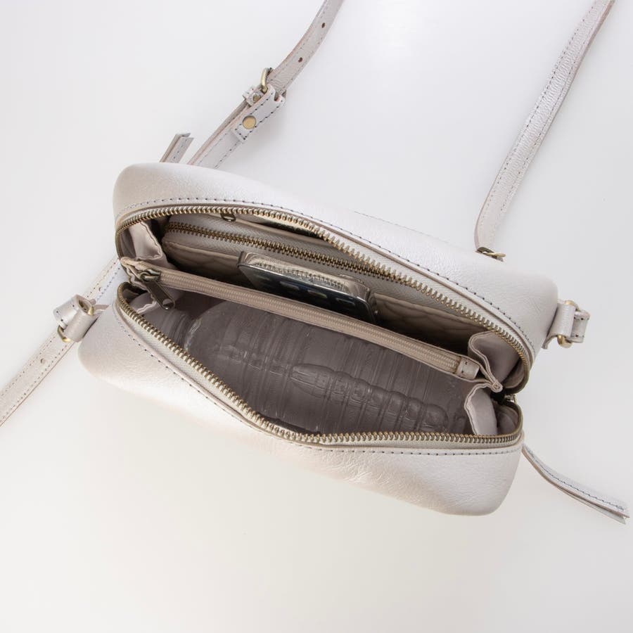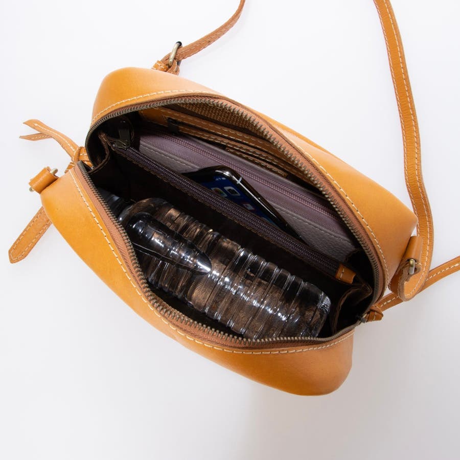 大きく開くラウンドファスナーが使いやすく、長財布や500mlのペットボトルがしっかり収まる、普段使いにちょうどいいサイズ感。