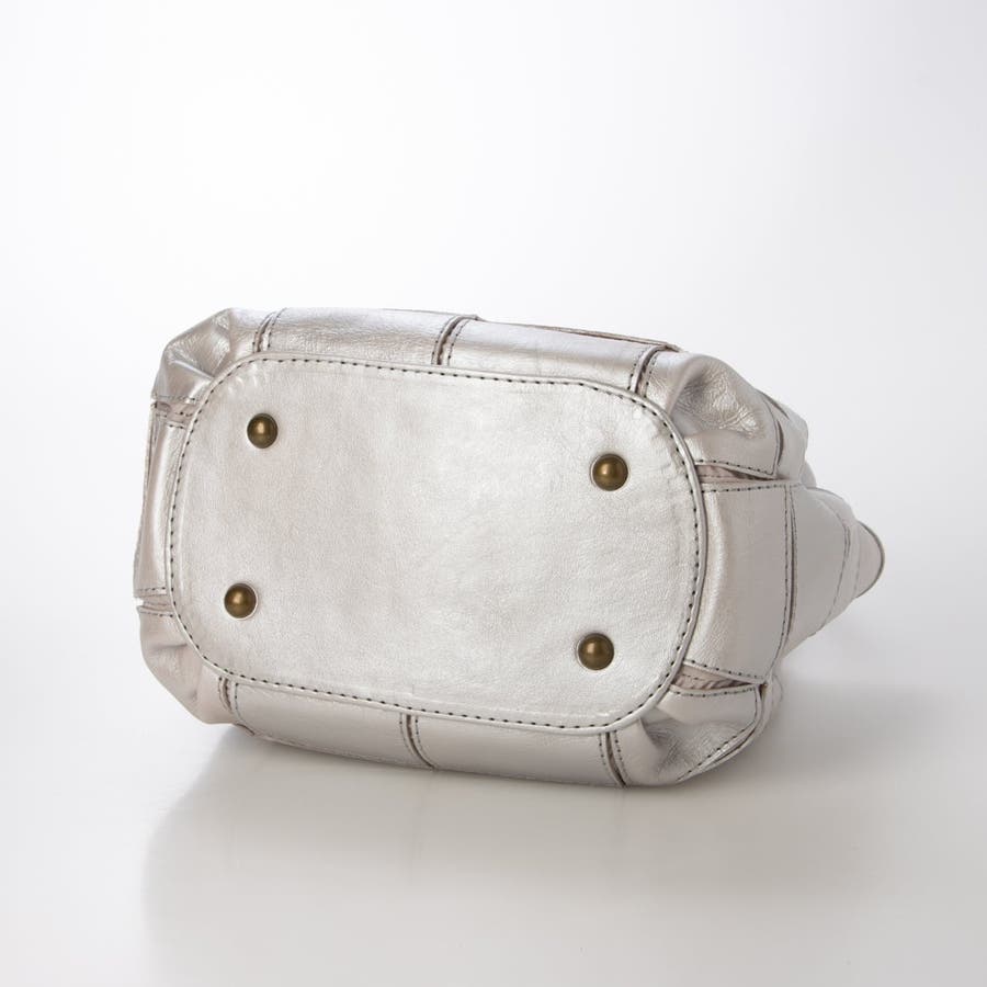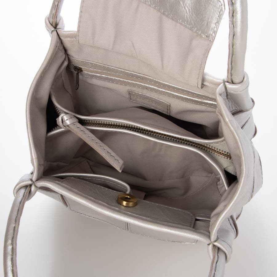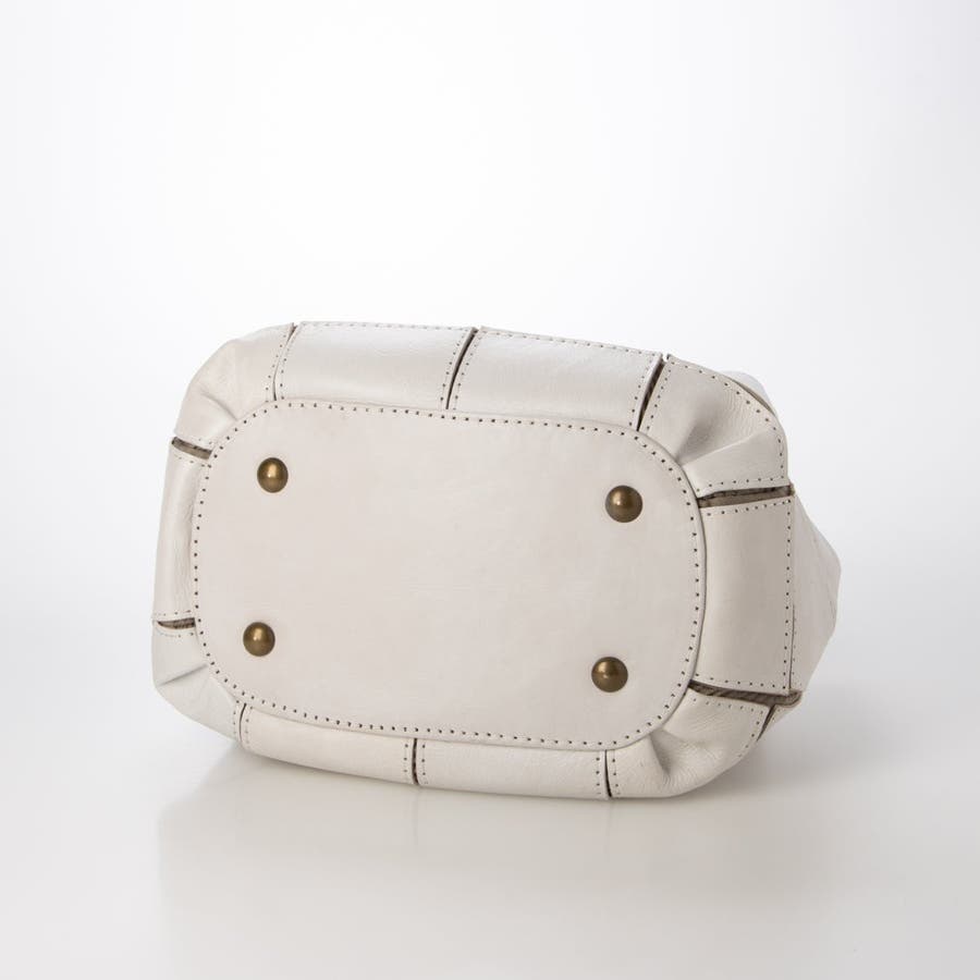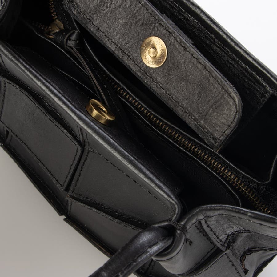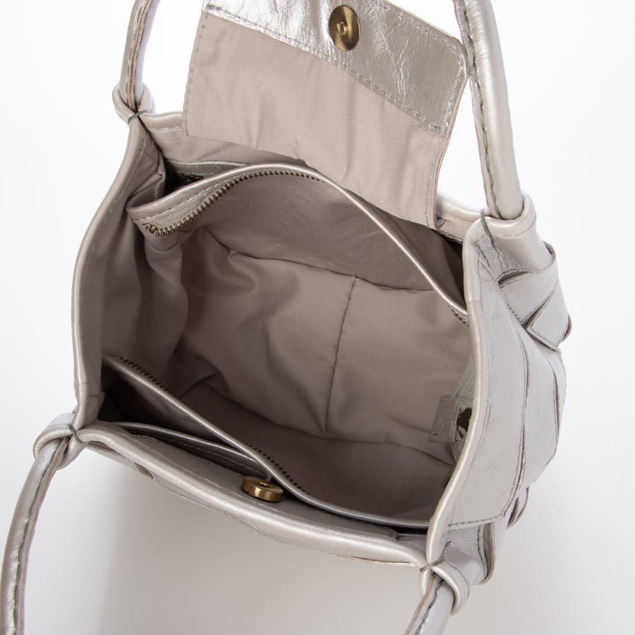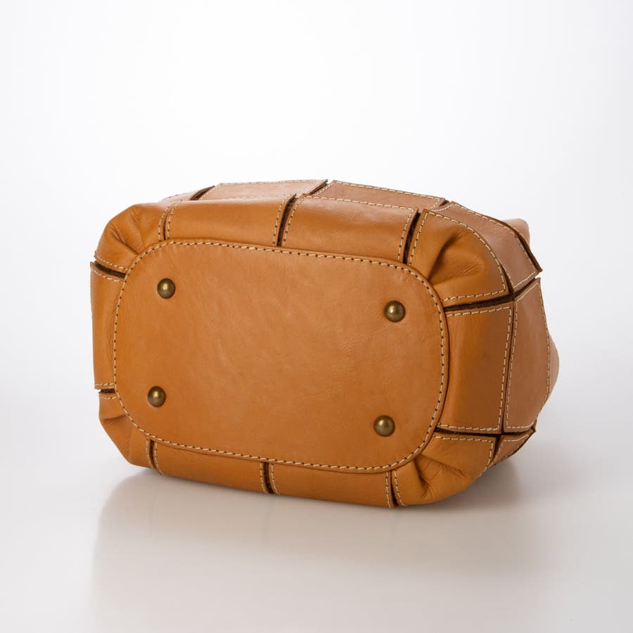 四角くカットされたレザーパーツを丁寧にパッチワーク状に縫製をした、素朴でありながらも洗練された表情のバッグです。