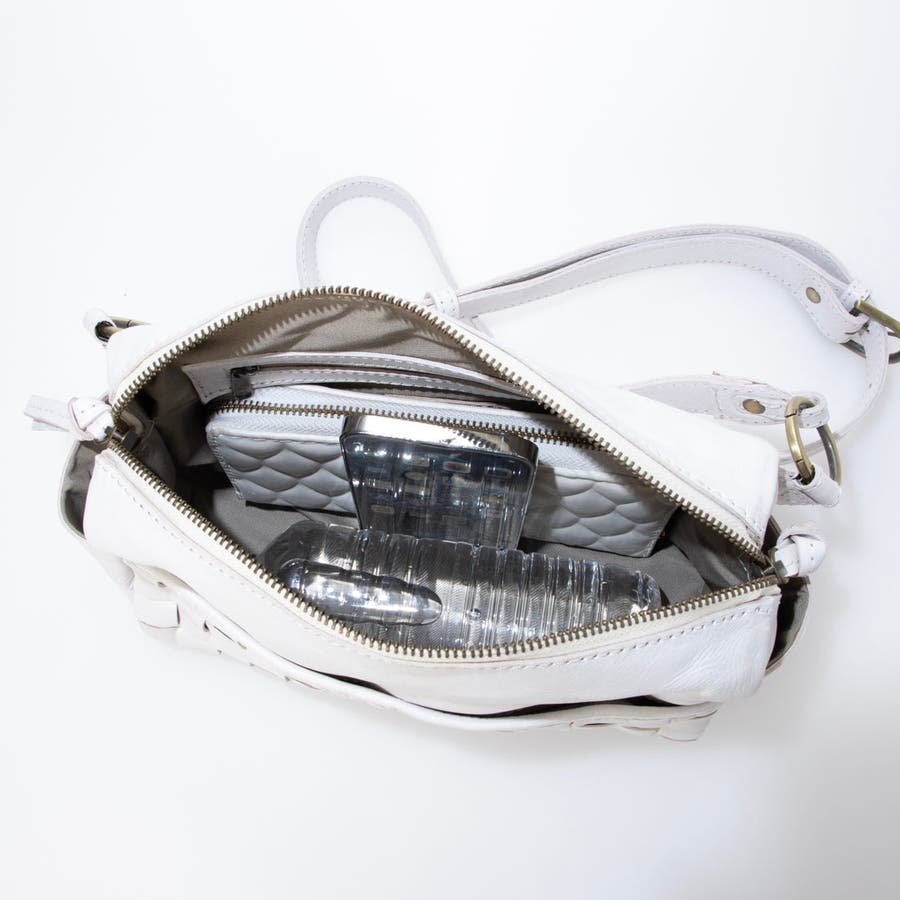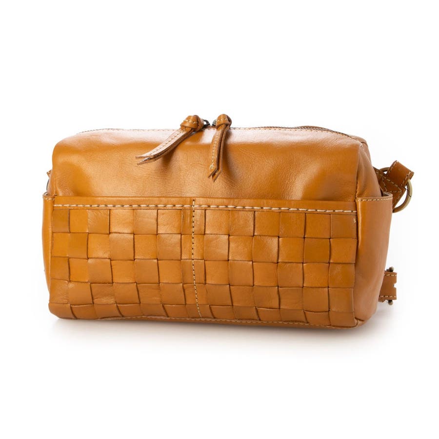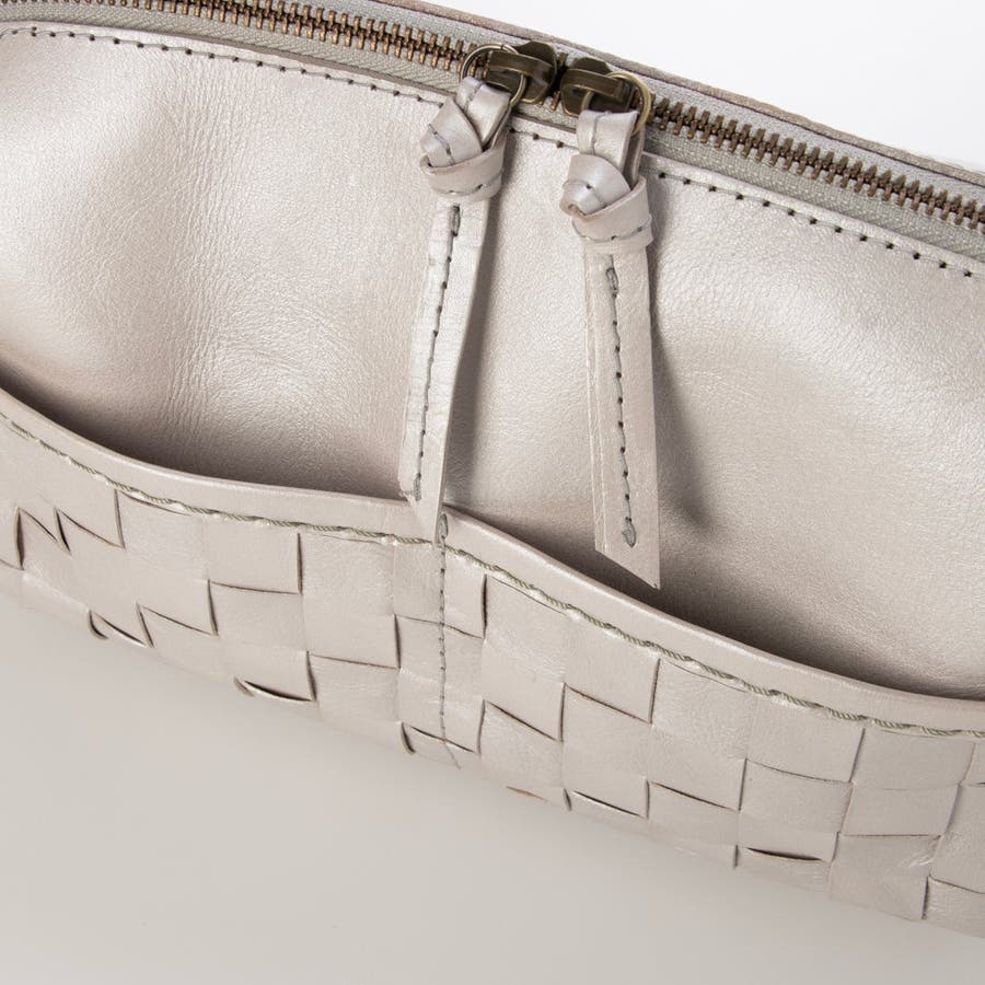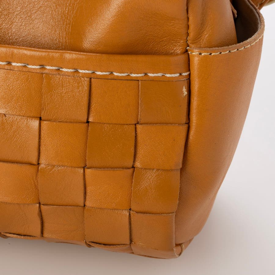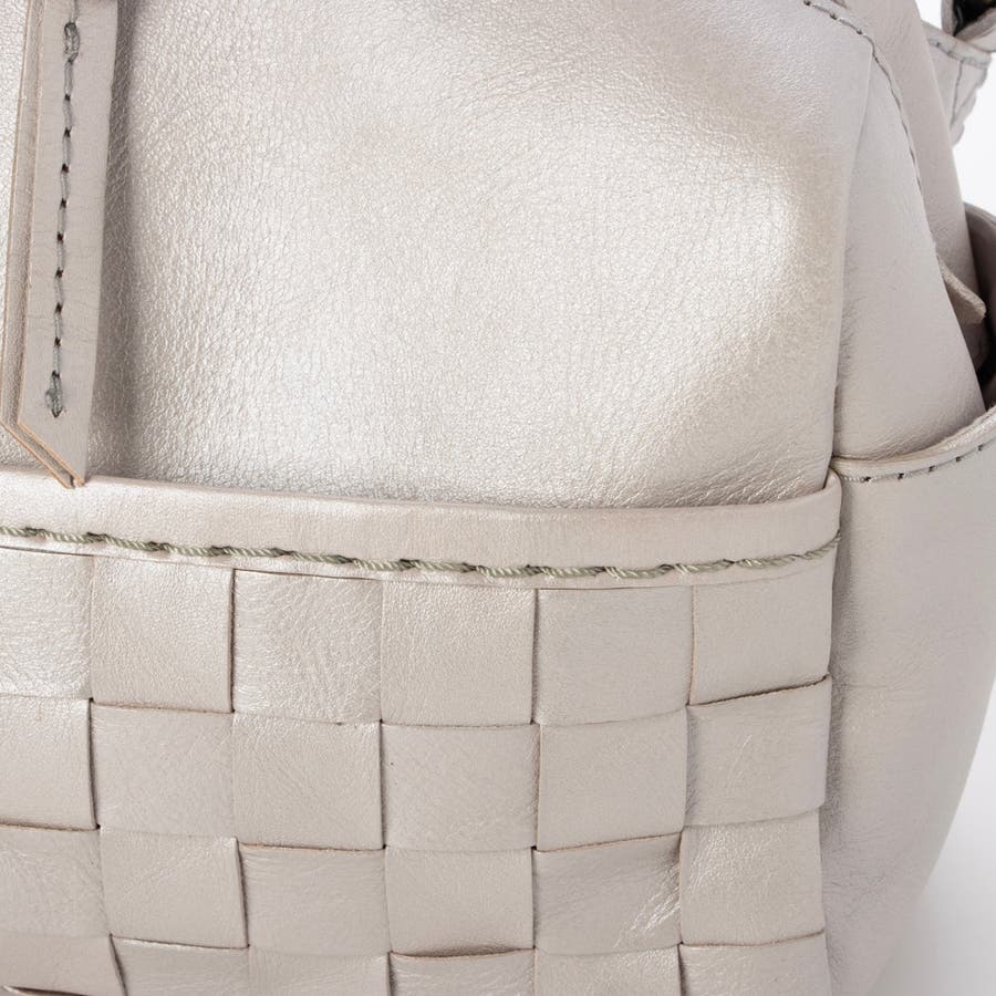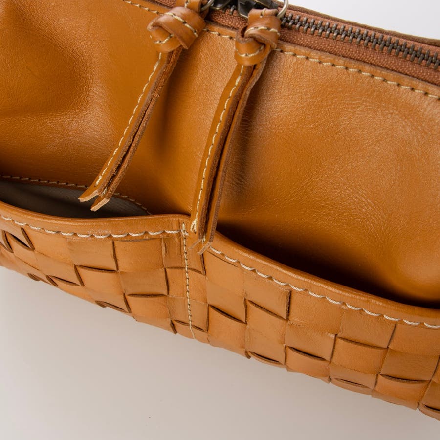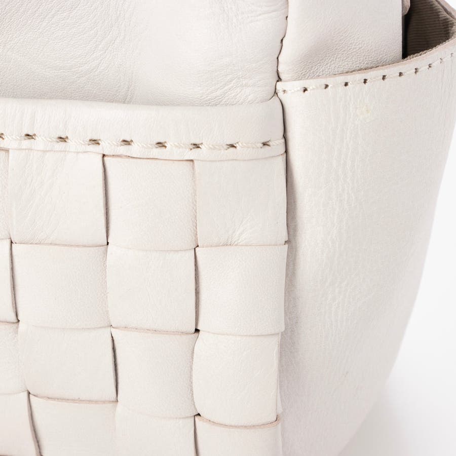 熟練のバリ職人によって一点一点丁寧に編み込まれた、ナチュラル牛革のイントレチャートバッグ。