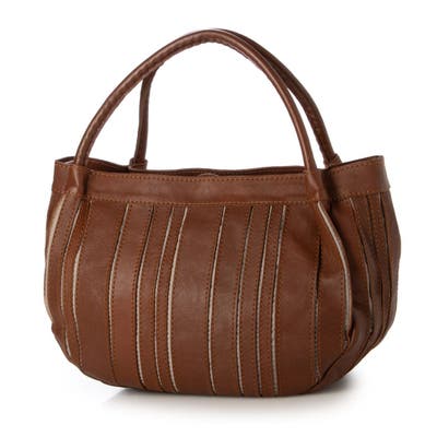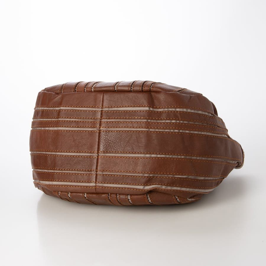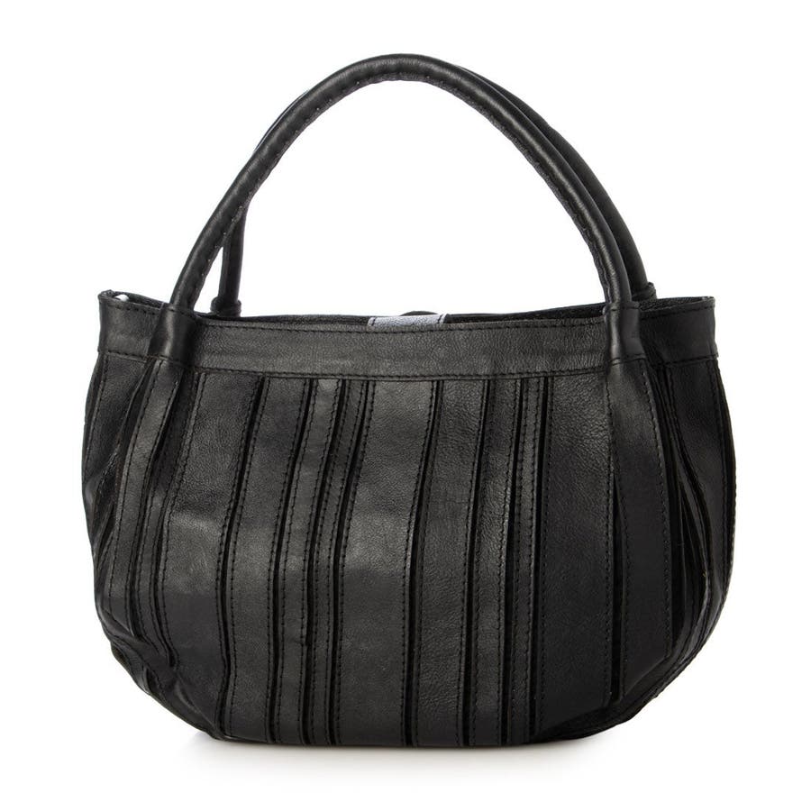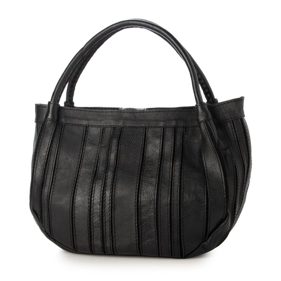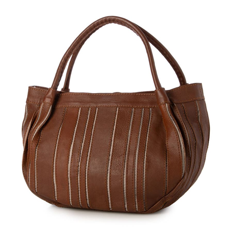 バリの軽量ナチュラルレザーをパッチワークしたストライプ柄が目を引くレザートートバッグ。