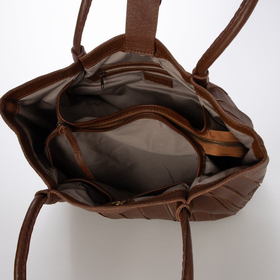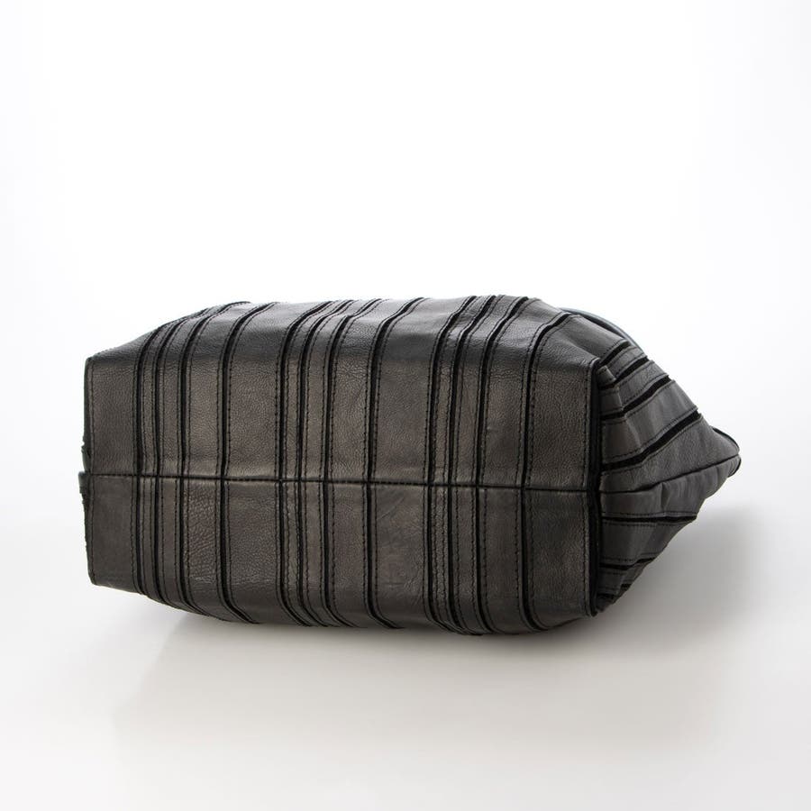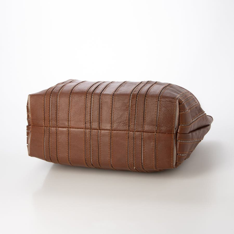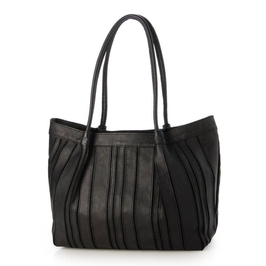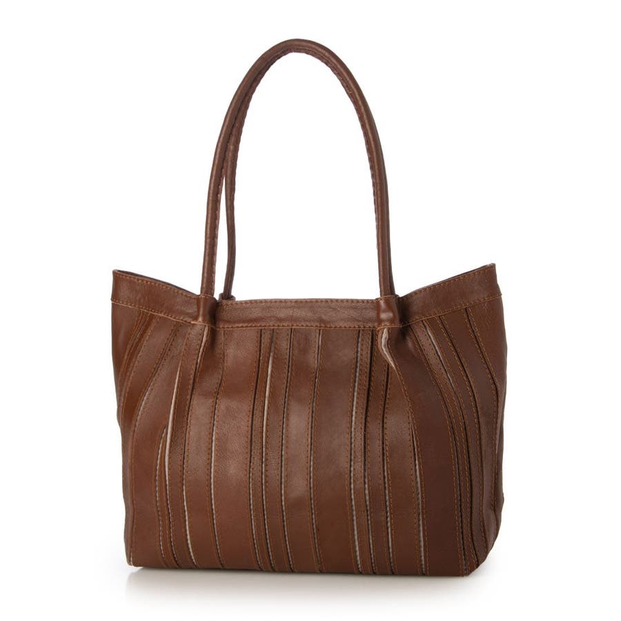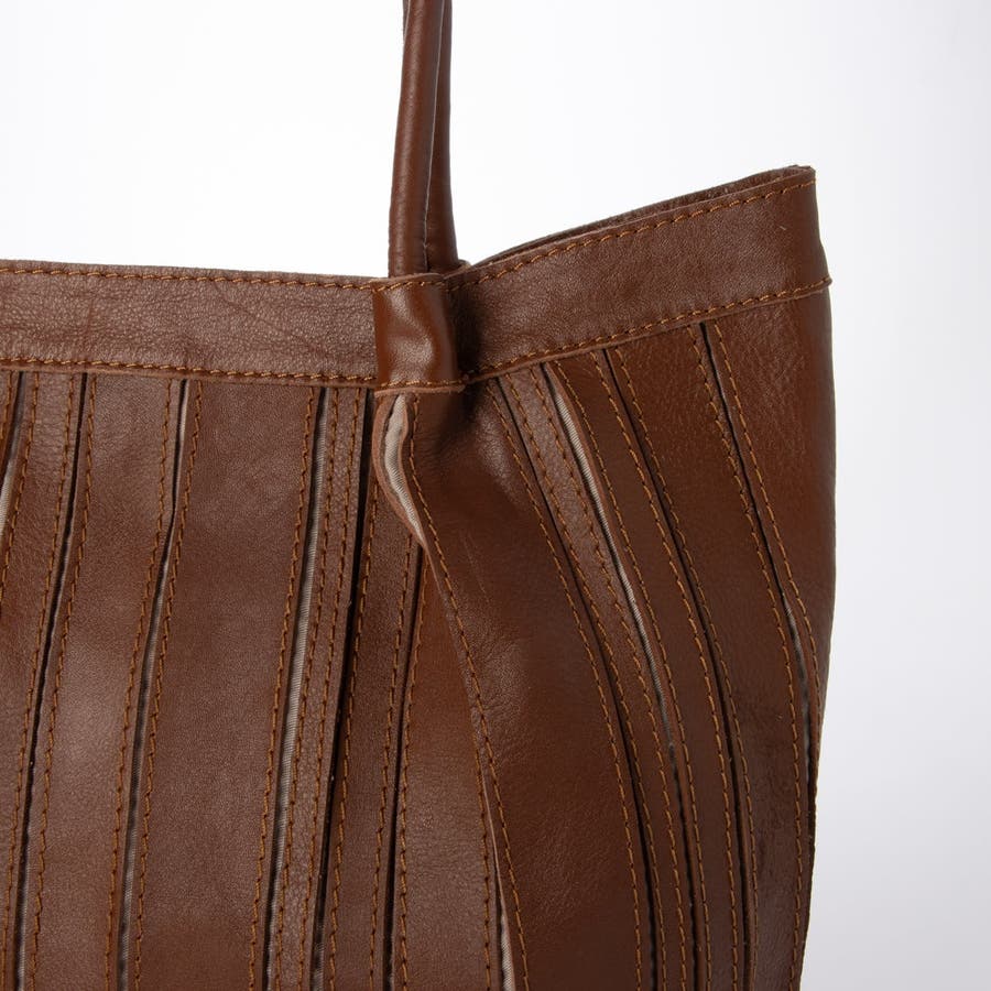 バリの軽量ナチュラルレザーをパッチワークしたストライプ柄が目を引くレザートートバッグ。