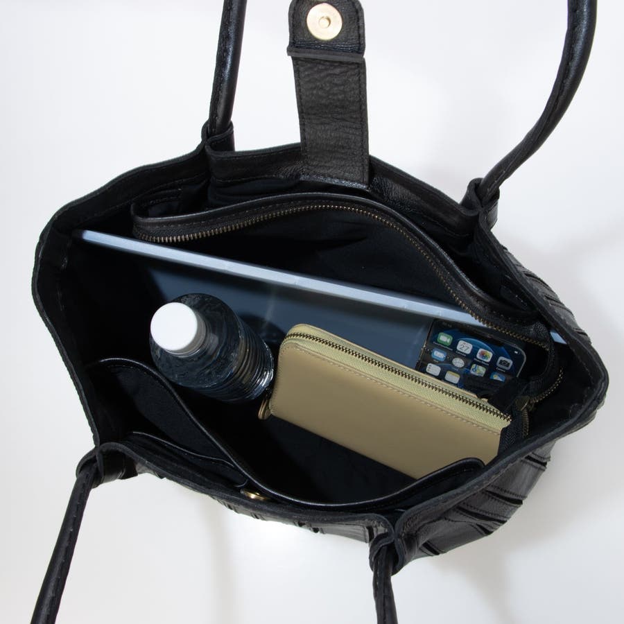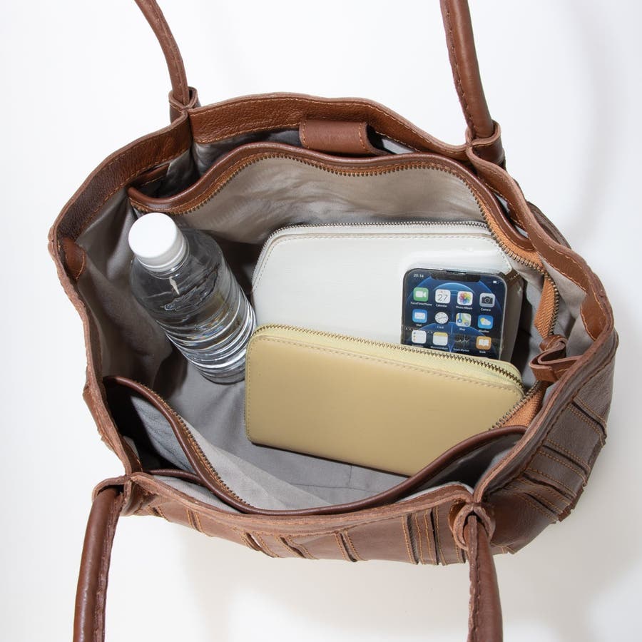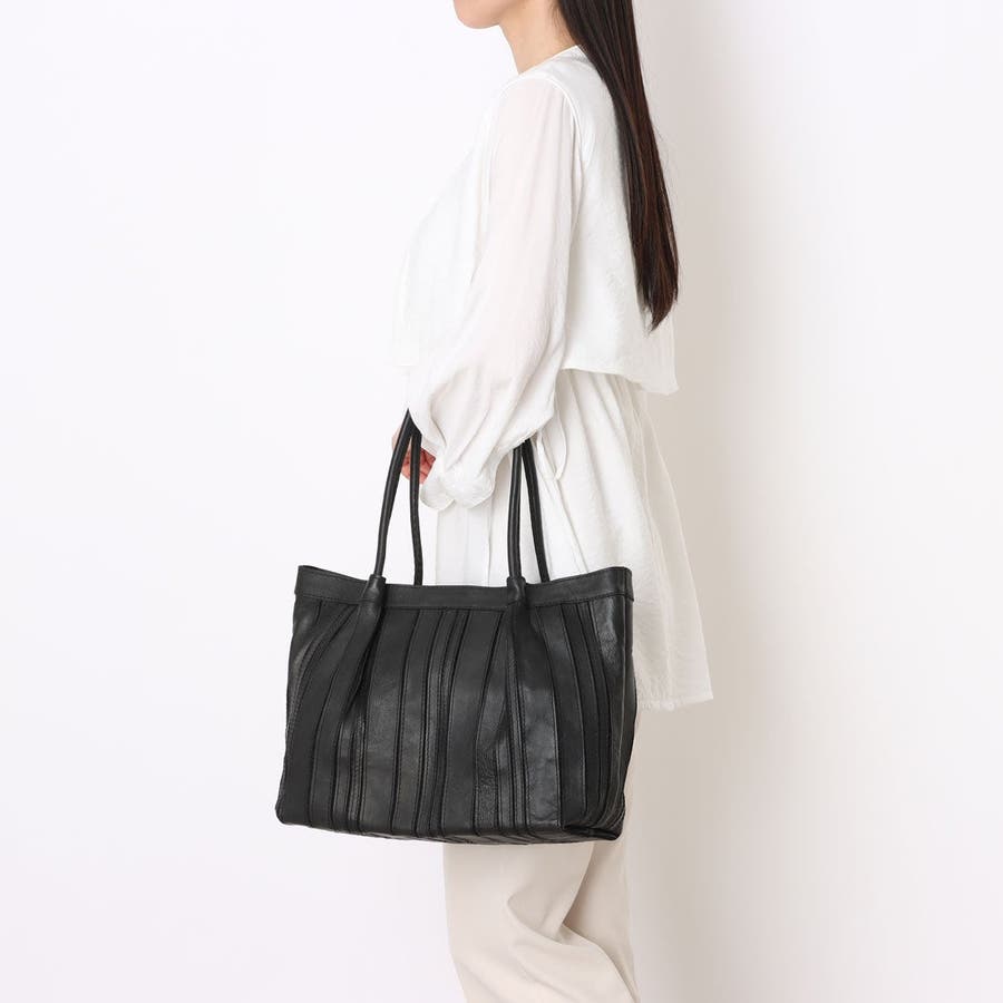 軽やかなレザーの風合いとデザイン性を兼ね備えた、大人女性におすすめのトートバッグです。