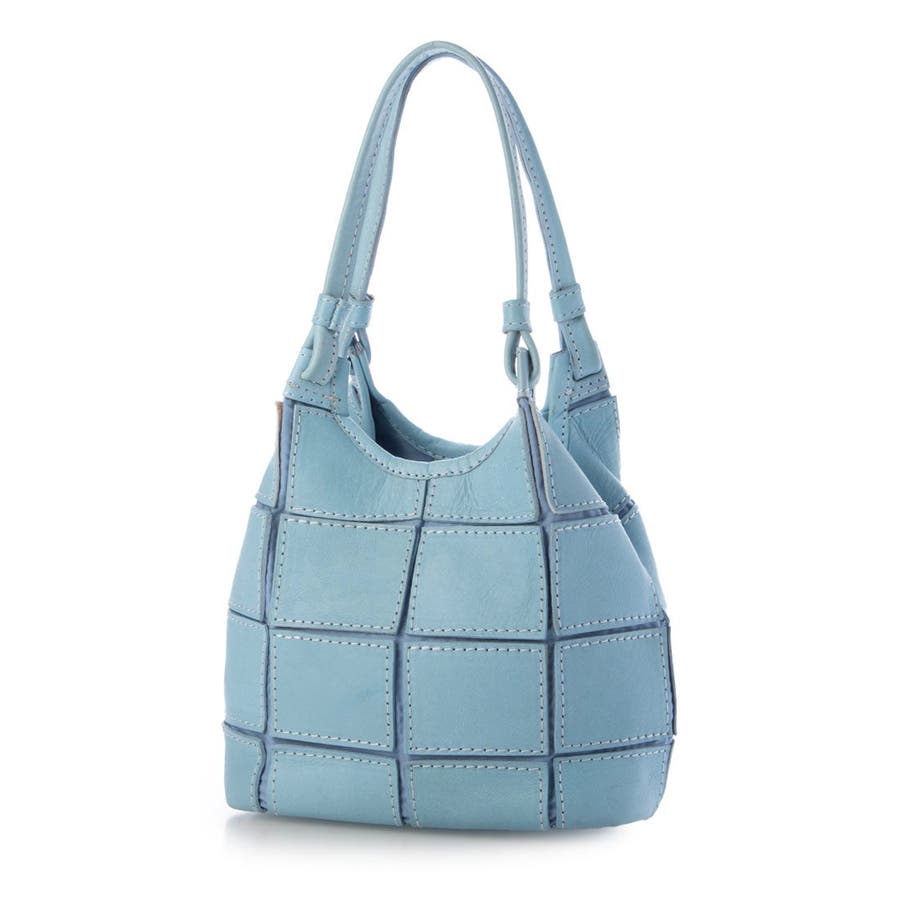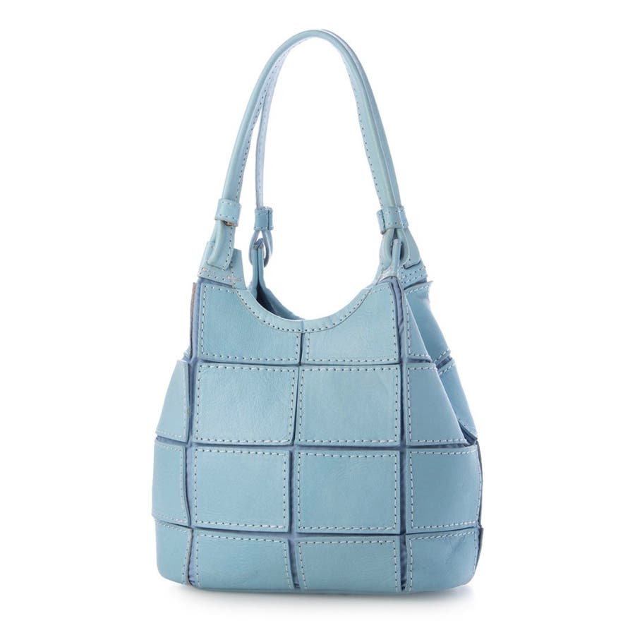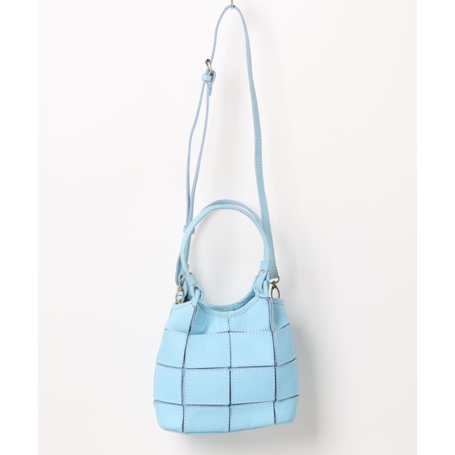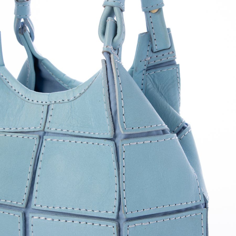 四角くカットされたレザーパーツを丁寧にパッチワーク状に縫製をした、素朴でありながらも洗練された表情のバッグです。