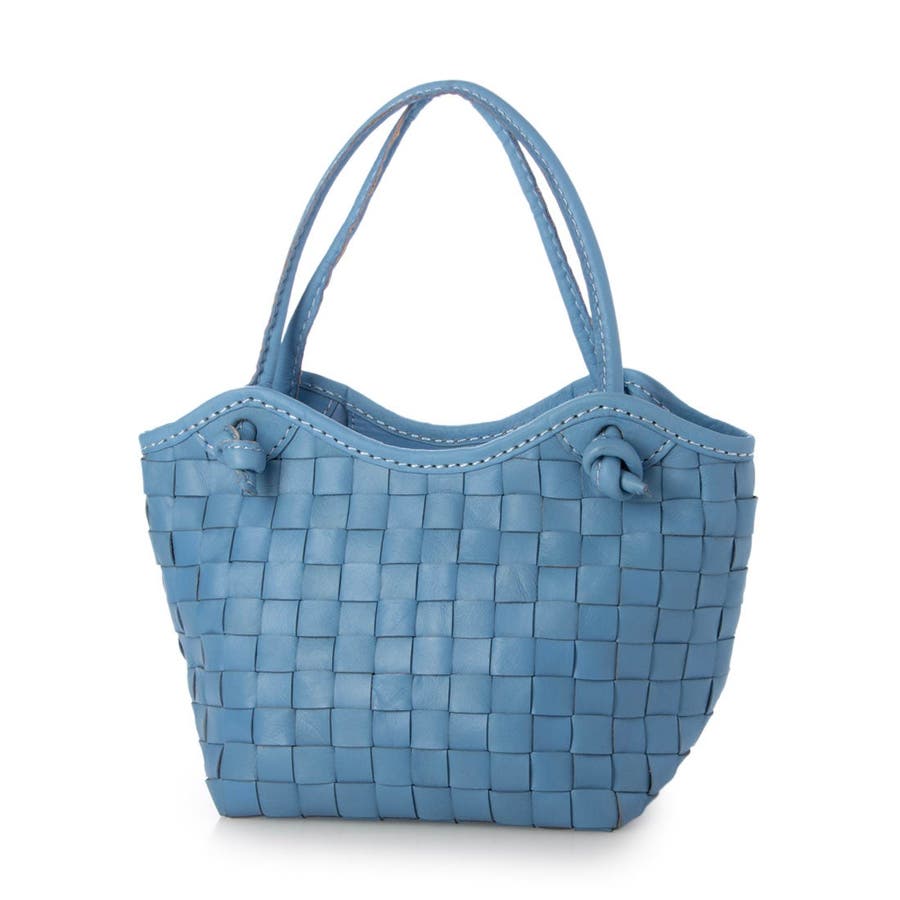 熟練のバリ職人によって一点一点丁寧に編み込まれた、ナチュラル牛革のイントレチャートバッグ。