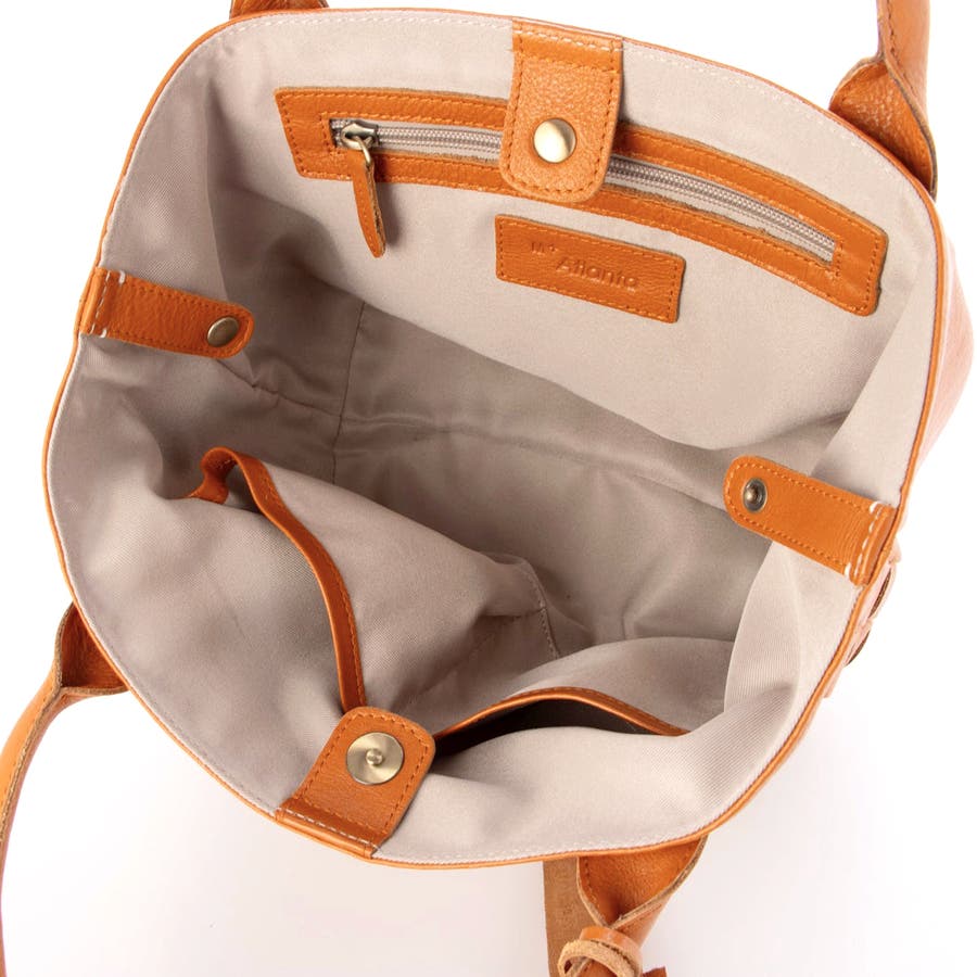 しなやかで丈夫なバングラデシュ産の天然牛革を使用した手提げトートバッグ