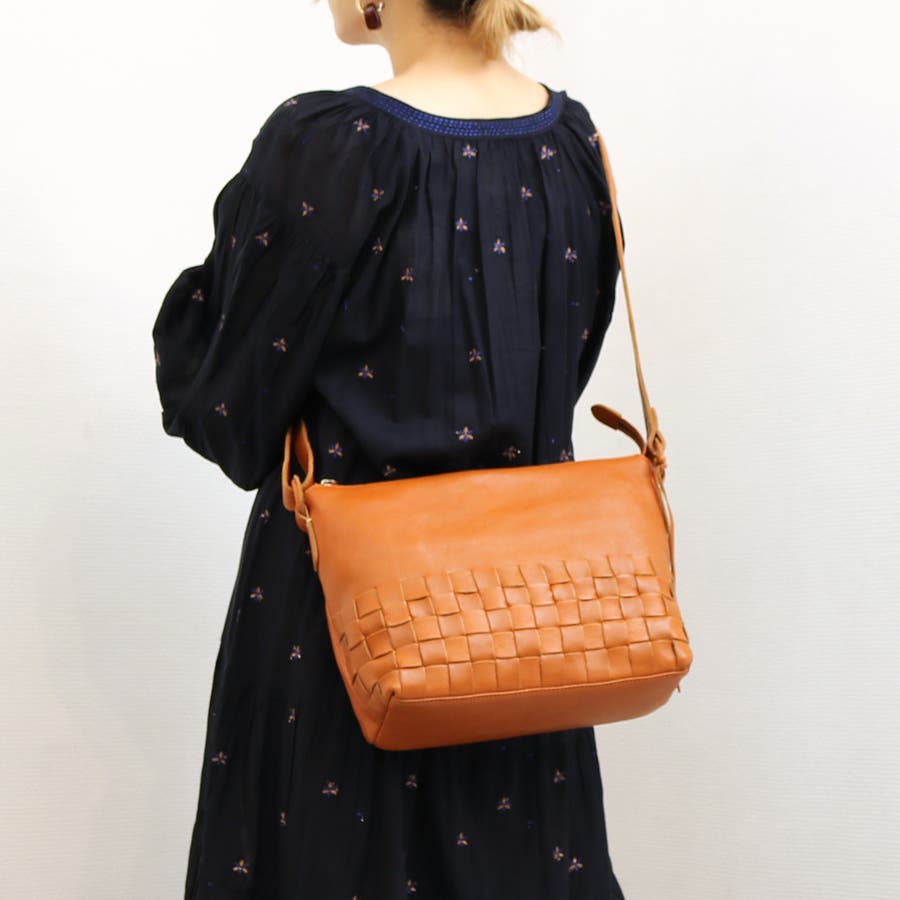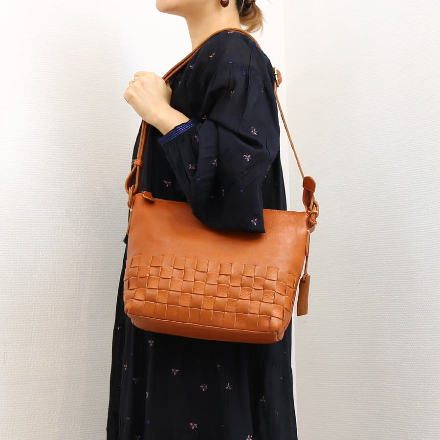 しなやかで丈夫なバングラデシュ産の天然牛革を使用したショルダーバッグ