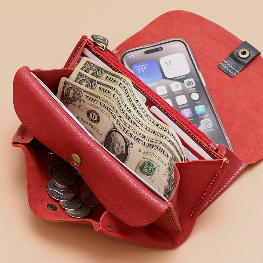 大きく開いてお札や小銭が取り出しやすいお財布です