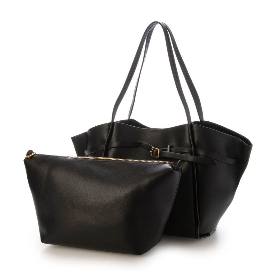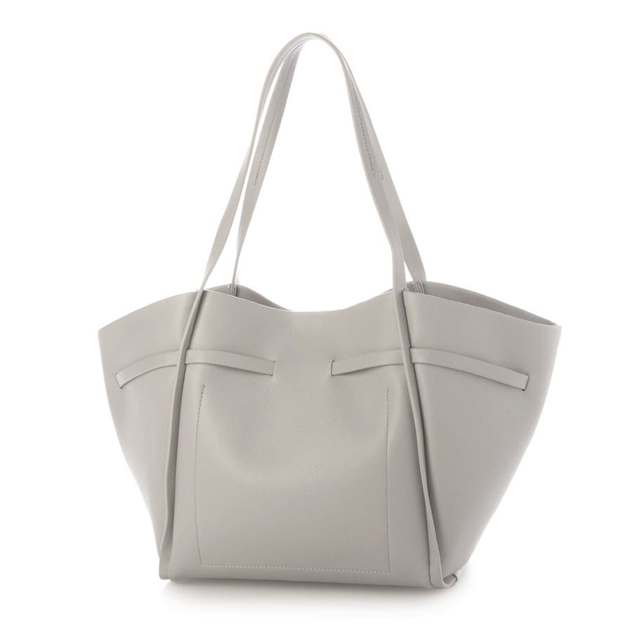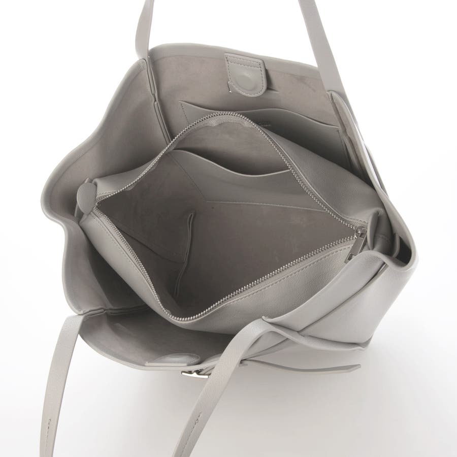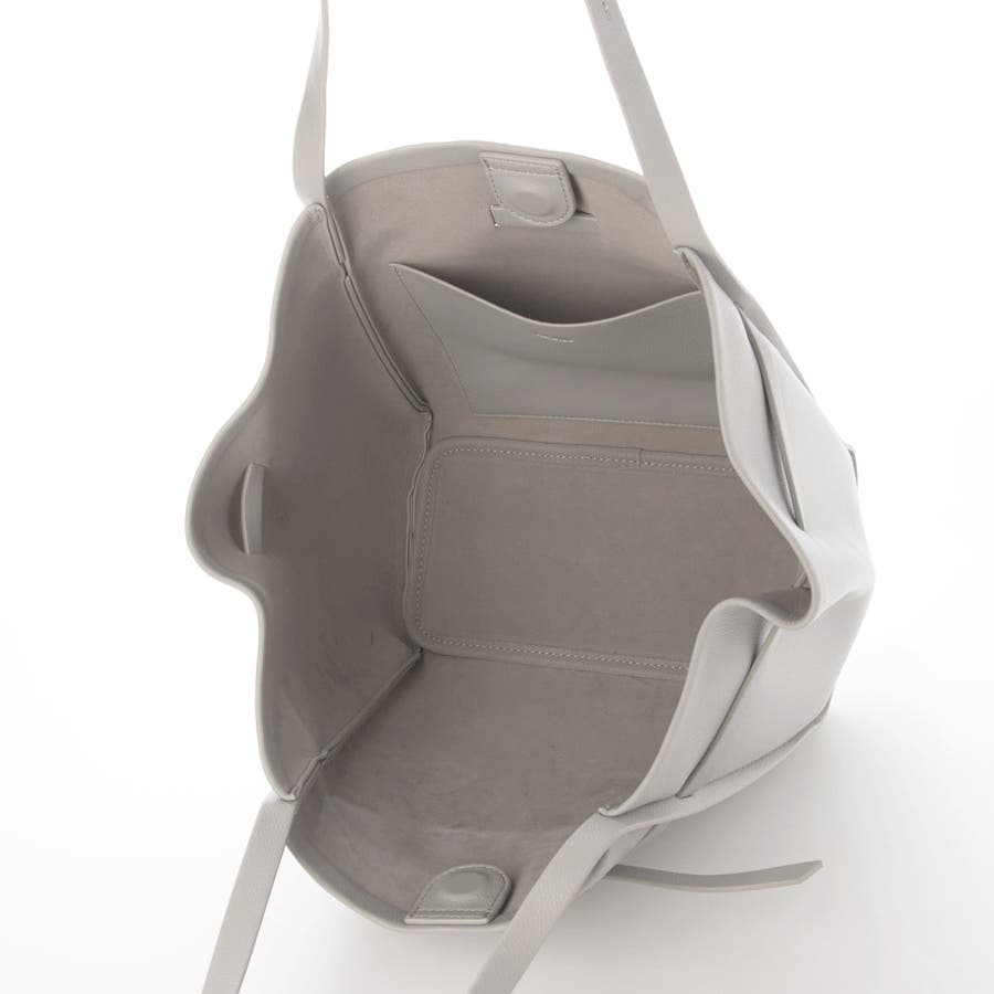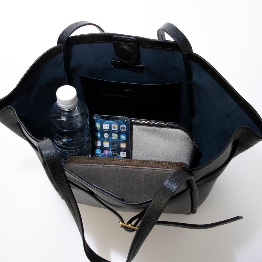 少し光沢のある合成皮革を使用したワイドサイズトートバッグ。