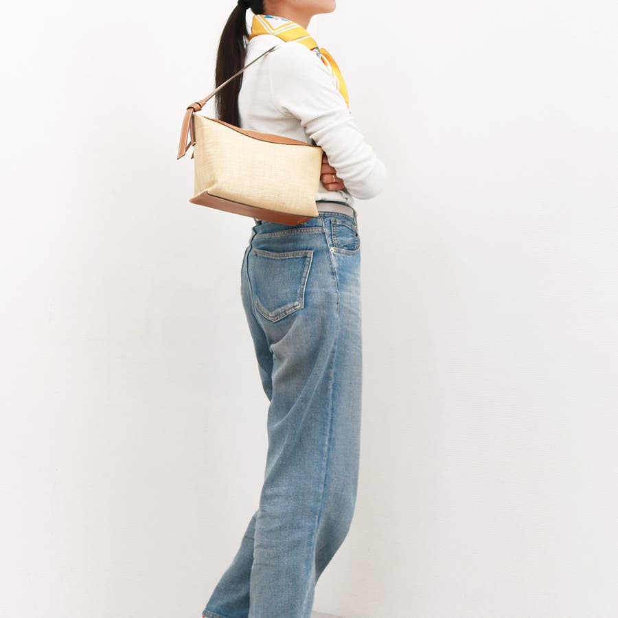 涼し気な雑材風素材を使ったワンショルダーバッグ。