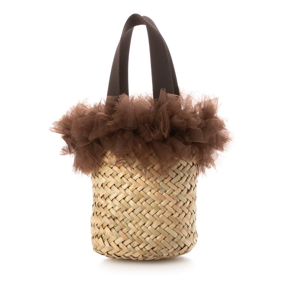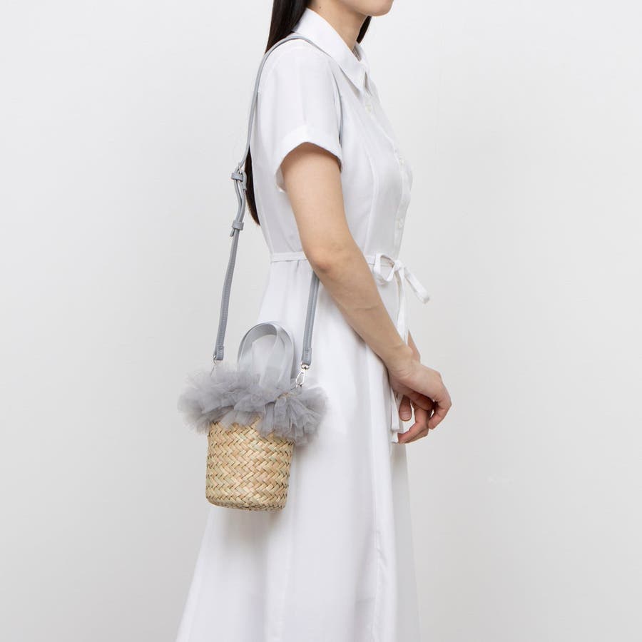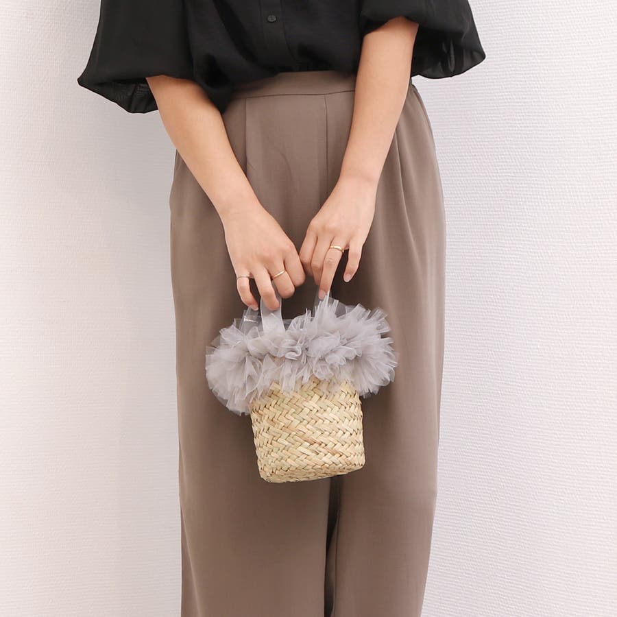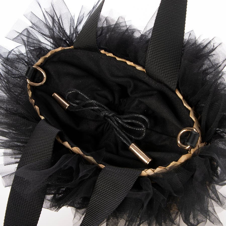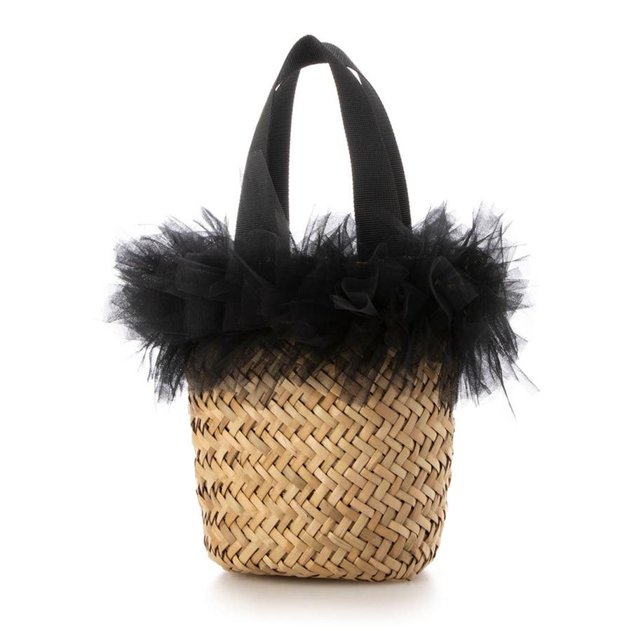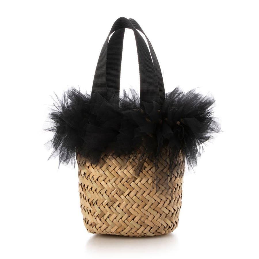 バレエのチュチュを連想させるフリルがゴージャスなミニかごバッグ。