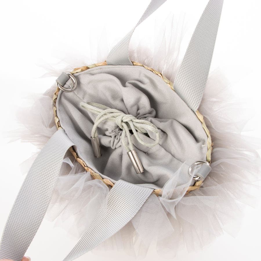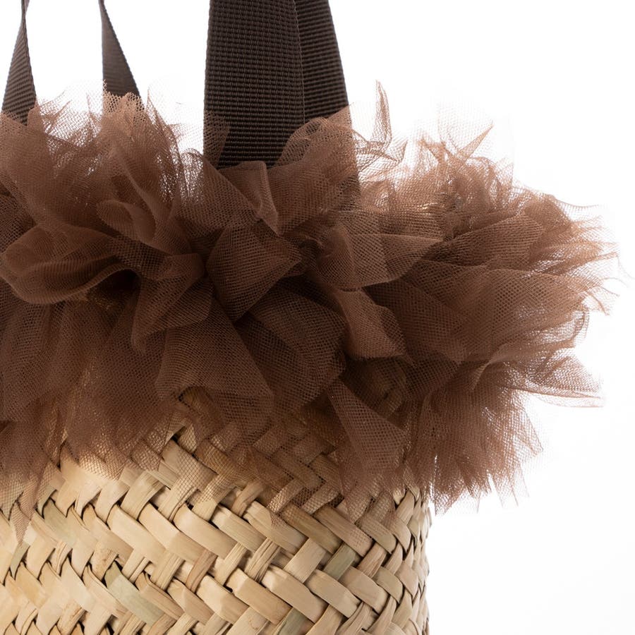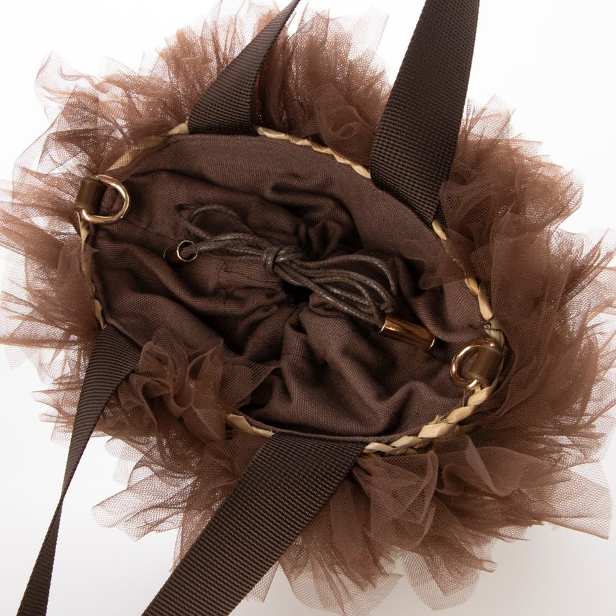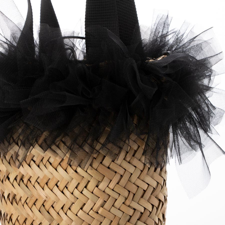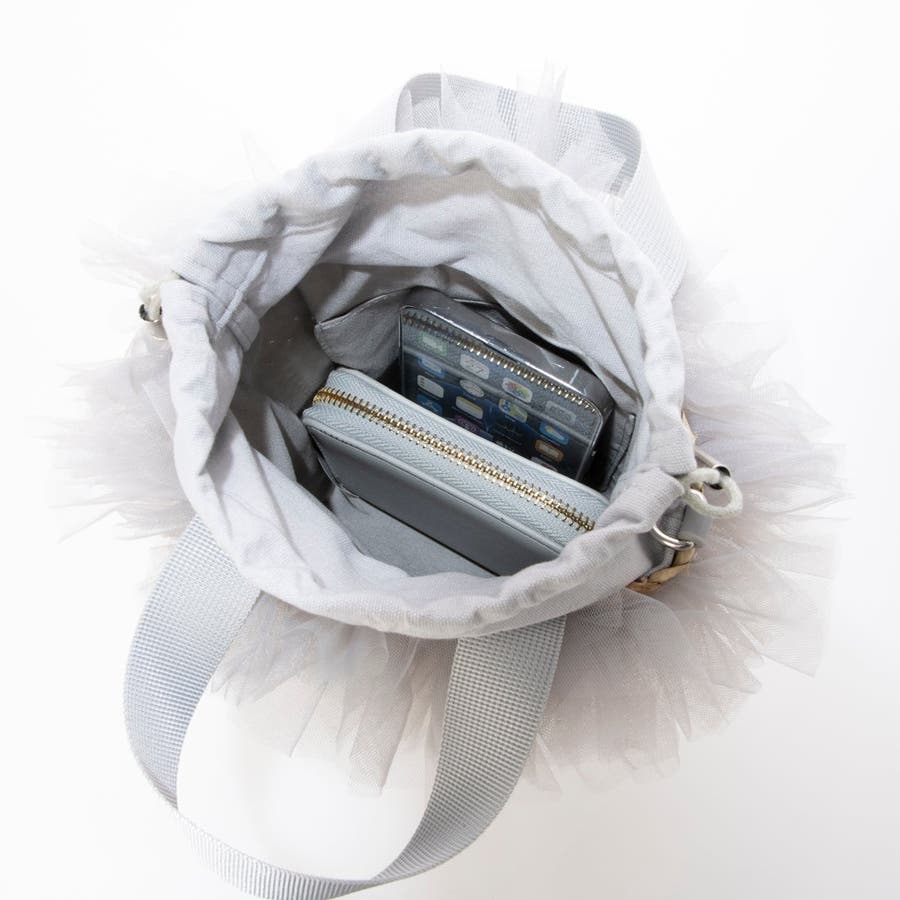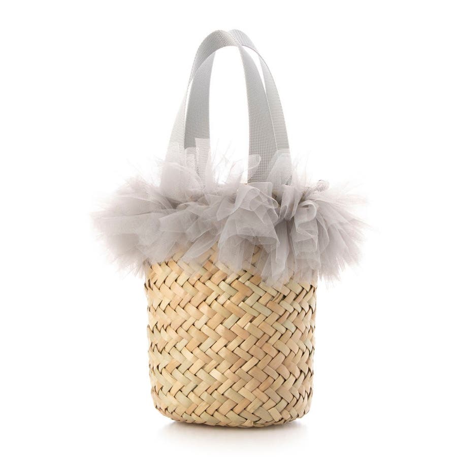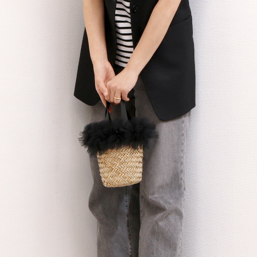 バレエのチュチュを連想させるフリルがゴージャスなミニかごバッグ。