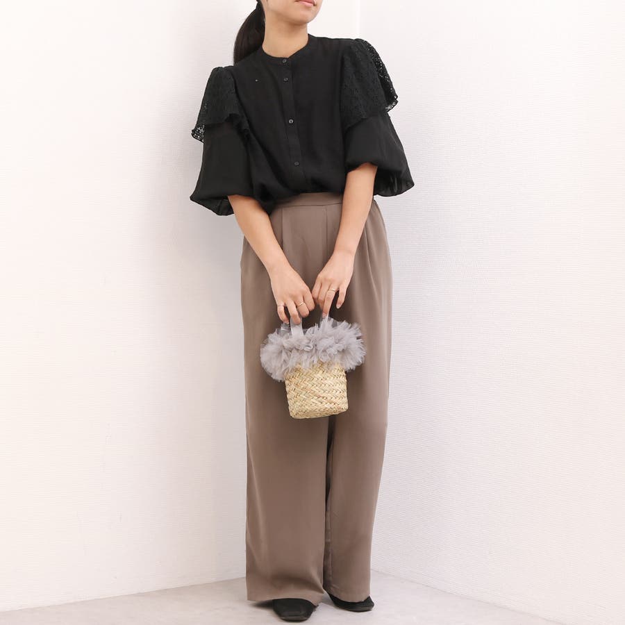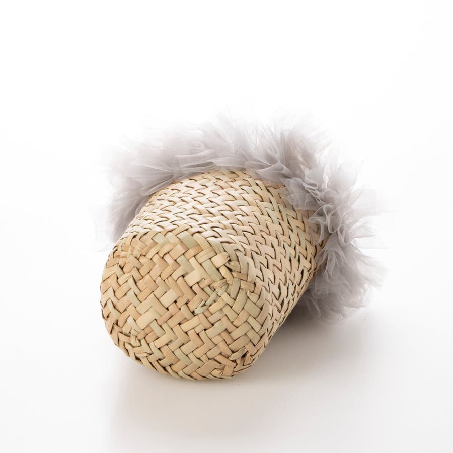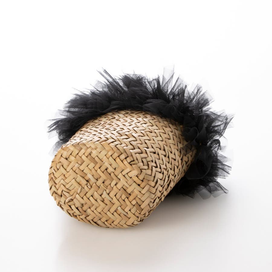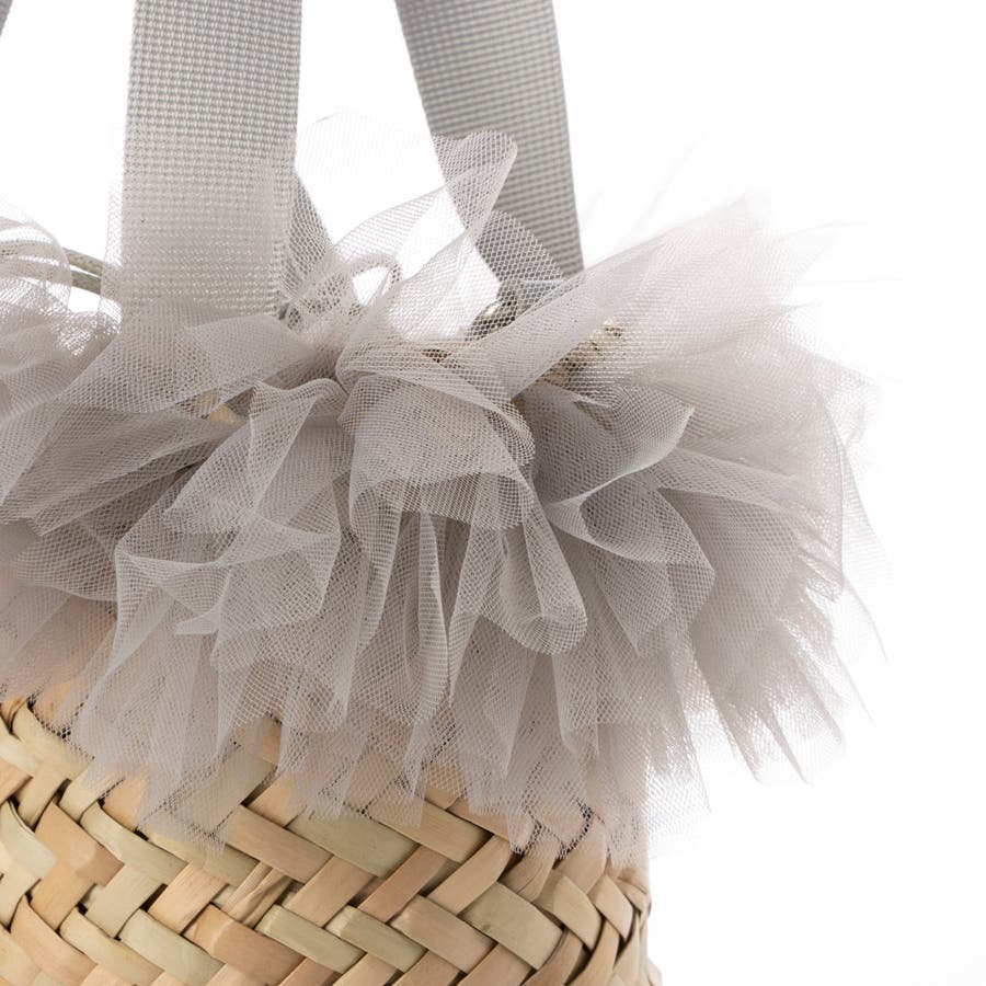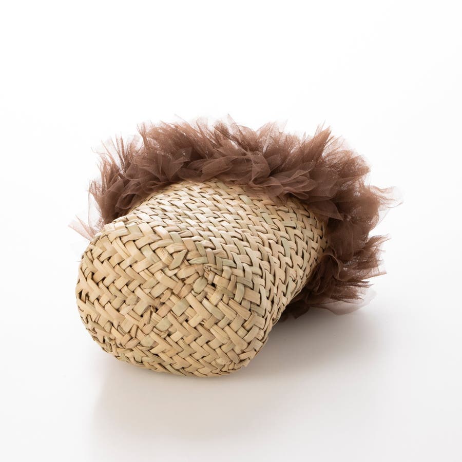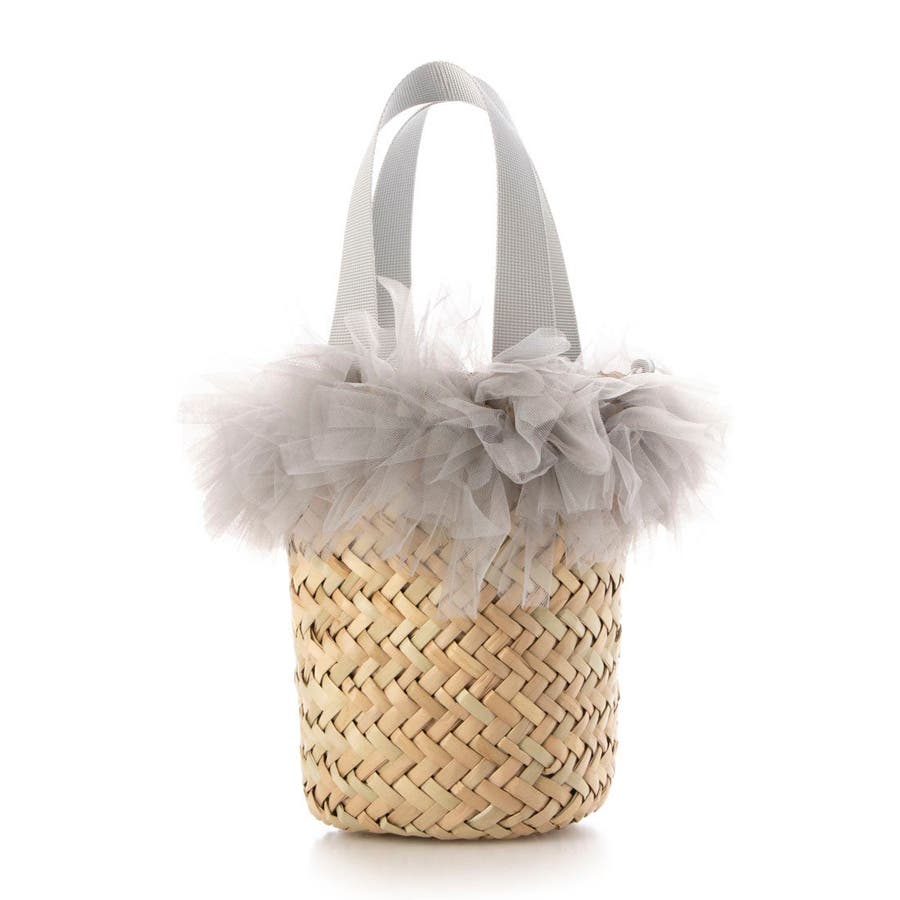 バレエのチュチュを連想させるフリルがゴージャスなミニかごバッグ。