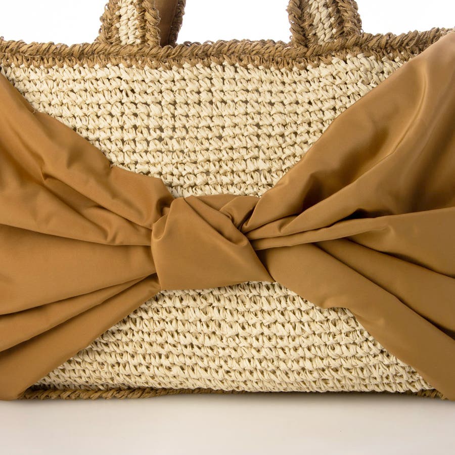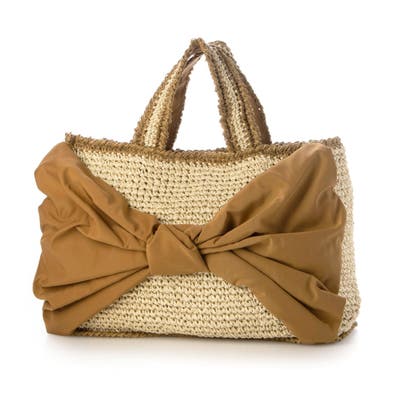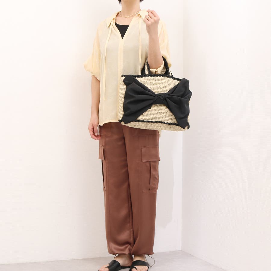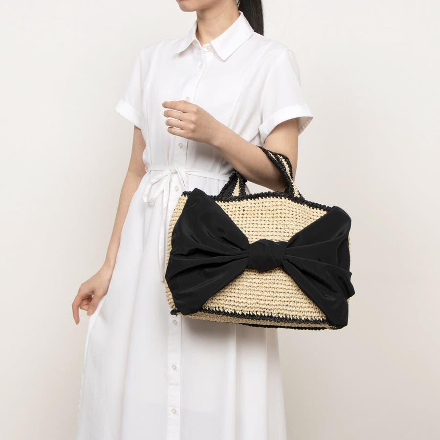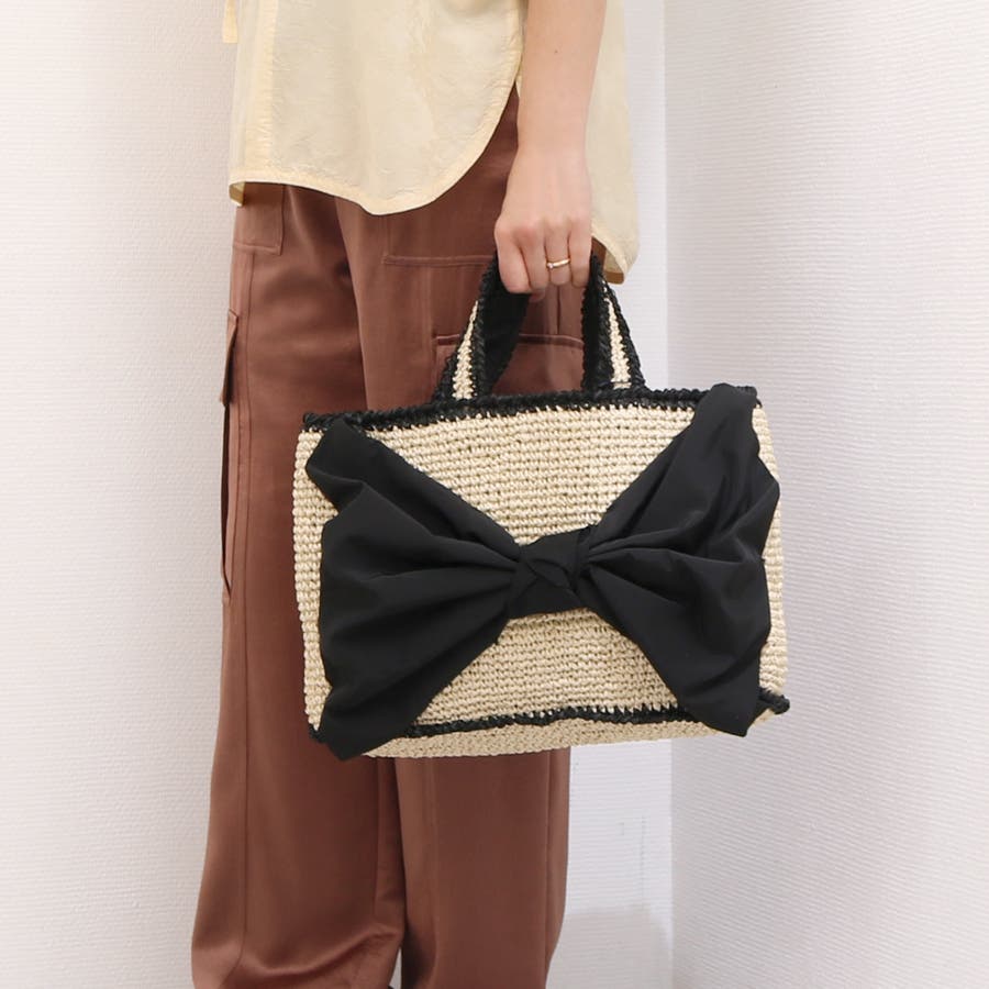 ビッグリボンが目を引くカゴバッグ。
