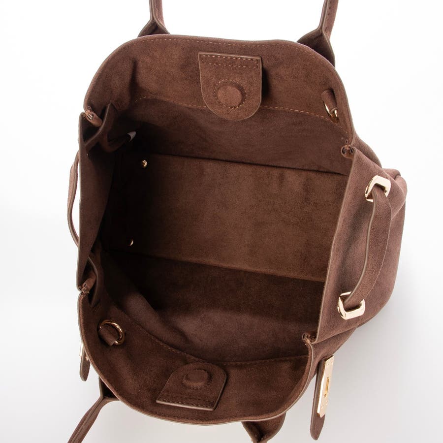 クラシカルで上品な印象を与えるスエード素材の2WAYバッグ。