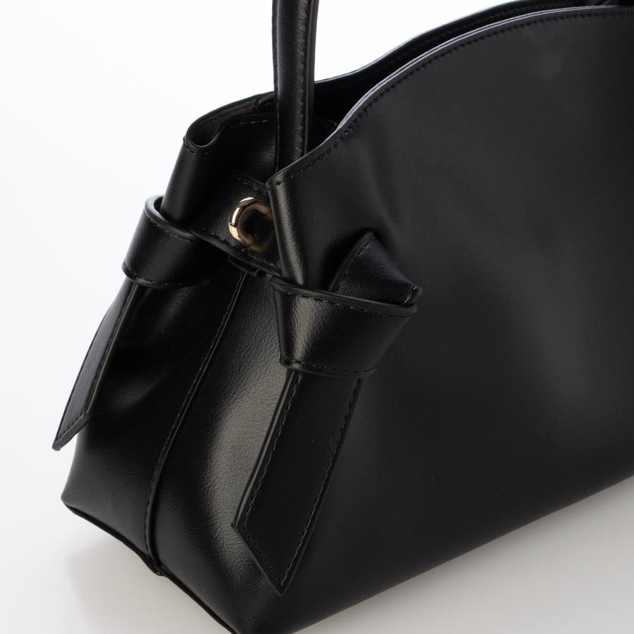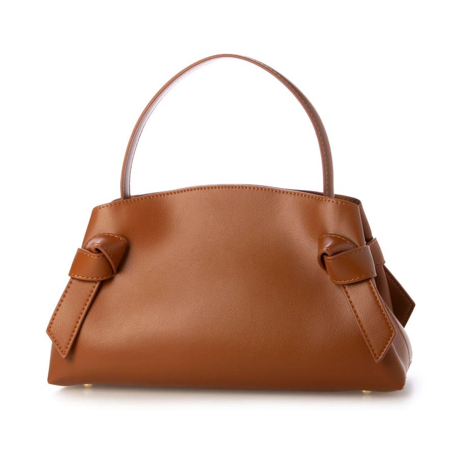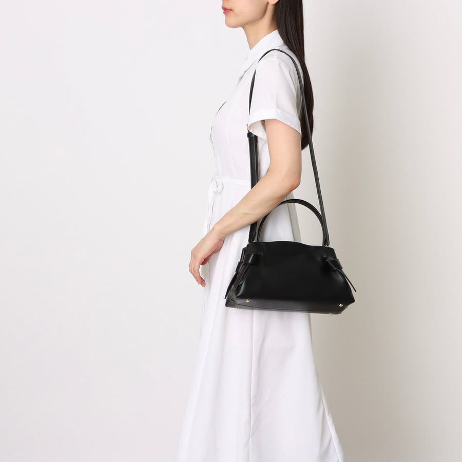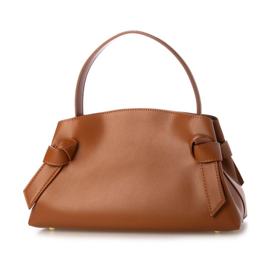 両サイドのリボンモチーフがデザインポイントのハンドバッグ。