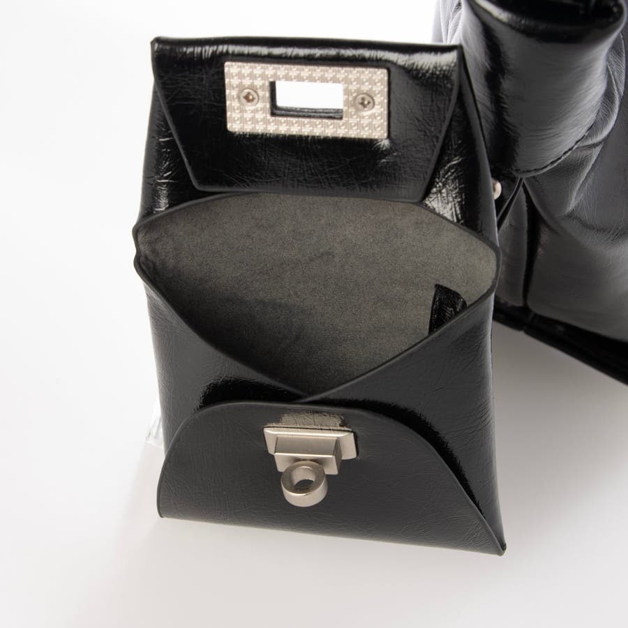 取り外しできるポーチはデザインのポイントであると共にイヤホンなどが収納できる機能性も持ち合わせています。