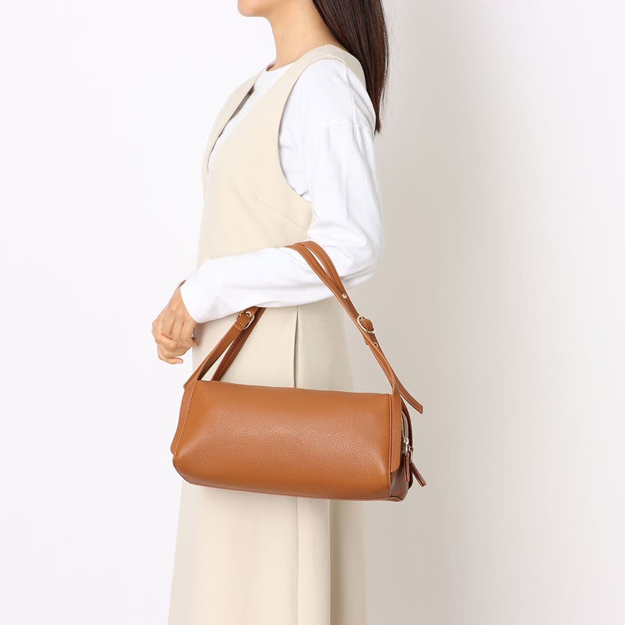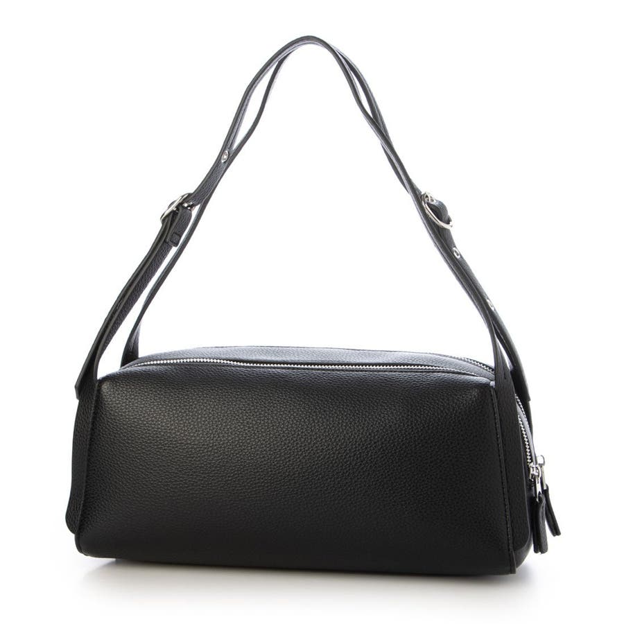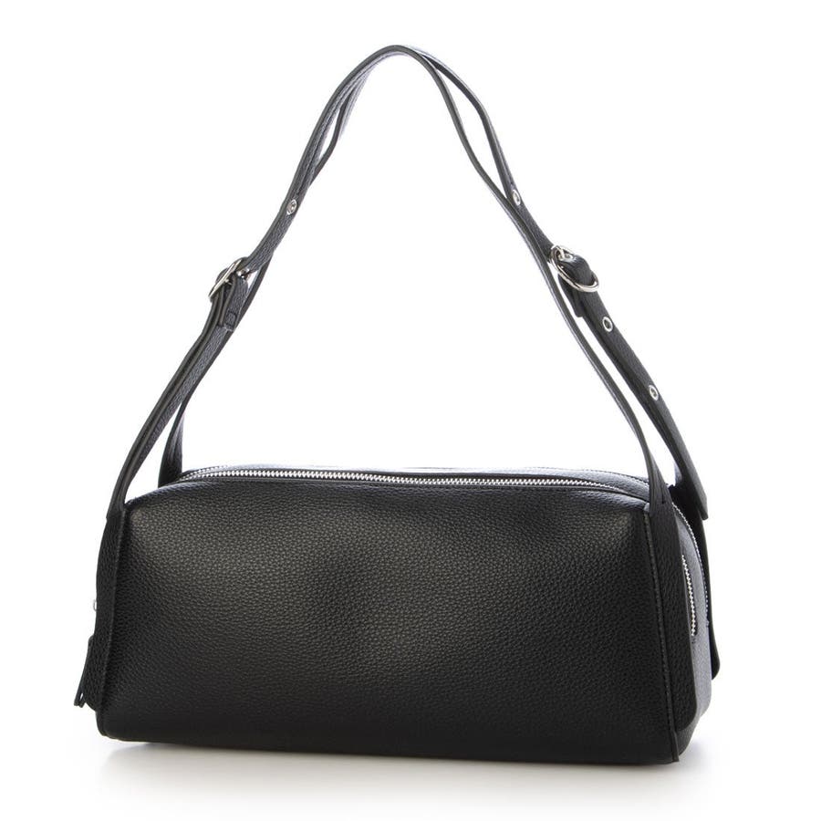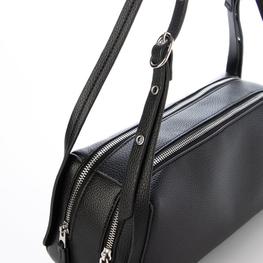 ハンドルのハトメとダブルファスナーがデザインポイントのセミショルダーバッグ。