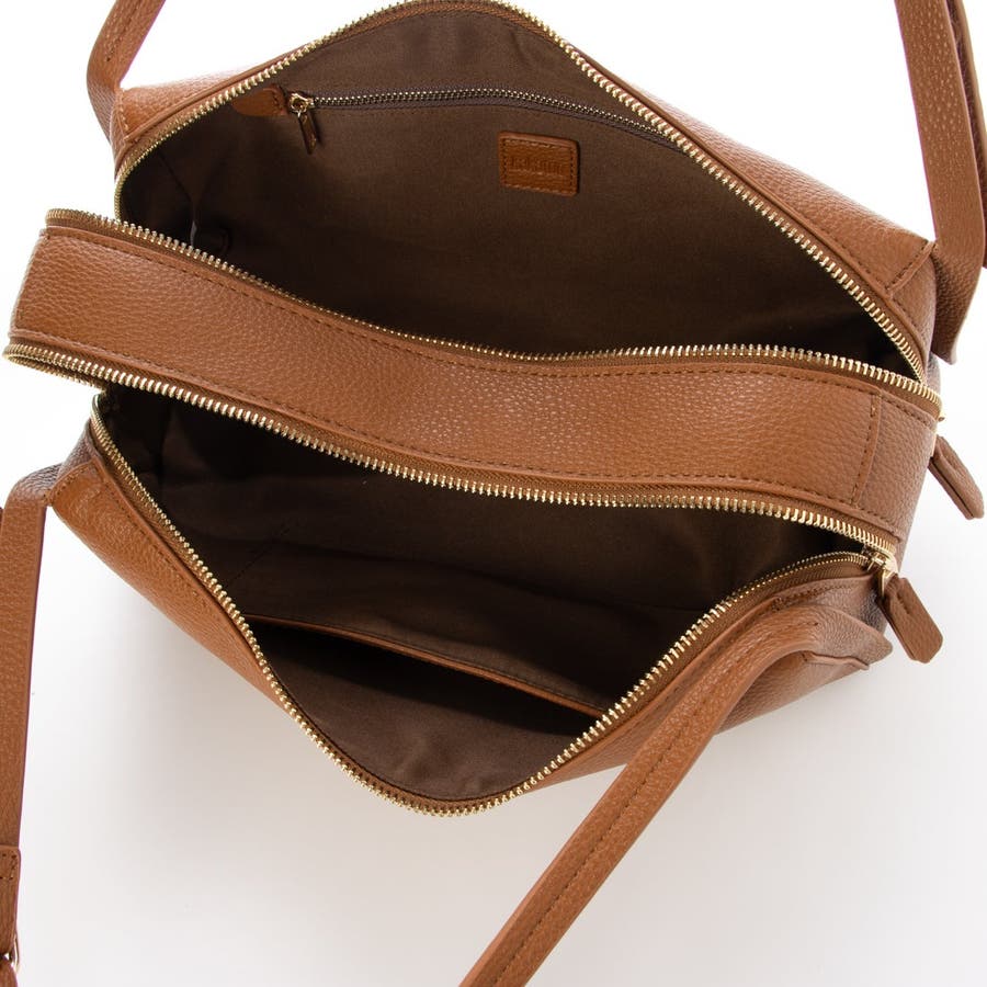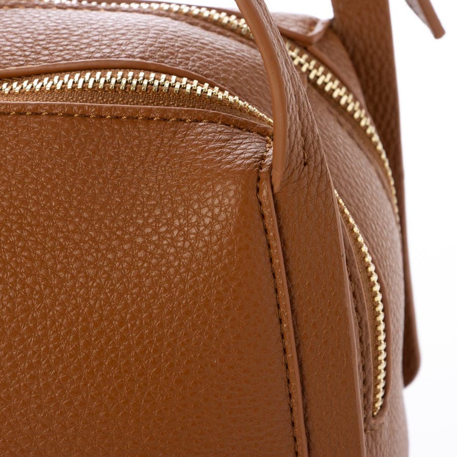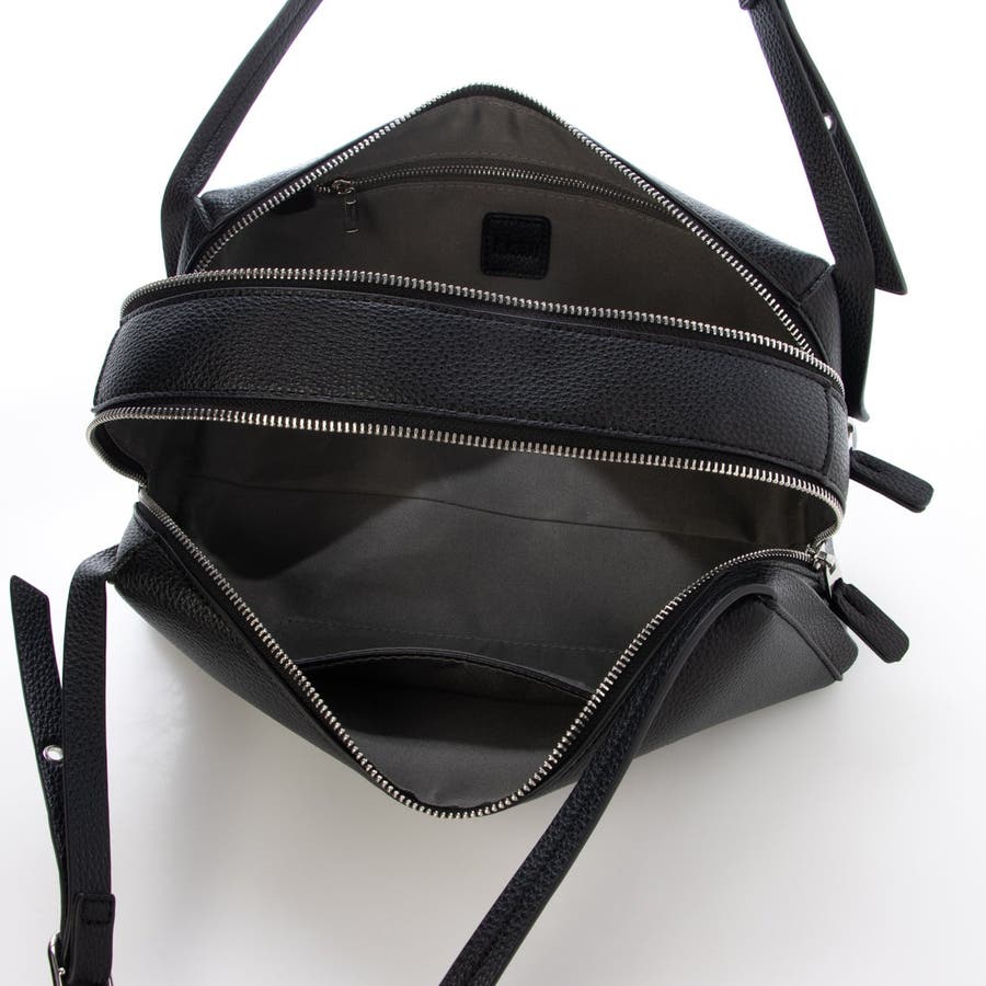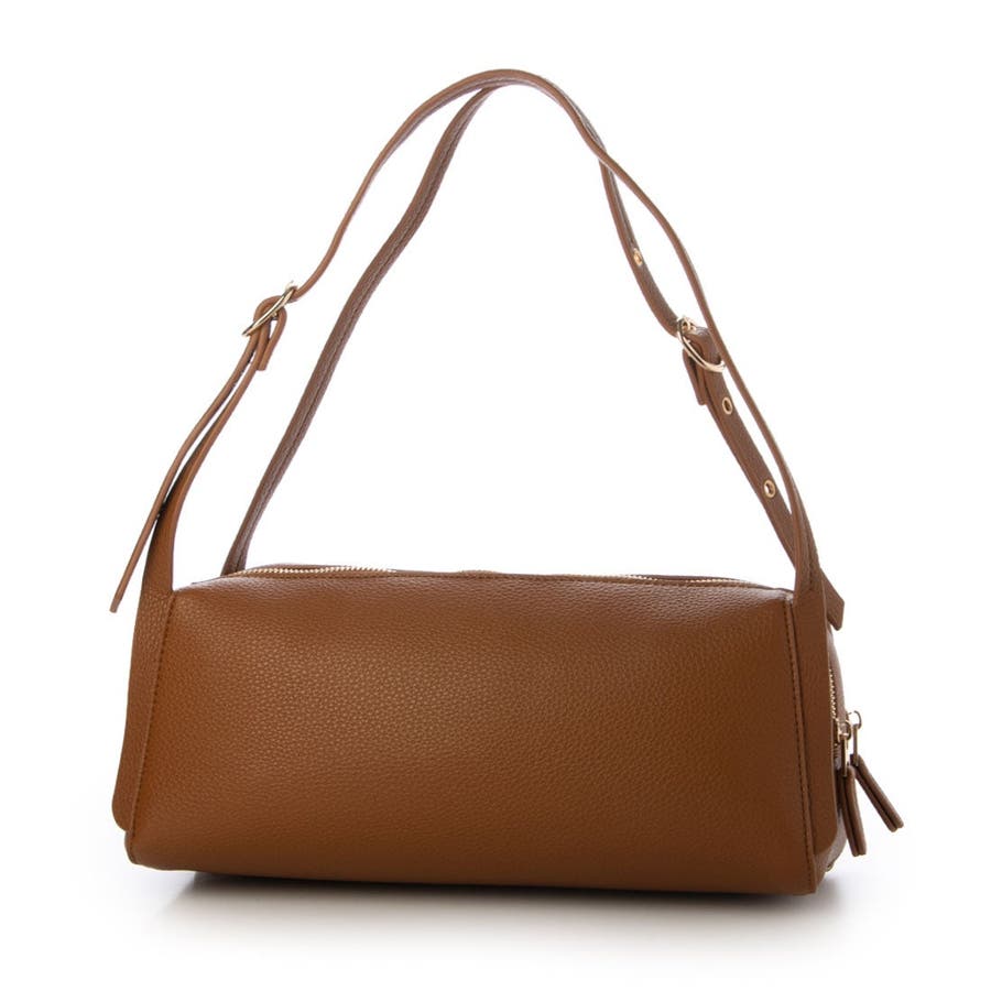 ハンドルのハトメとダブルファスナーがデザインポイントのセミショルダーバッグ。