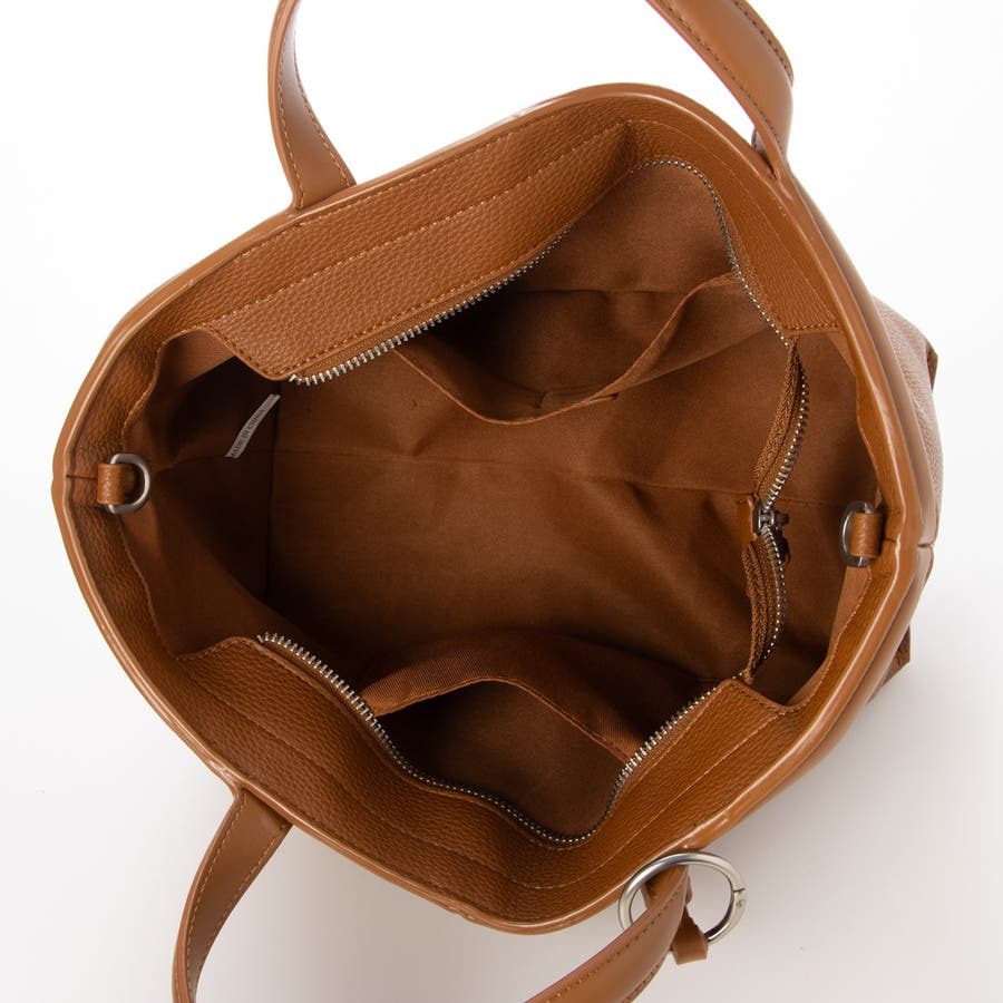 シボ感のある合皮を使用した上品な横長トートバッグ。