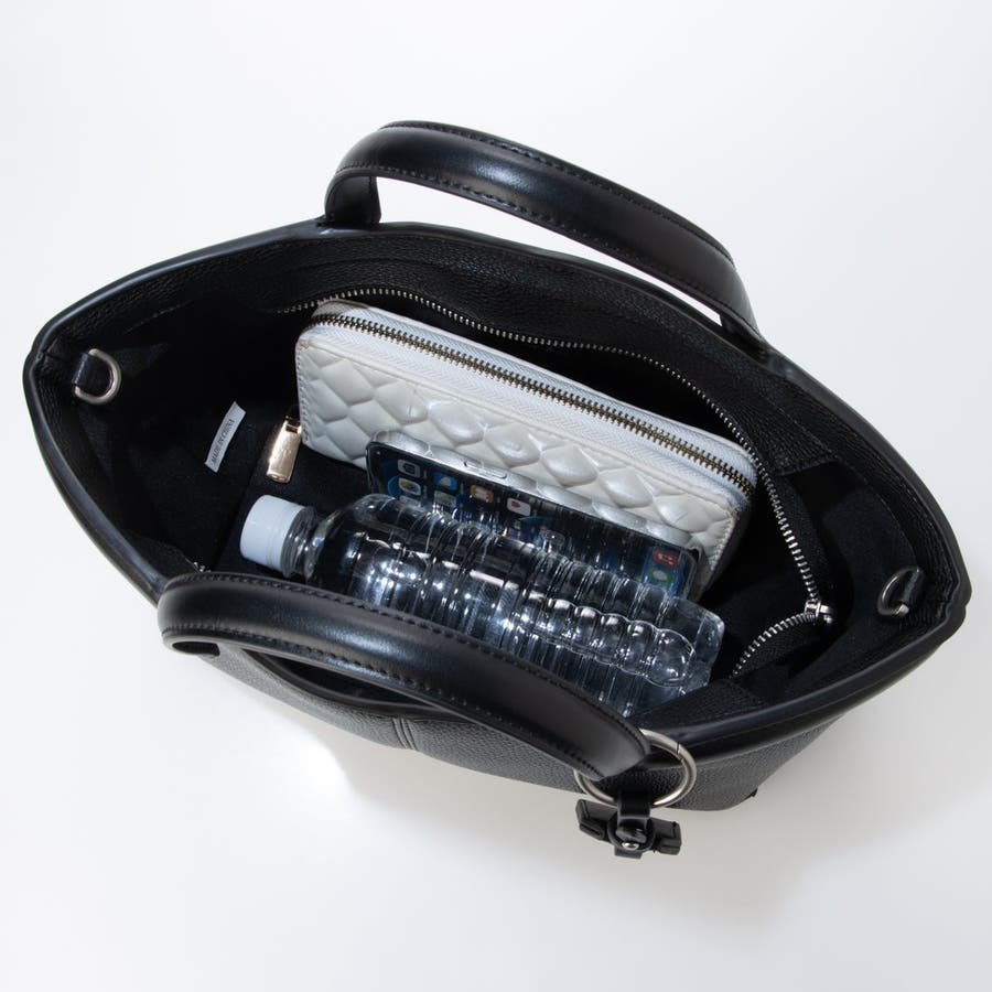 長財布や500mlボトルもすっきり収まるサイズ感で、通勤から普段のお出かけまで幅広く活躍します。