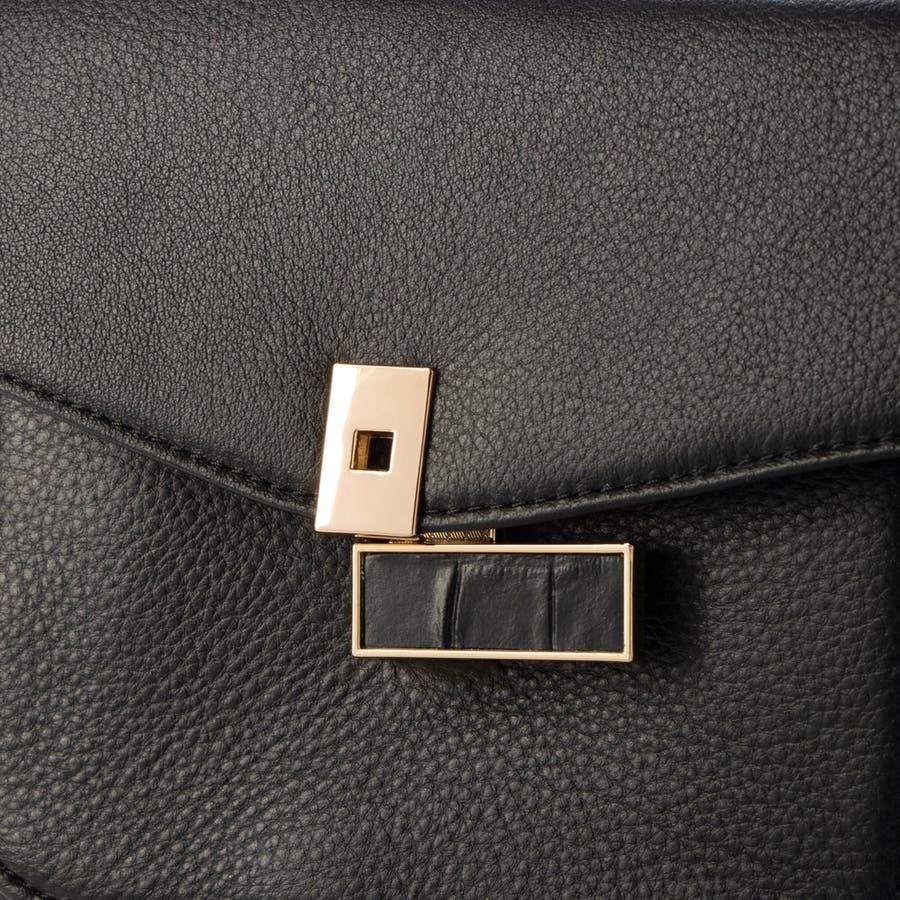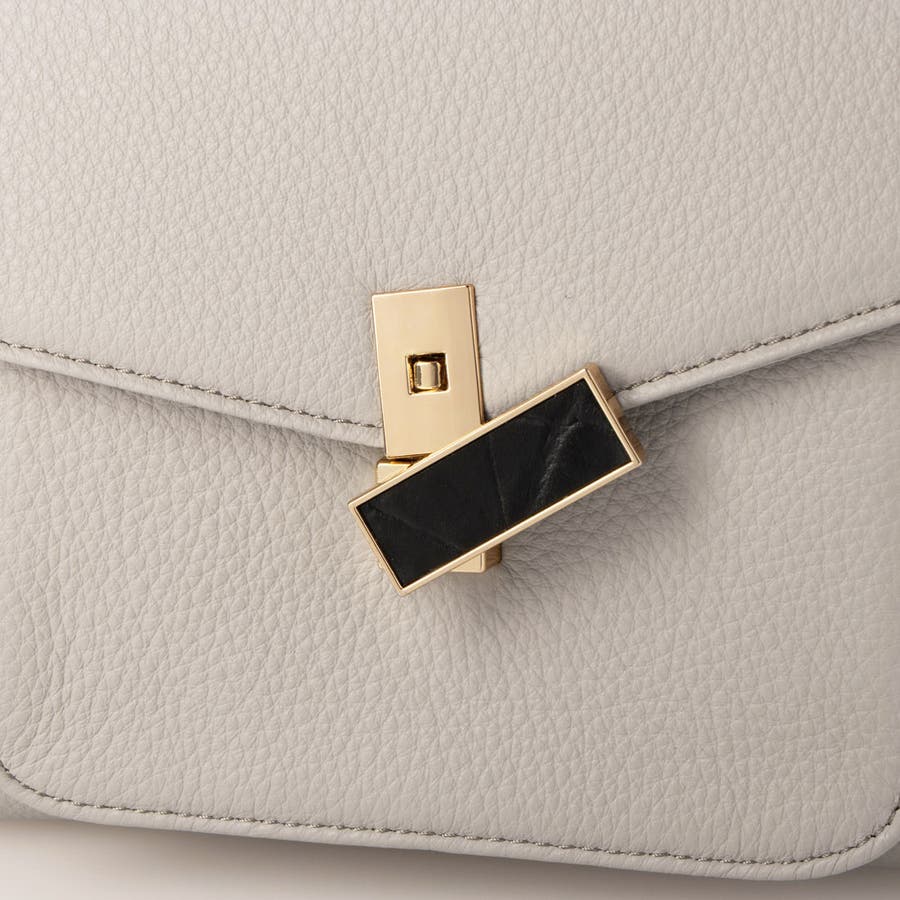 ロテートタイプ(回転タイプ)の金具部分とハンドル部分にはクロコ型押しの皮革を使いさりげないポイントになっています。