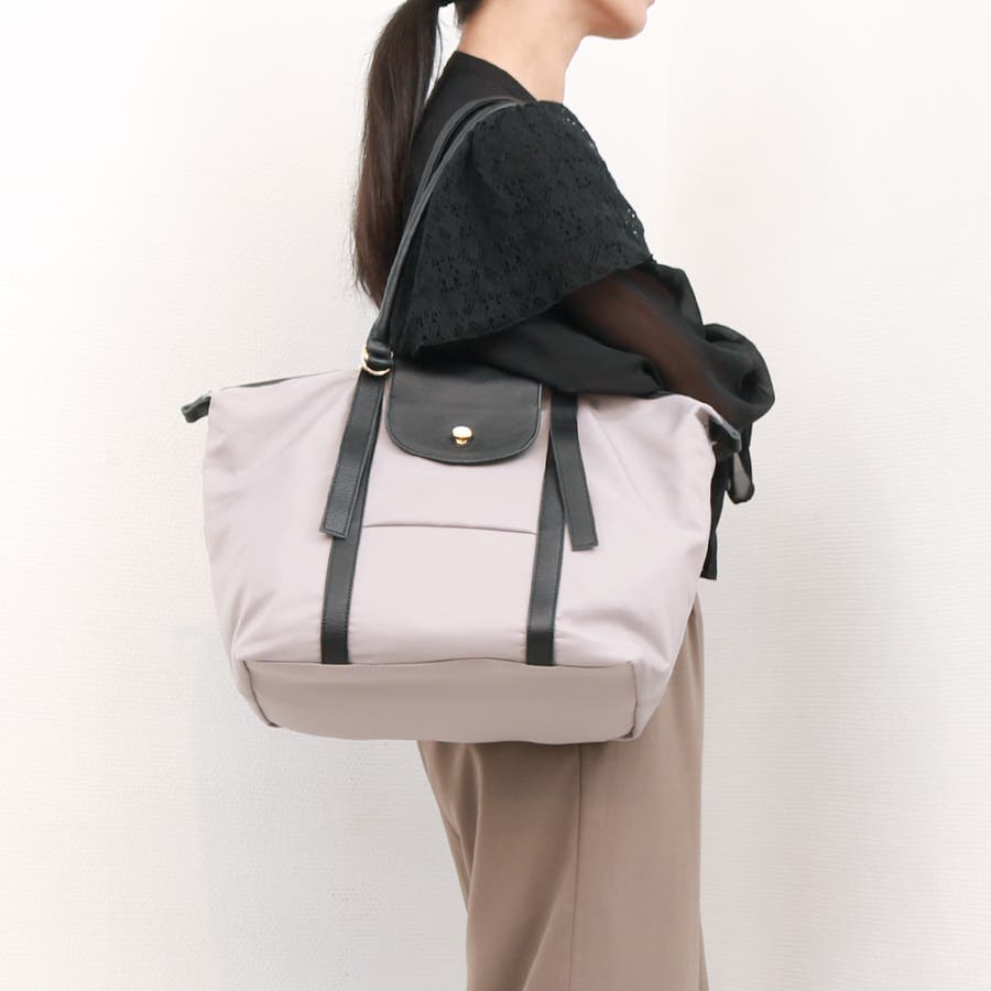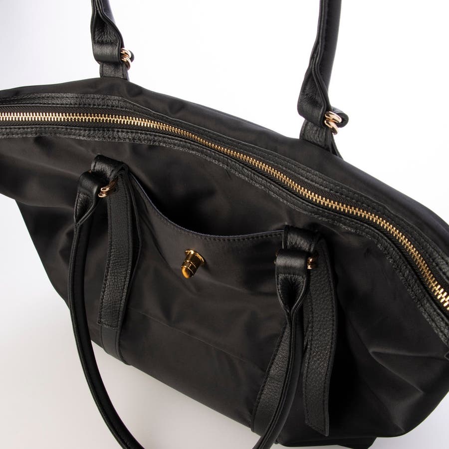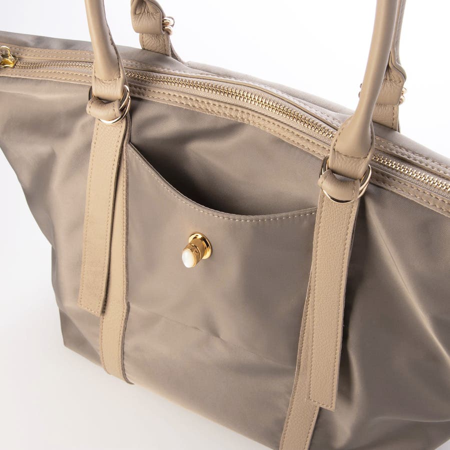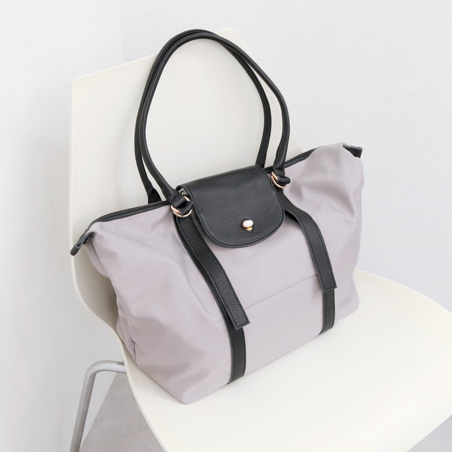ナイロンと牛革を組み合わせた肩入れトートバッグ。