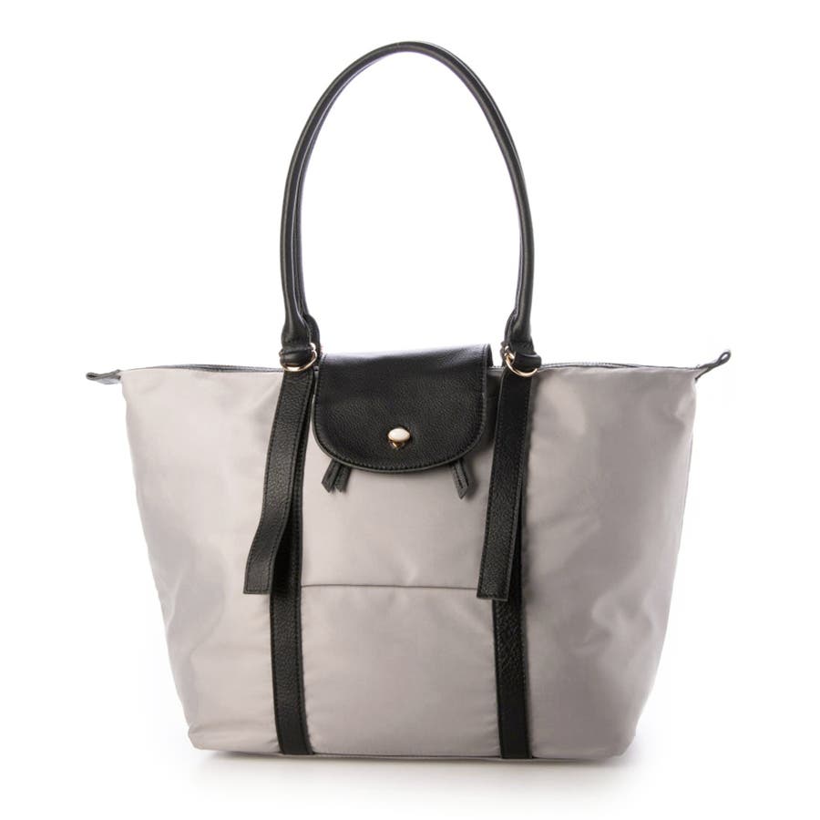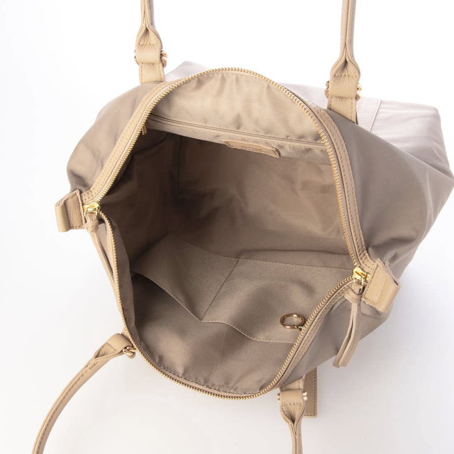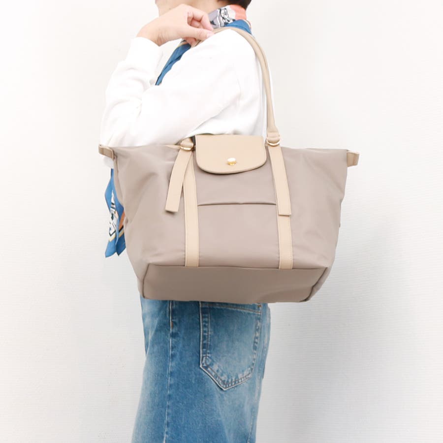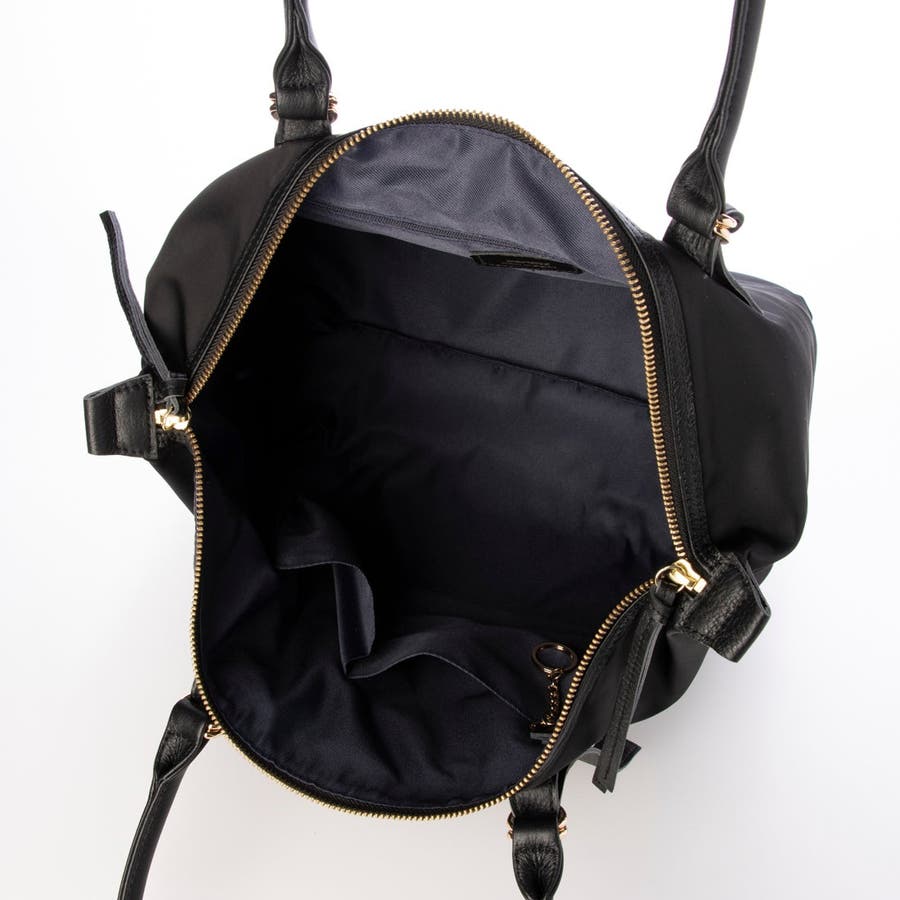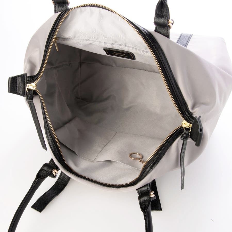 ナイロンと牛革を組み合わせた肩入れトートバッグ。