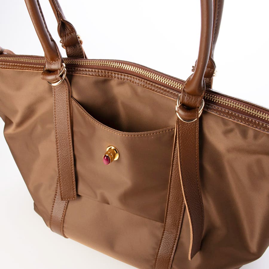 ペルケ perche / ナイロン×牛革かぶせジェムストーントートバッグ