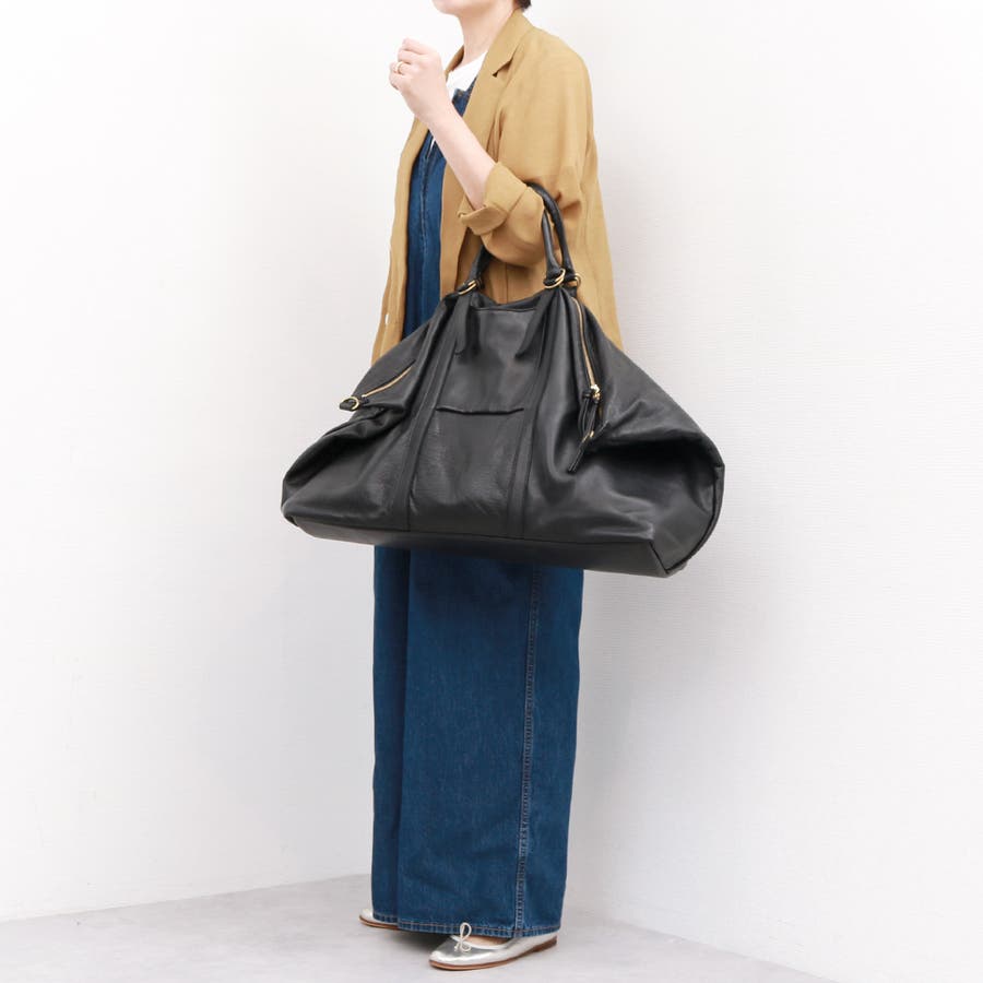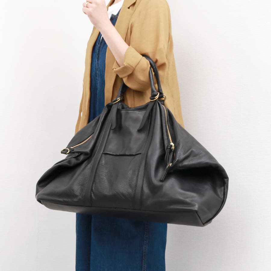吸い付くようになめらかな手触りが心地よいソフトな衣料革を使った2wayボストンバッグ。