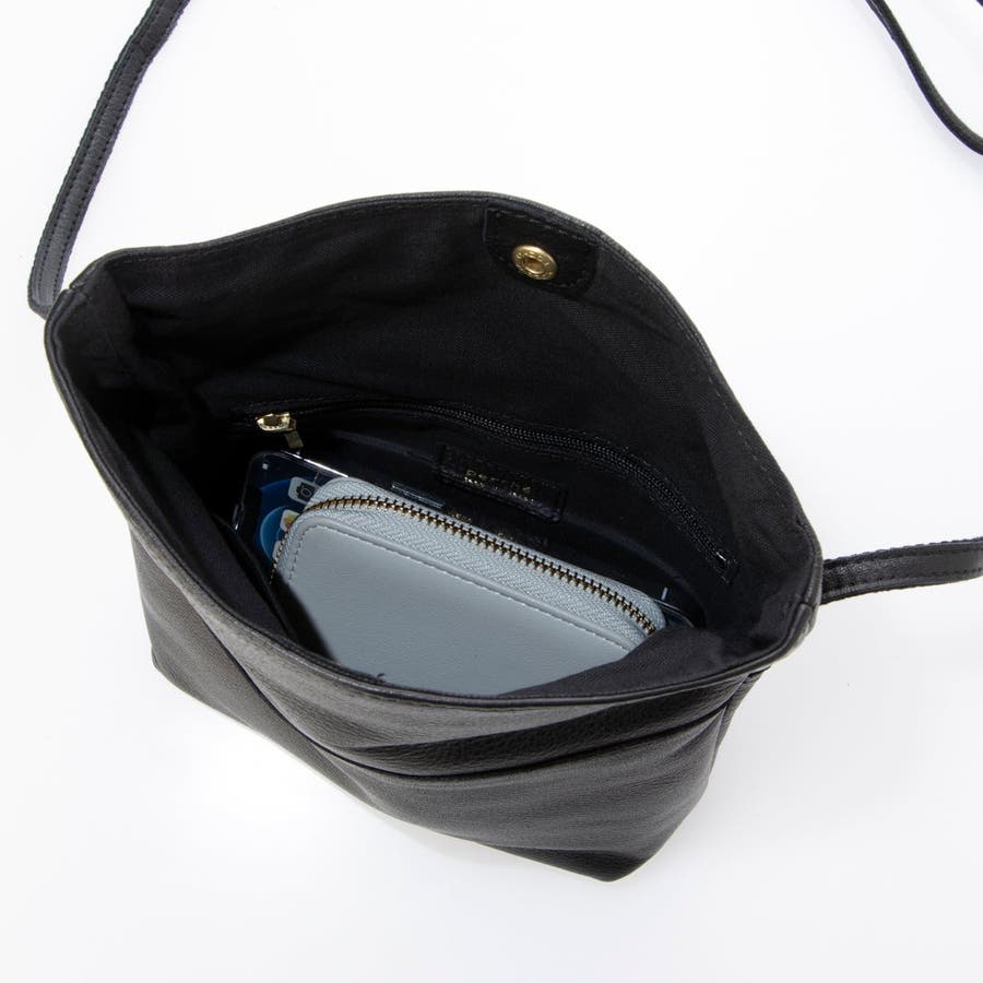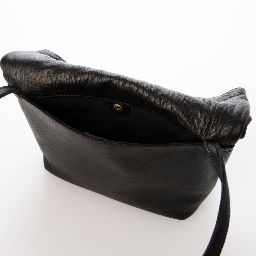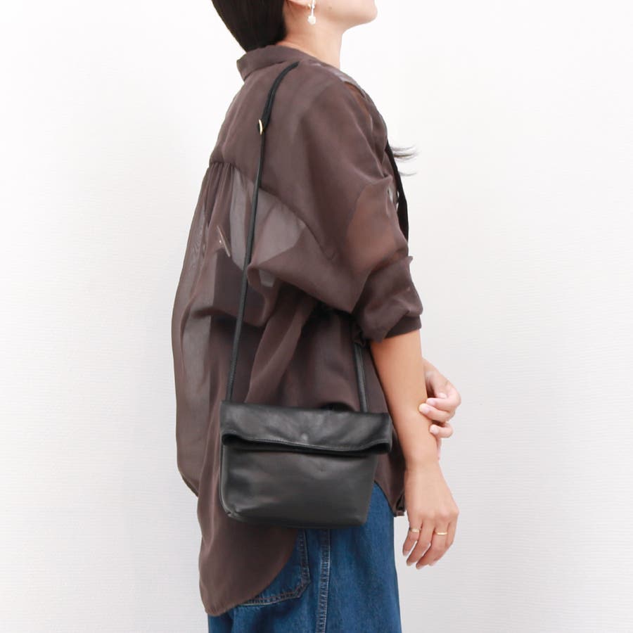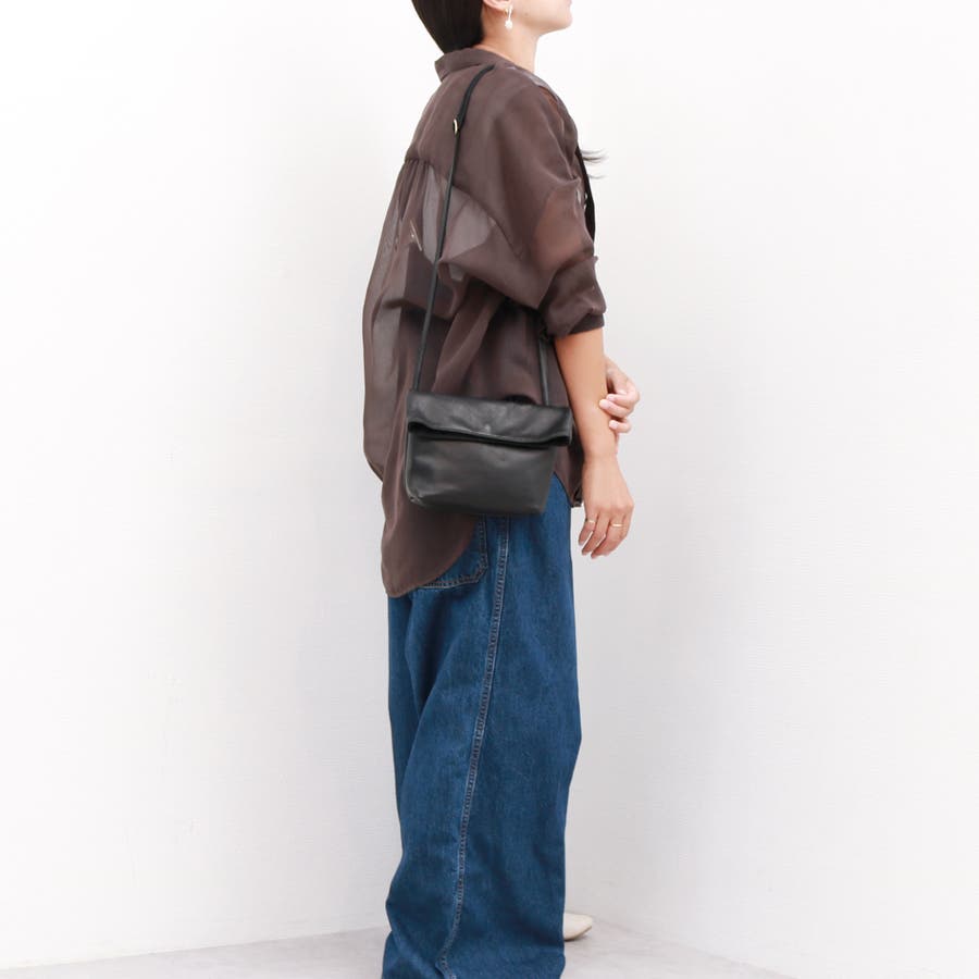 吸い付くようになめらかな手触りが心地よいソフトな衣料革を使ったミニショルダー。