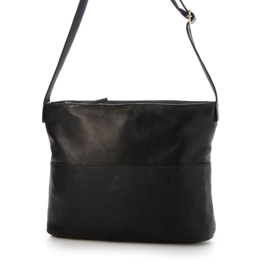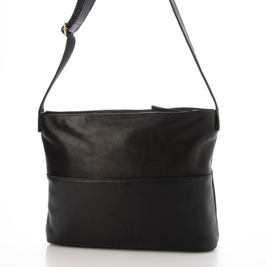 吸い付くようになめらかな手触りが心地よいソフトな衣料革を使ったショルダーバッグ。