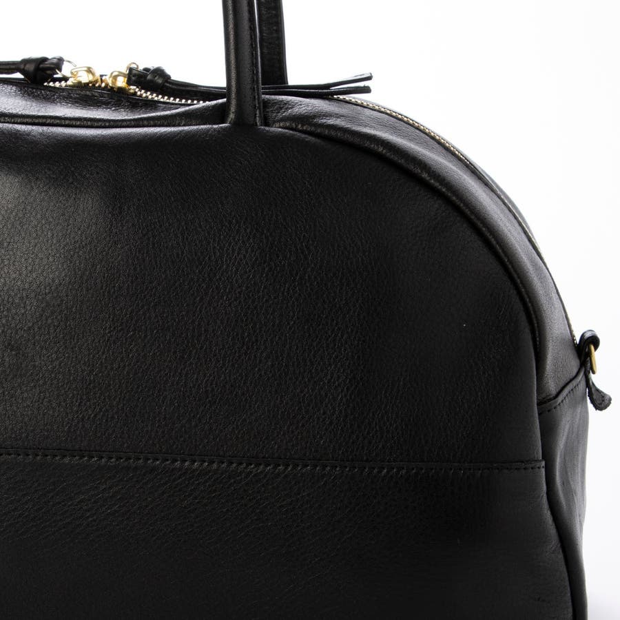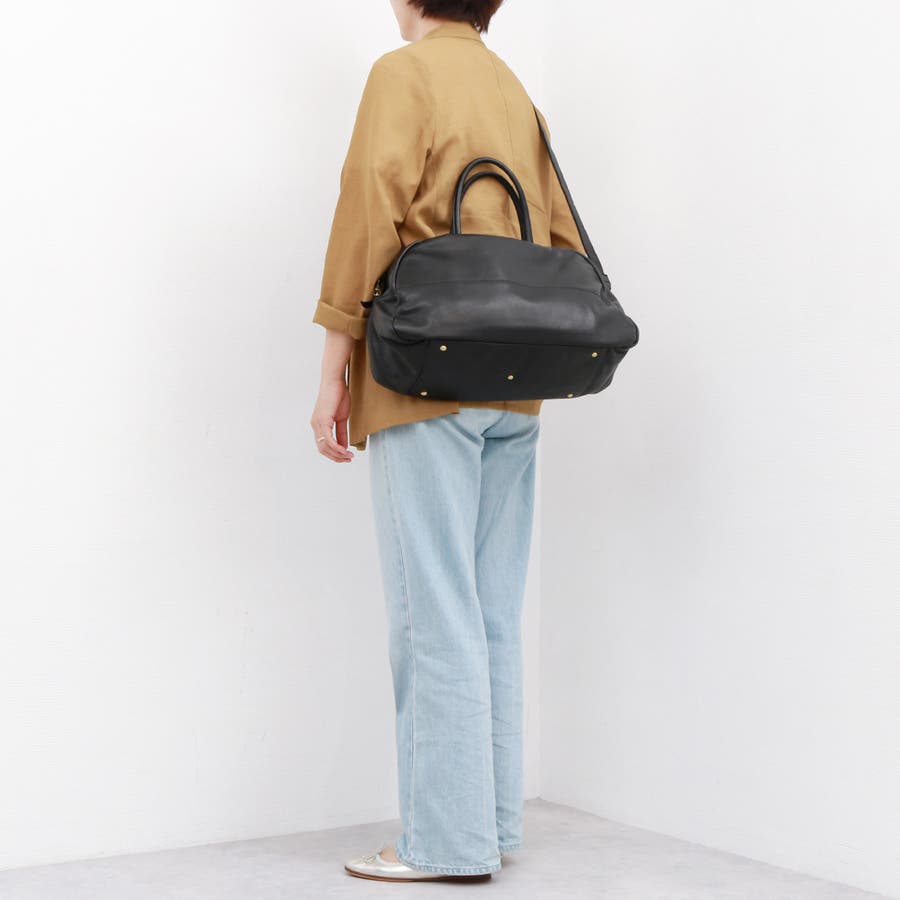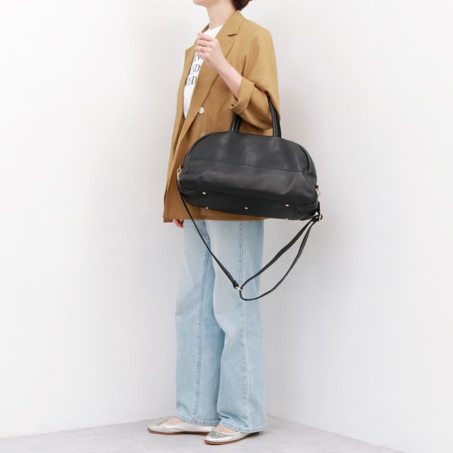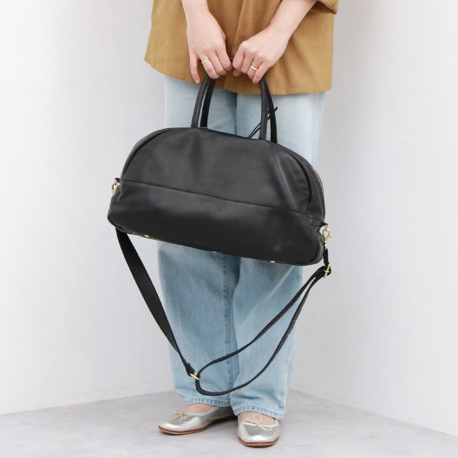 吸い付くようになめらかな手触りが心地よいソフトな衣料革を使った2wayハーフムーンボストン。
