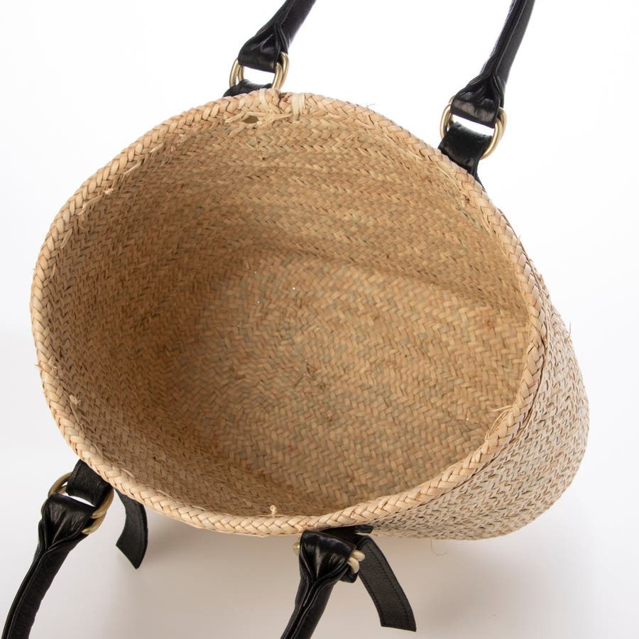 ツルツルとした椰子の葉で編まれ、軽くて丈夫、耐久製があり素朴な風合いのかごバッグです。