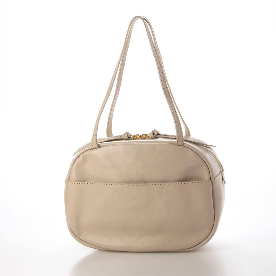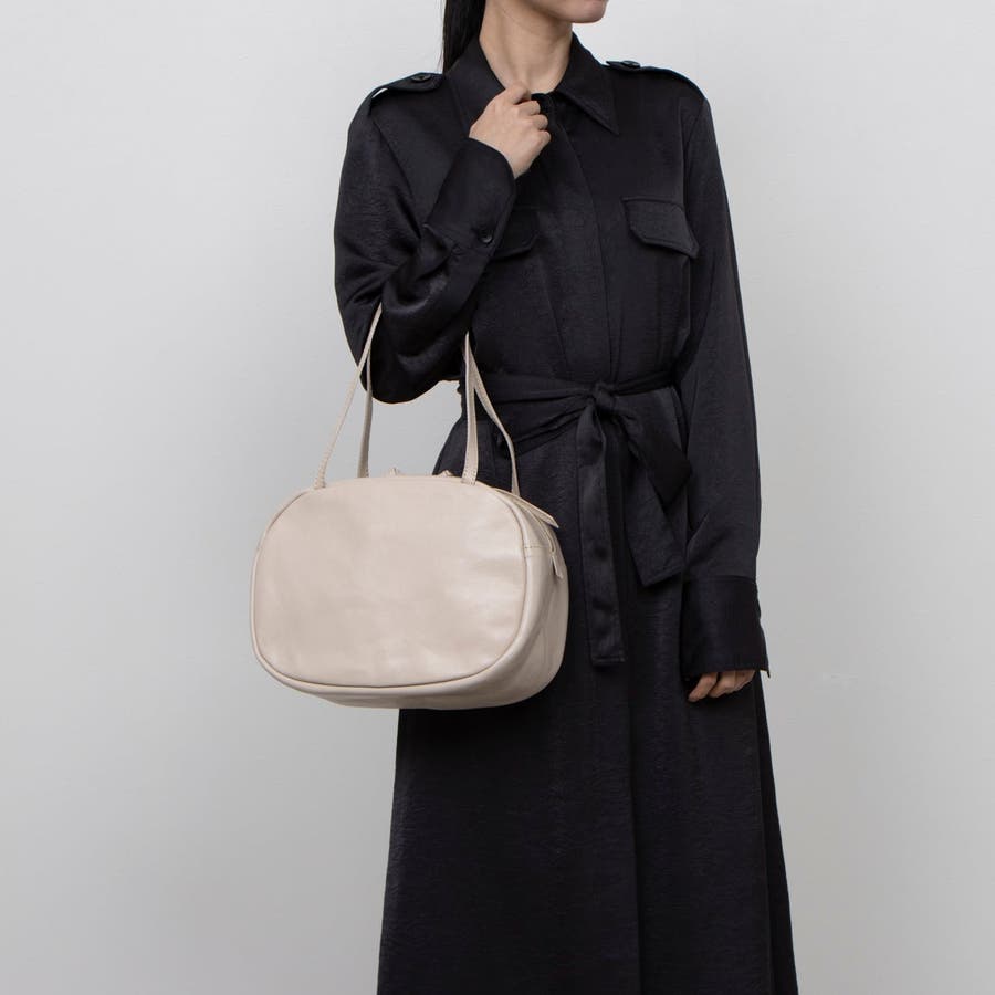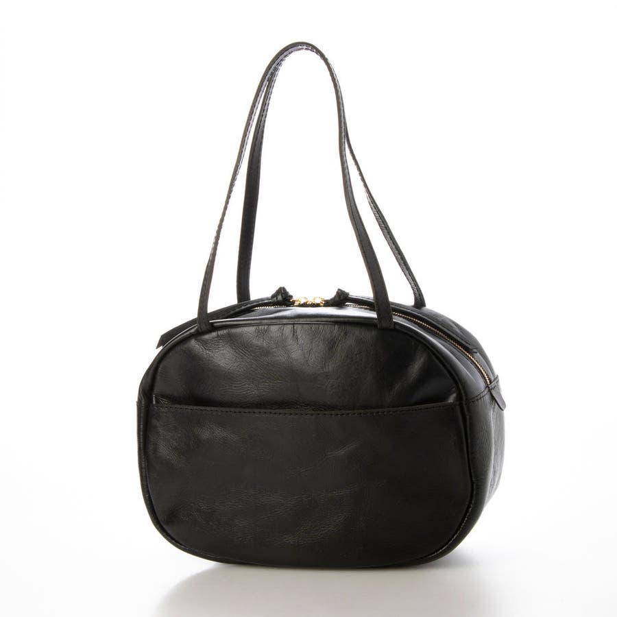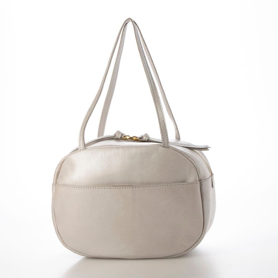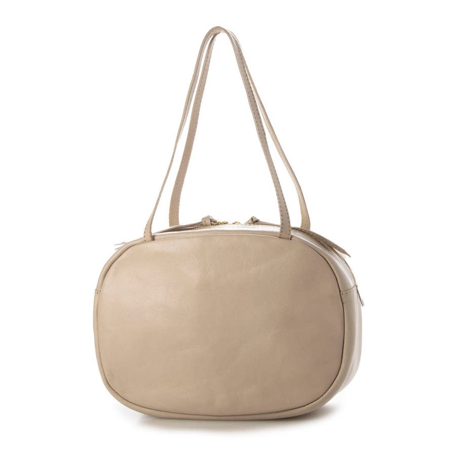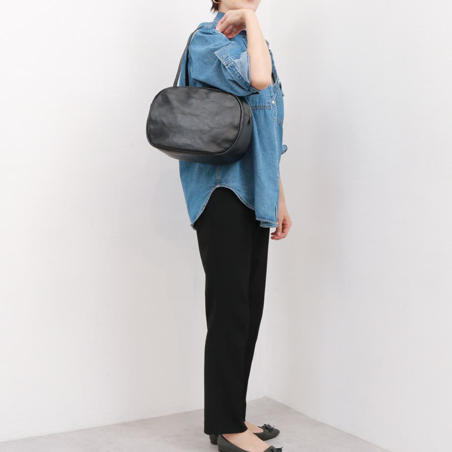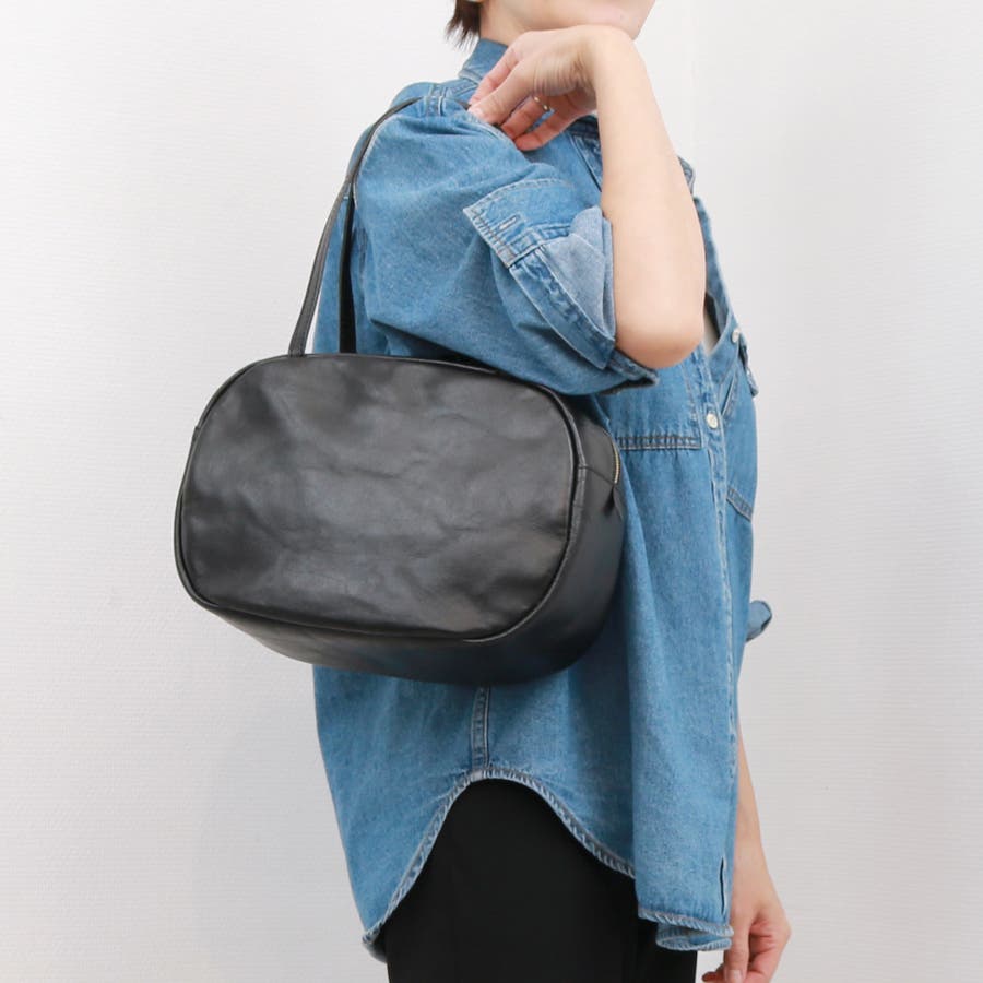 コロンとしたオーバル型がかわいいレザーのボストンバッグ。