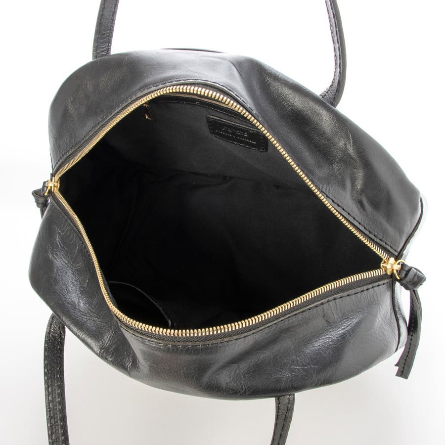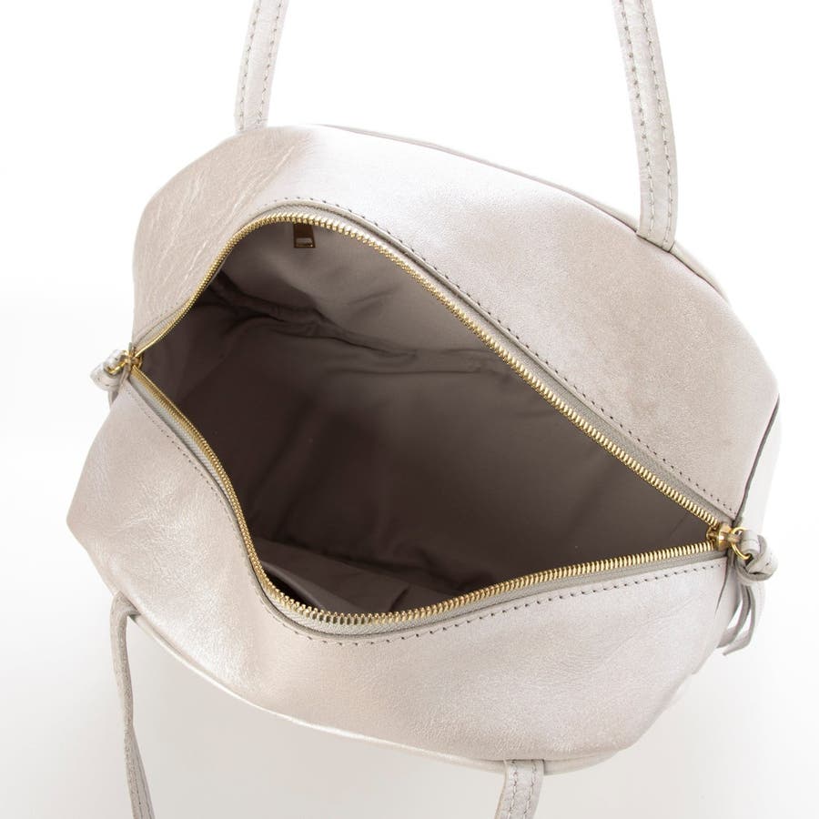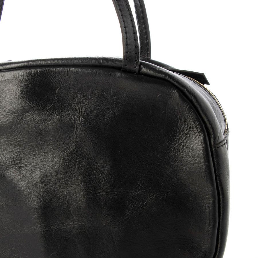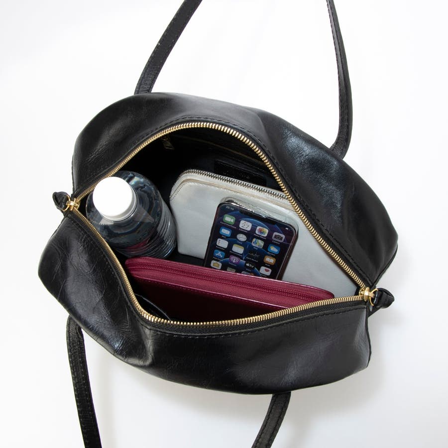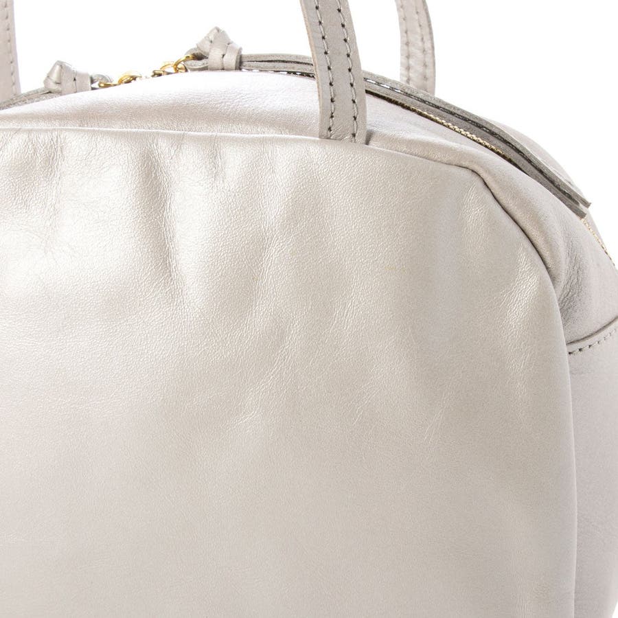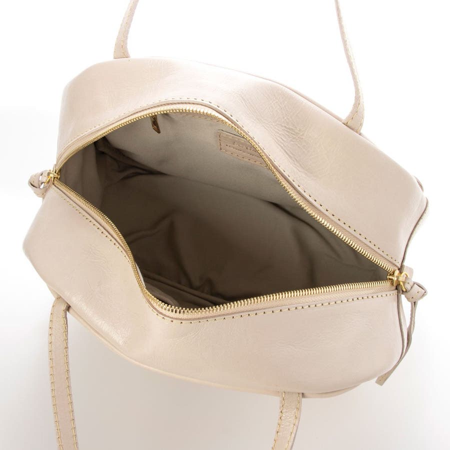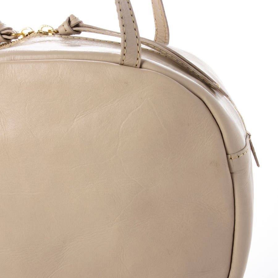コロンとしたオーバル型がかわいいレザーのボストンバッグ。