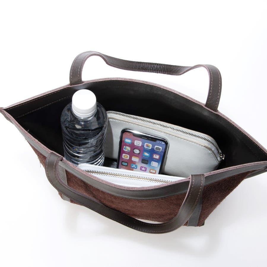 長財布、500mlボトル、ポーチなどお出かけに必要な物がしっかり収納できるトートバッグです。
