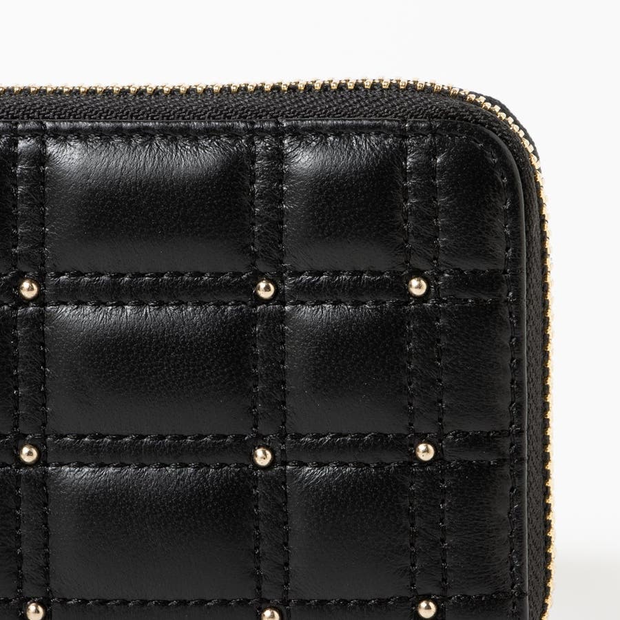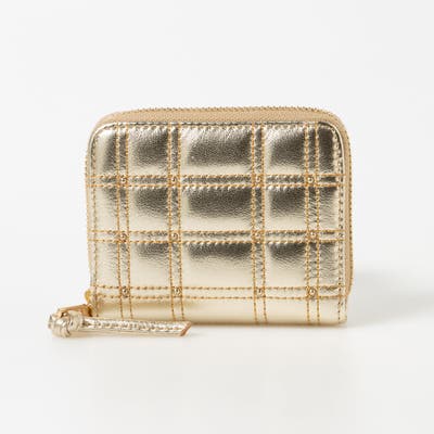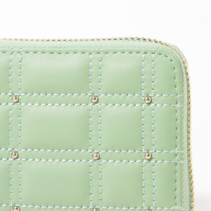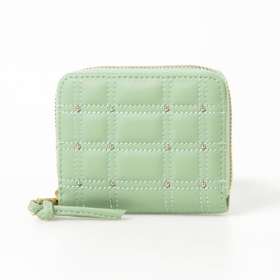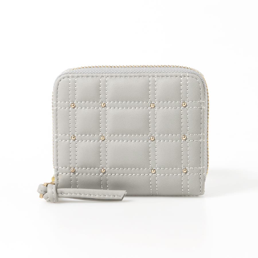 ボックス型のキルティングと小さなスタッズがキレイめな雰囲気のコンパクト財布