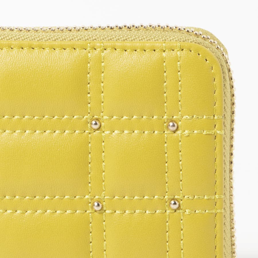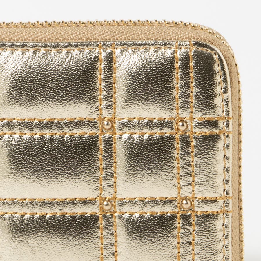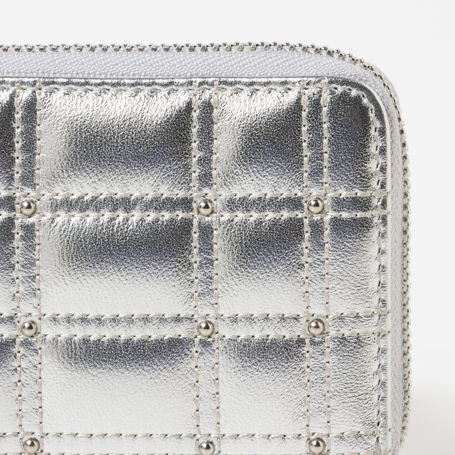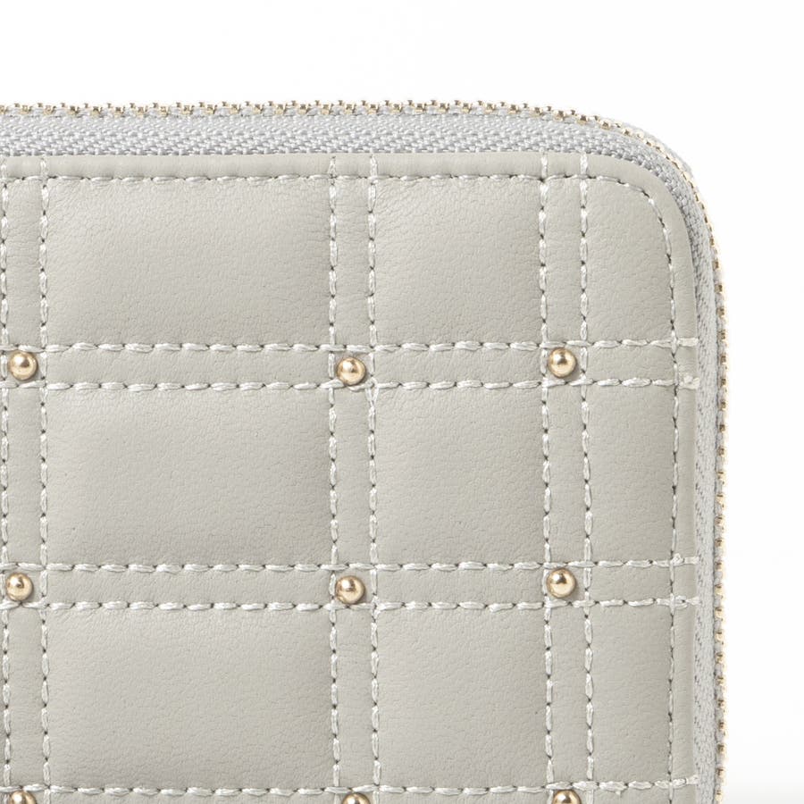 ボックス型のキルティングと小さなスタッズがキレイめな雰囲気のコンパクト財布