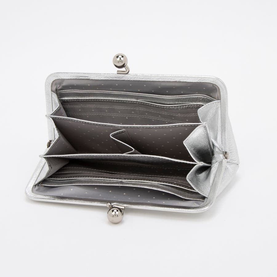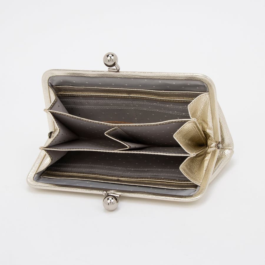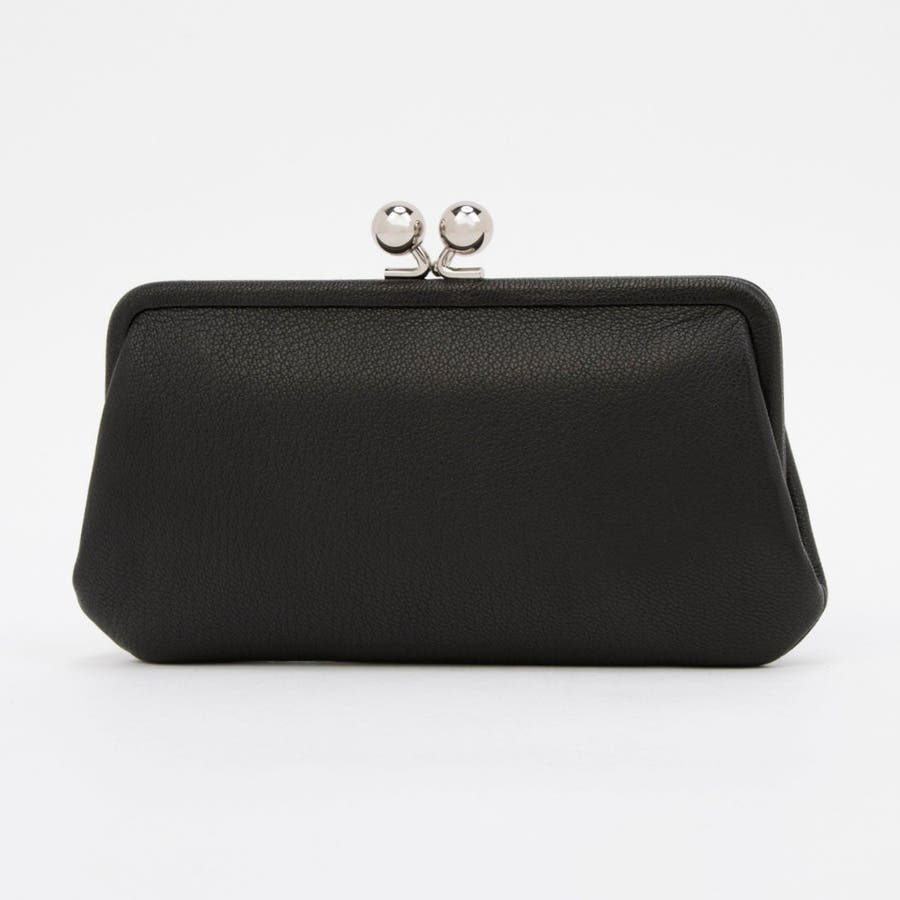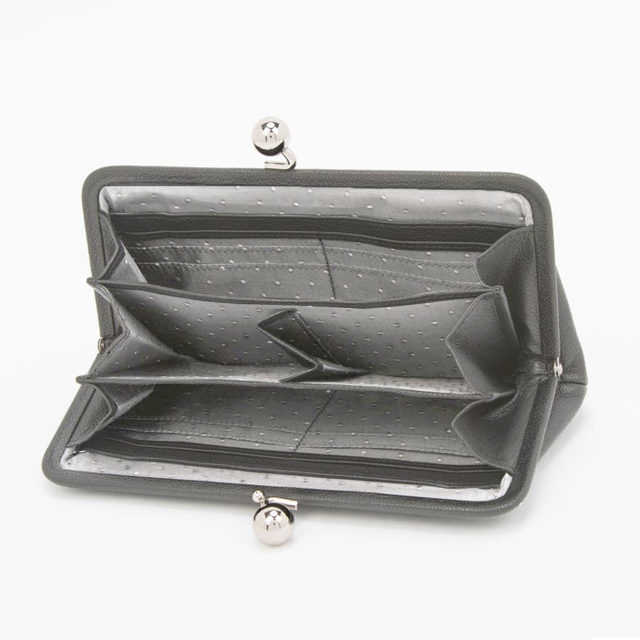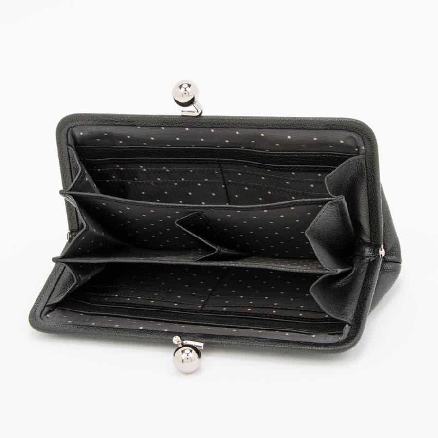 がま口を開けると中を一目で見渡せる使い勝手の良いロングウォレットです。