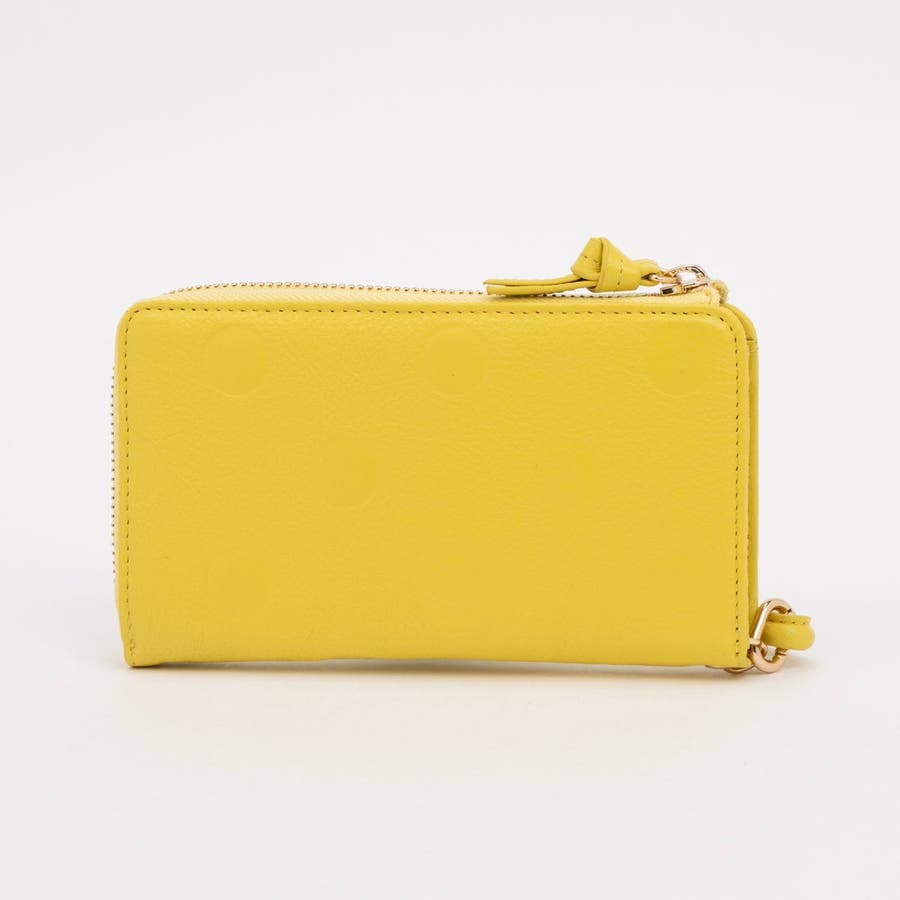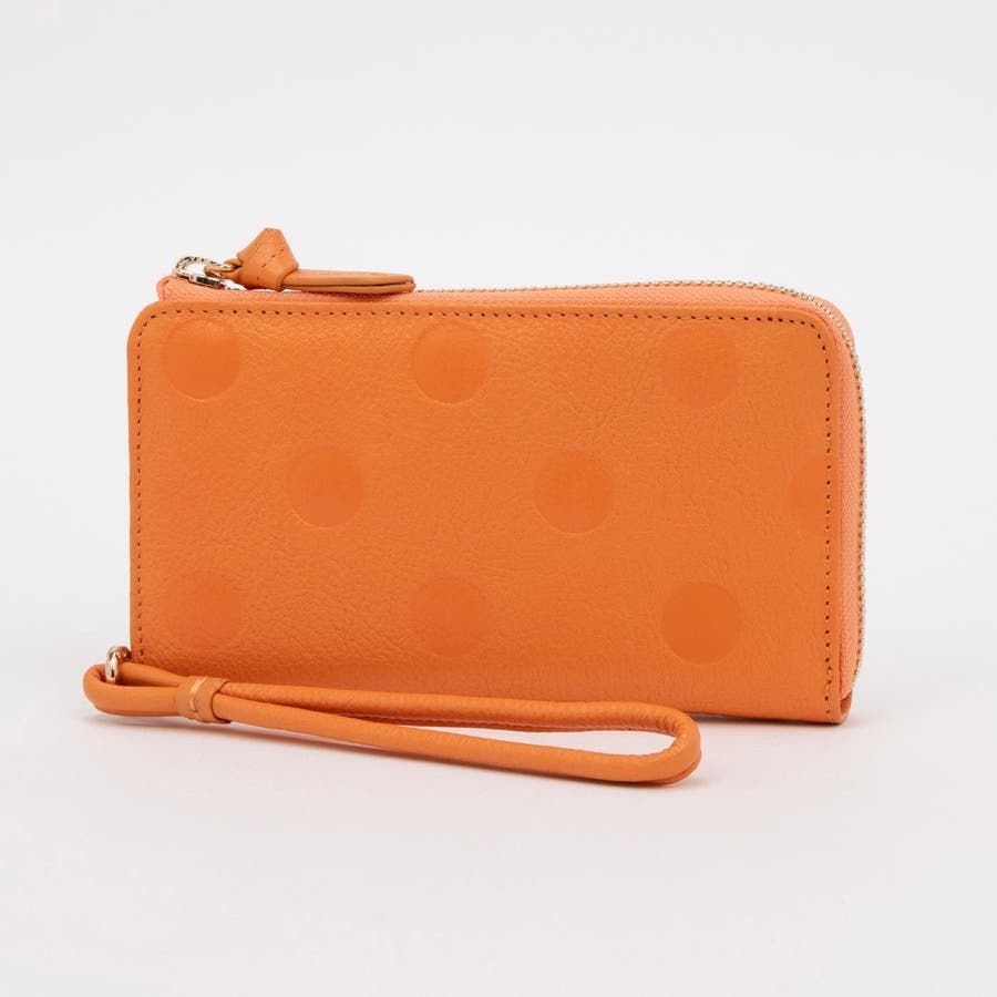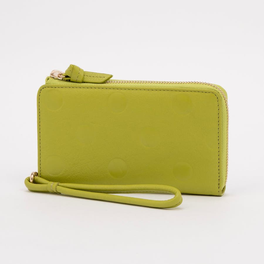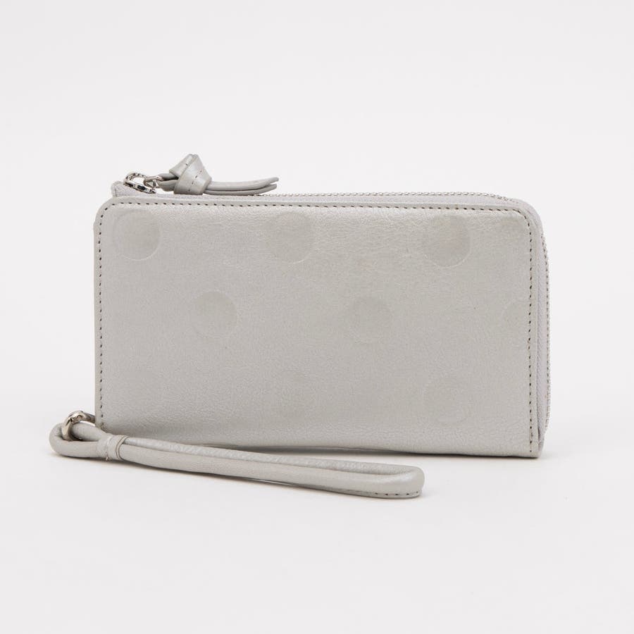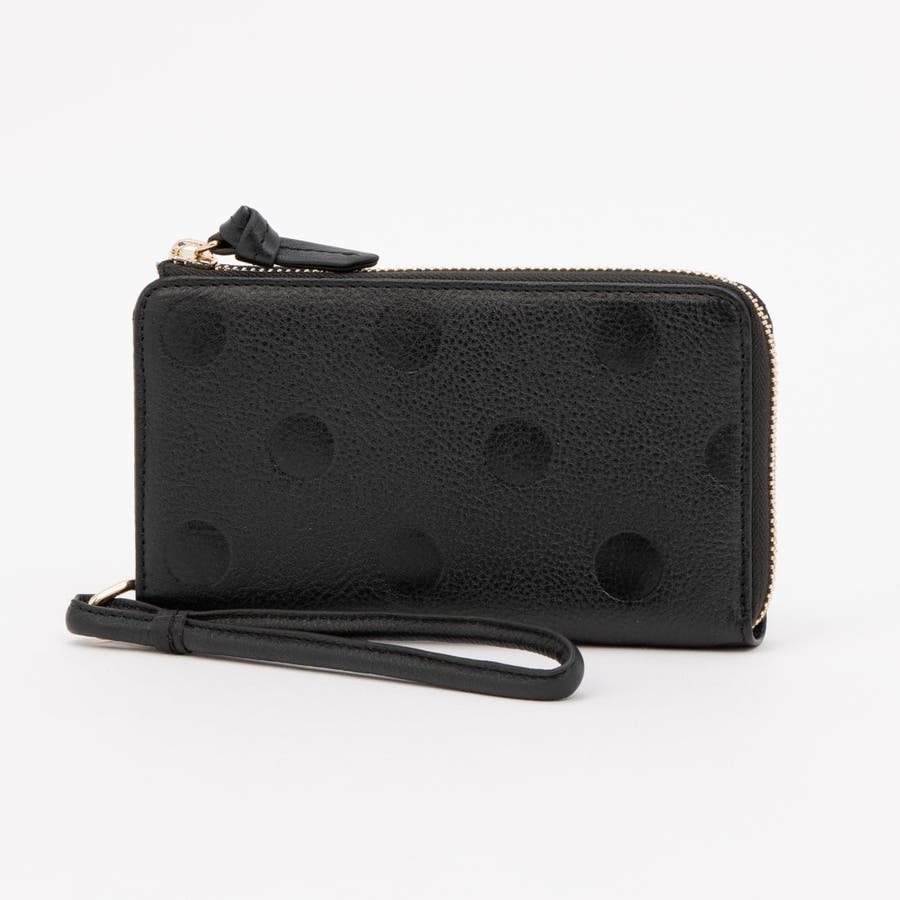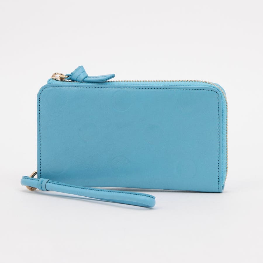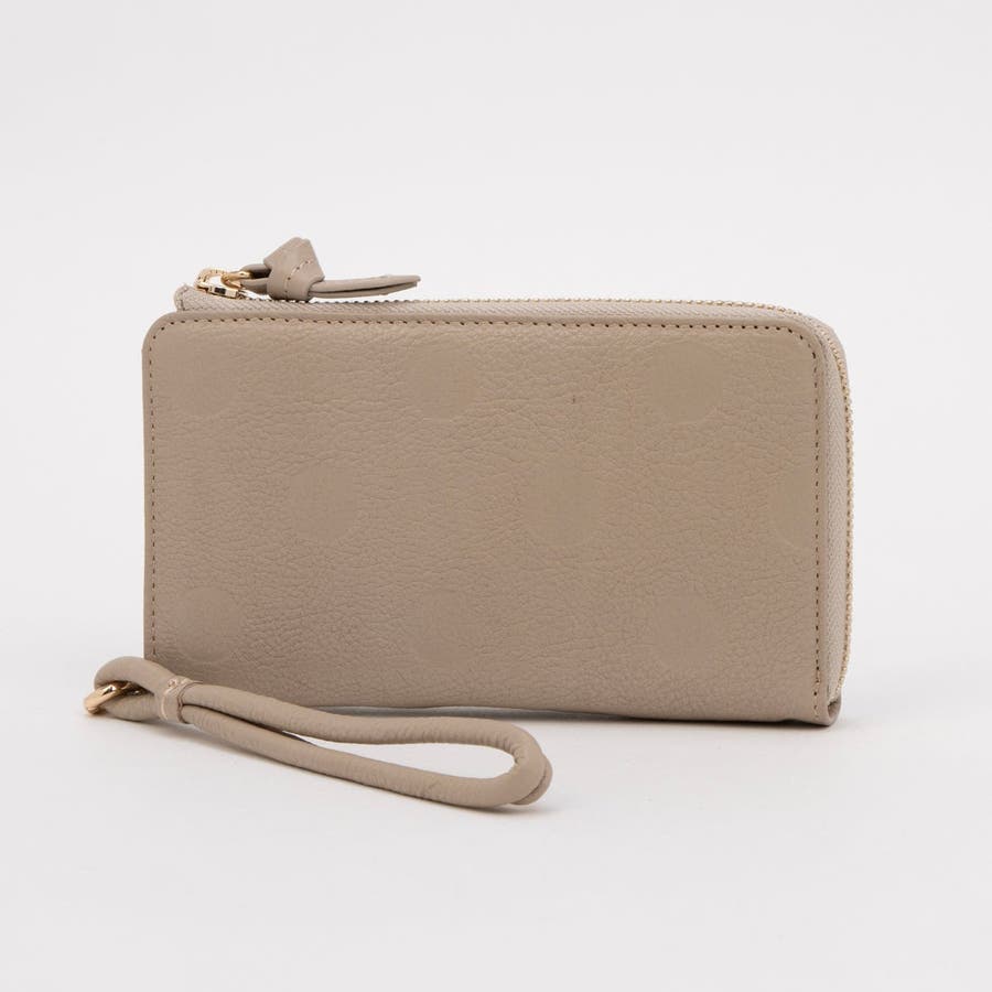 ドットの型押しがかわいいストラップ付L字ロングウォレット。