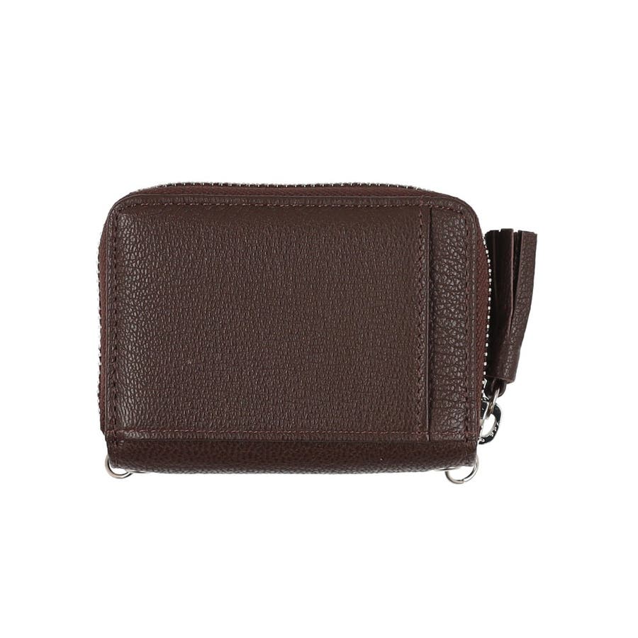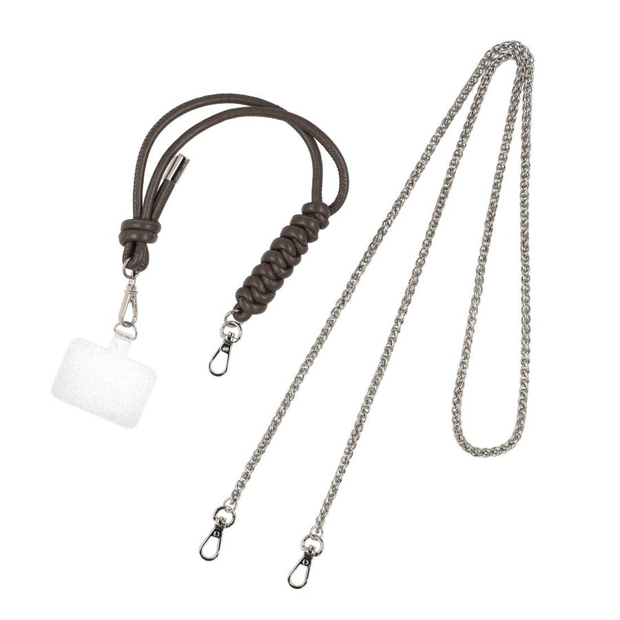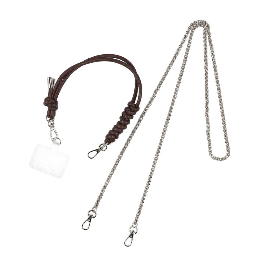 ハンドストラップやチェーンショルダー、スマホ取り付け用シートなどが付いていて組み合わせでマルチに使えるお財布です。