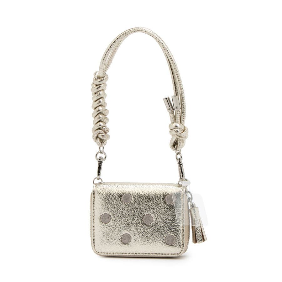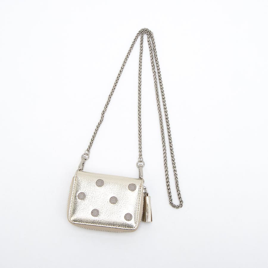 ドット刺繍のジャバラチャームウォレットショルダー。