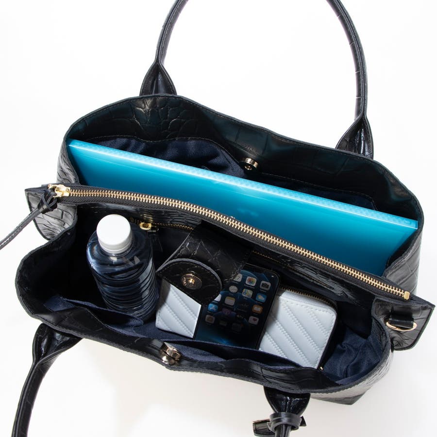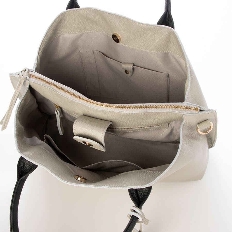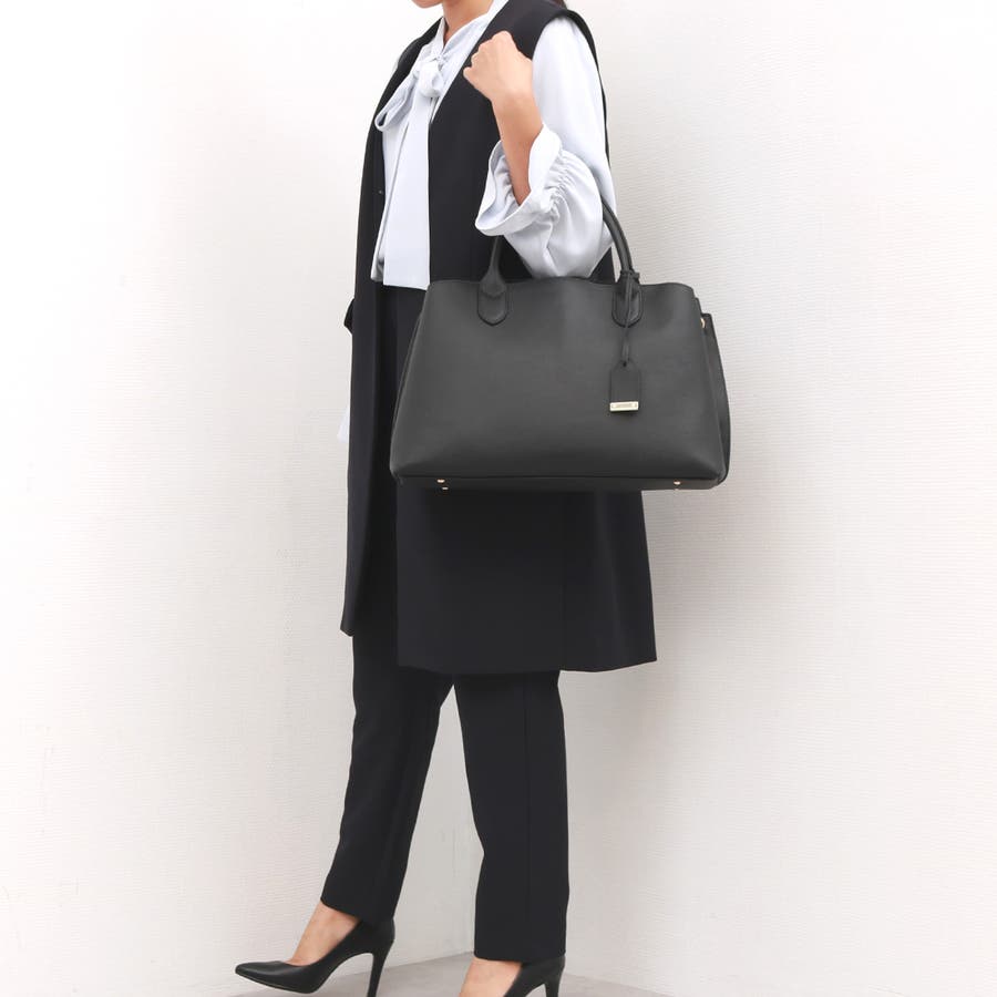 A4クリアファイルや13インチPCが収納できる牛革の2wayトートバッグ。
