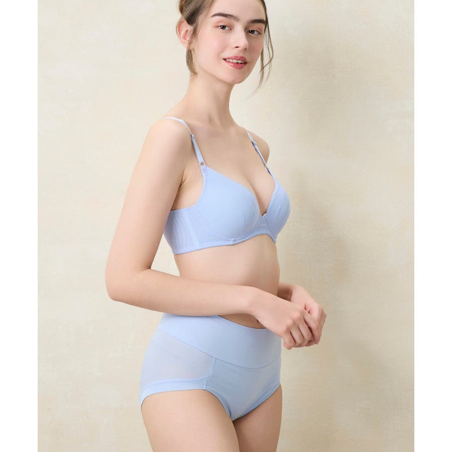 「ワイドシート構造」ワイドシートで、カップが左右へ広がるのを防いでバストのかたちをキープ。